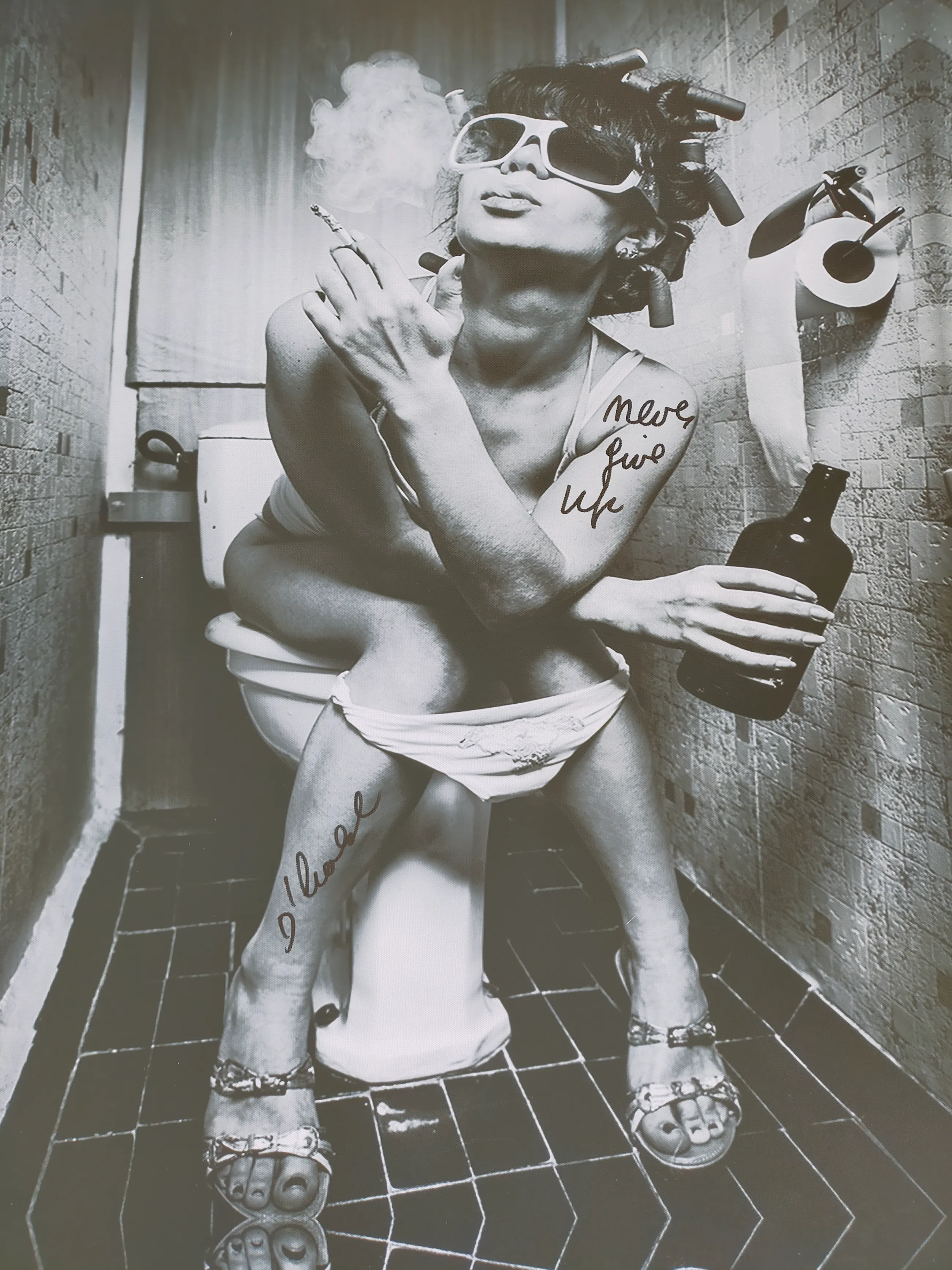 Hannes D'Haese - Never give up Mixed media Print op doek Handgeschreven tekst Handgesigneerd Met echtheidscertificaat