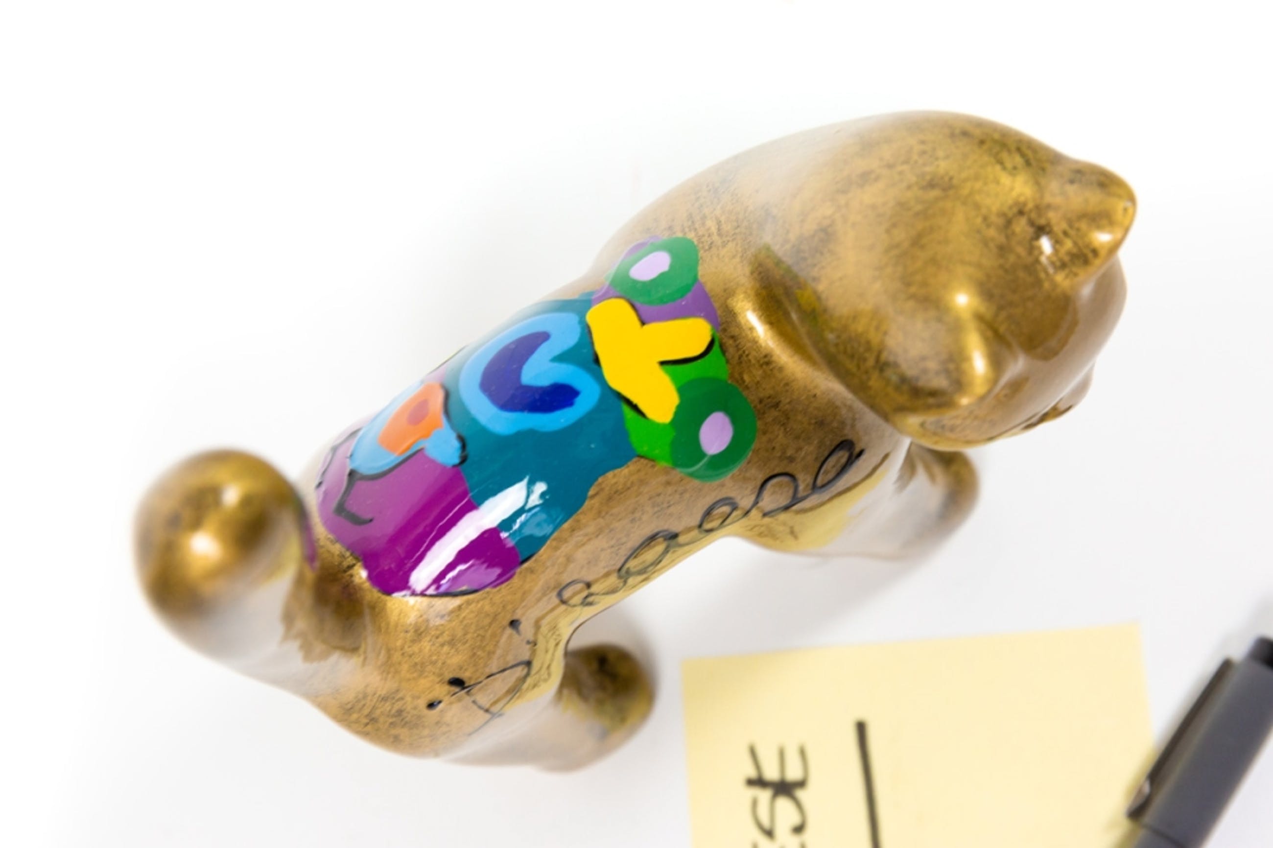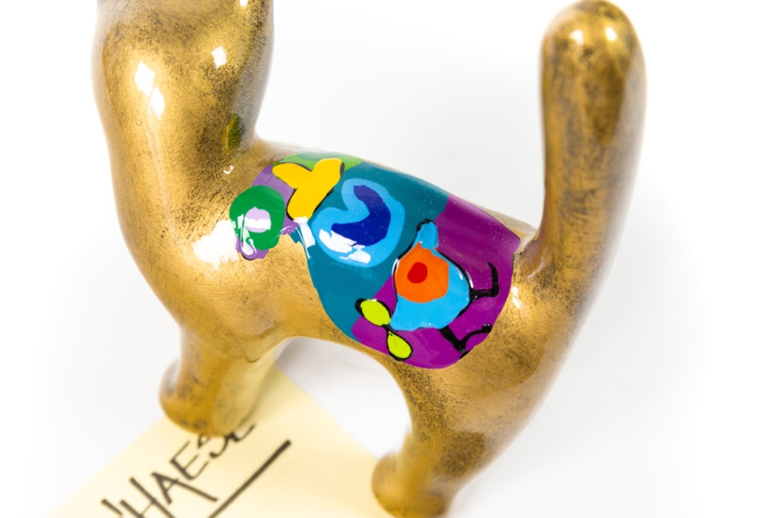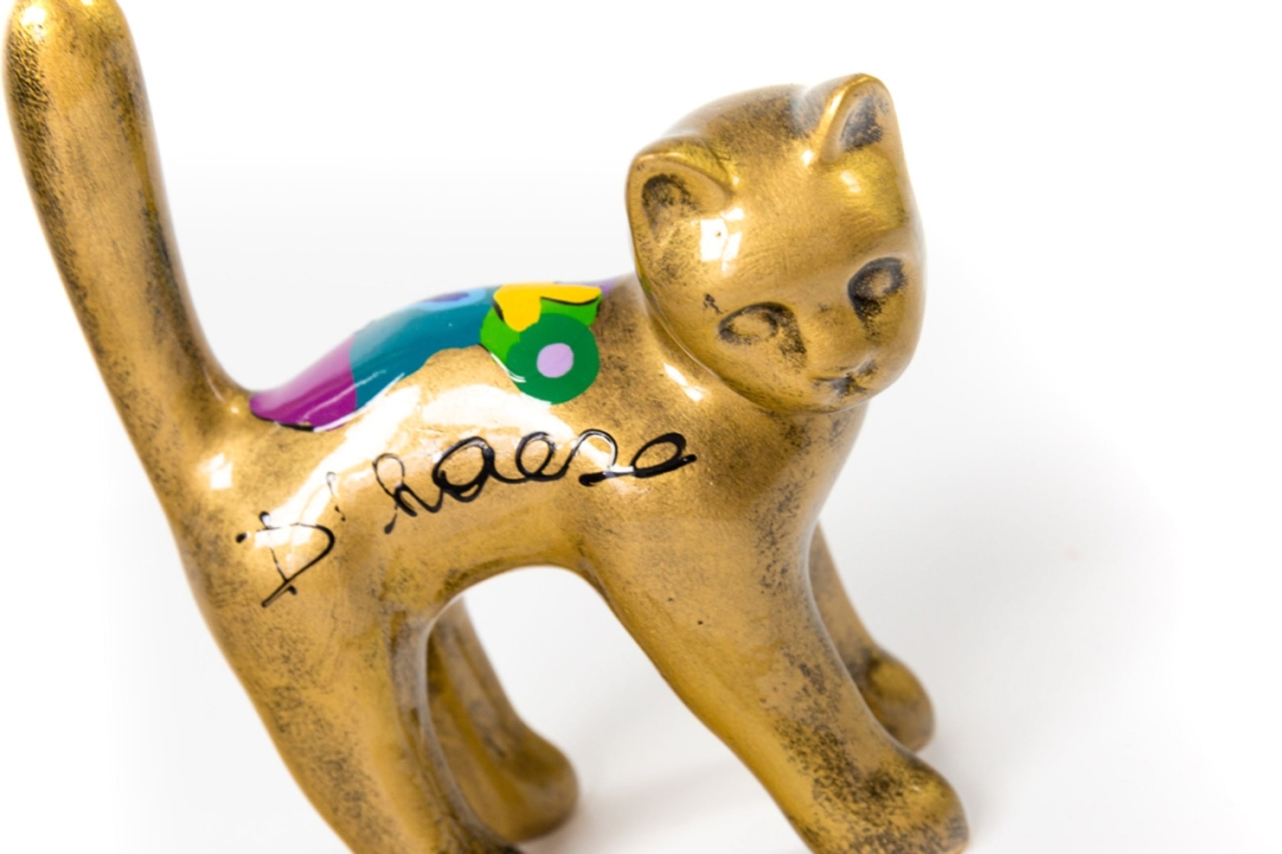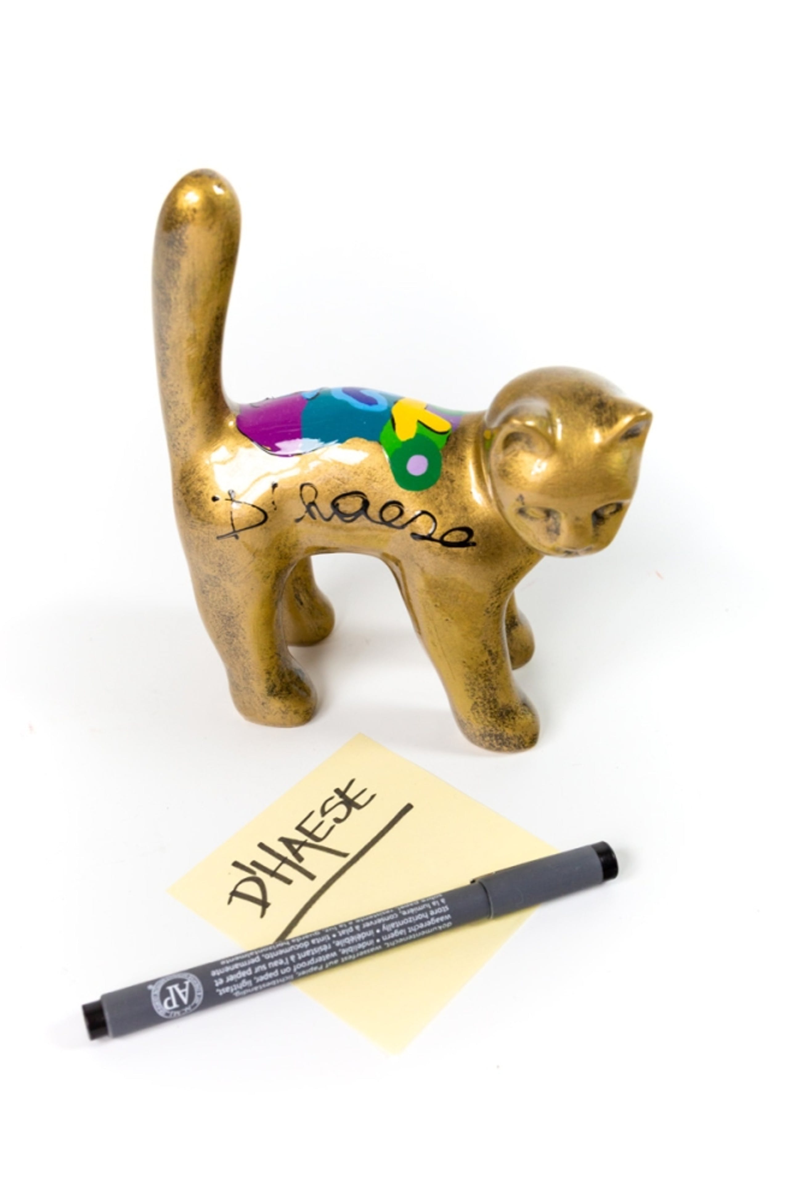 Hannes d'haese . standing cat , geschatte waarde door een Galerijhouder ( D'haese kenner ) op 150 -250 euro sculptuur in kunsthars , ook het attest van echtheid word bij het werk aangeboden ,en werd uitgegeven door hannesdhaeseshop.com en staat levenslang garant voor de echtheid en authenticiteit van het werk .