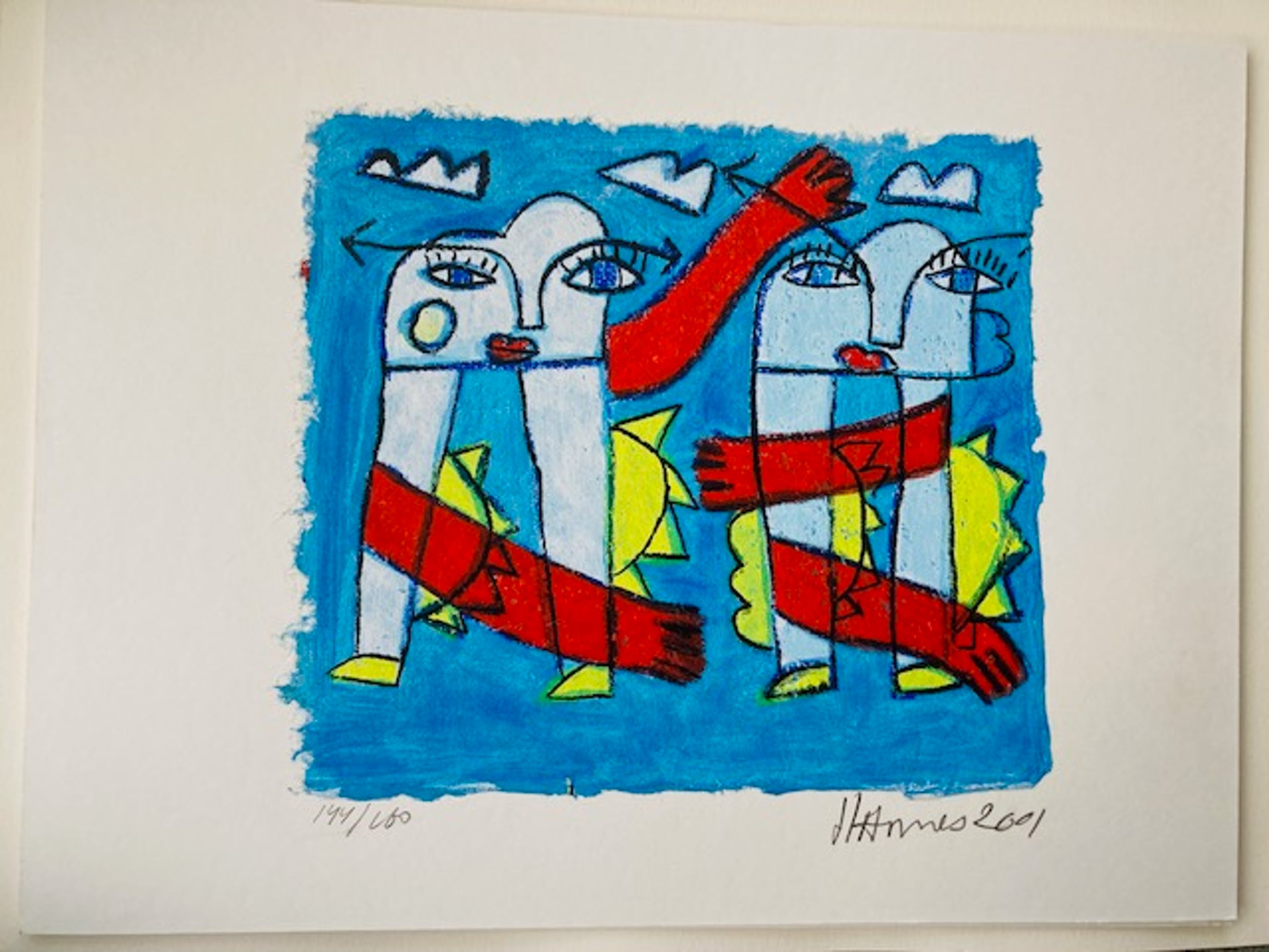 Vrolijke zeefdruk in zeer goede staat van Hannes Kuiper. Gesigneerd en genummerd. Het werk is gedrukt op dun papier en daarna voor de stevigheid verlijmd op zuurvrij karton het werk verkeert in perfecte conditie. U kunt het werk vooraf komen bekijken in de schatkamer van galerie Rotor in Gorinchem of na aankoop ophalen. Het werk kan ook verzonden worden via aangetekende post. Of tijdens de pandemie gratis worden opgeslagen tot nadere orde. Ook kunnen ondertussen uw inlijsting verzorgen.