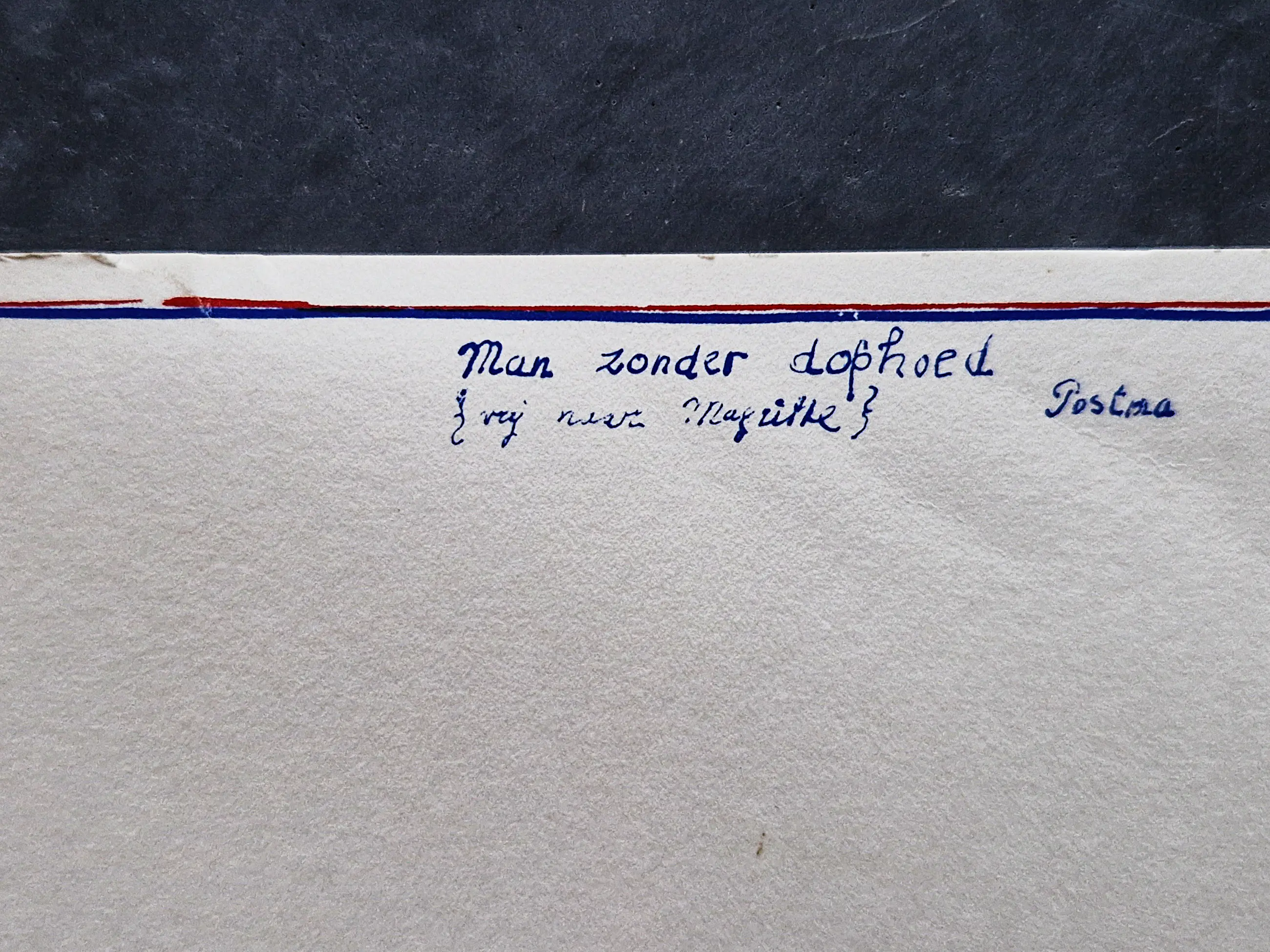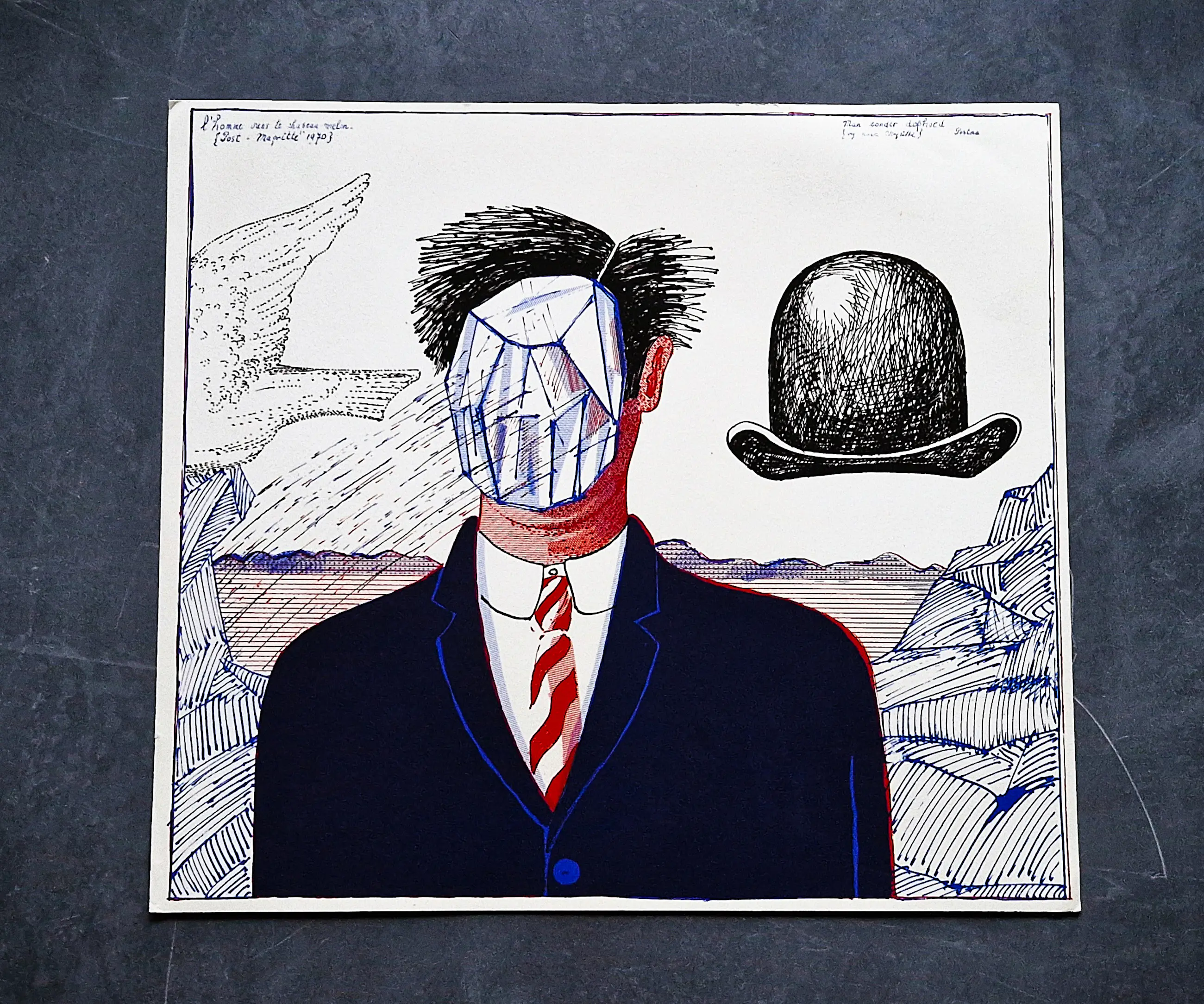- Getiteld: "man met dophoed" (vrij naar Margritte)
