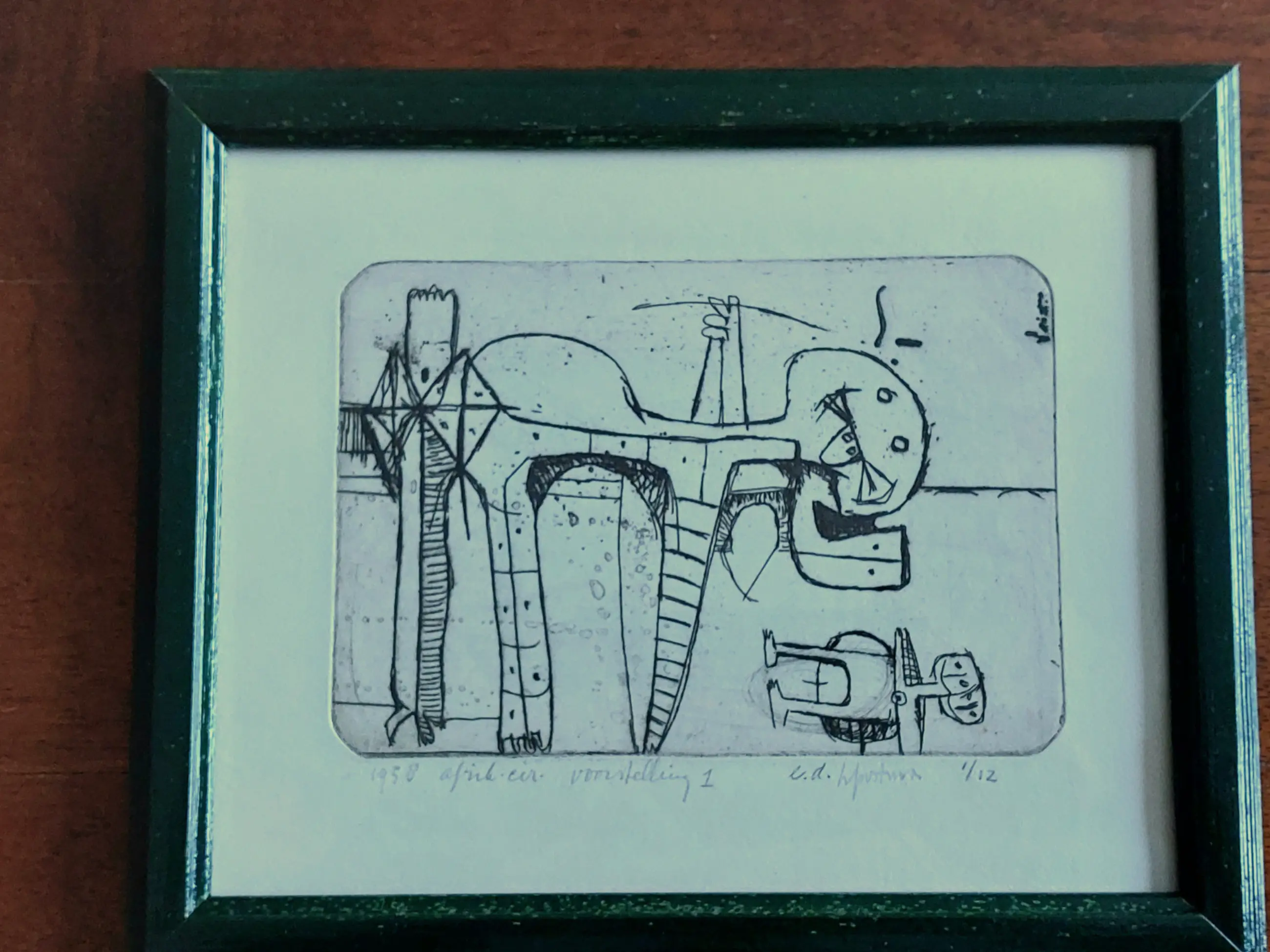 Ets maat 24 x 19 cm. Ingelijst met glas.