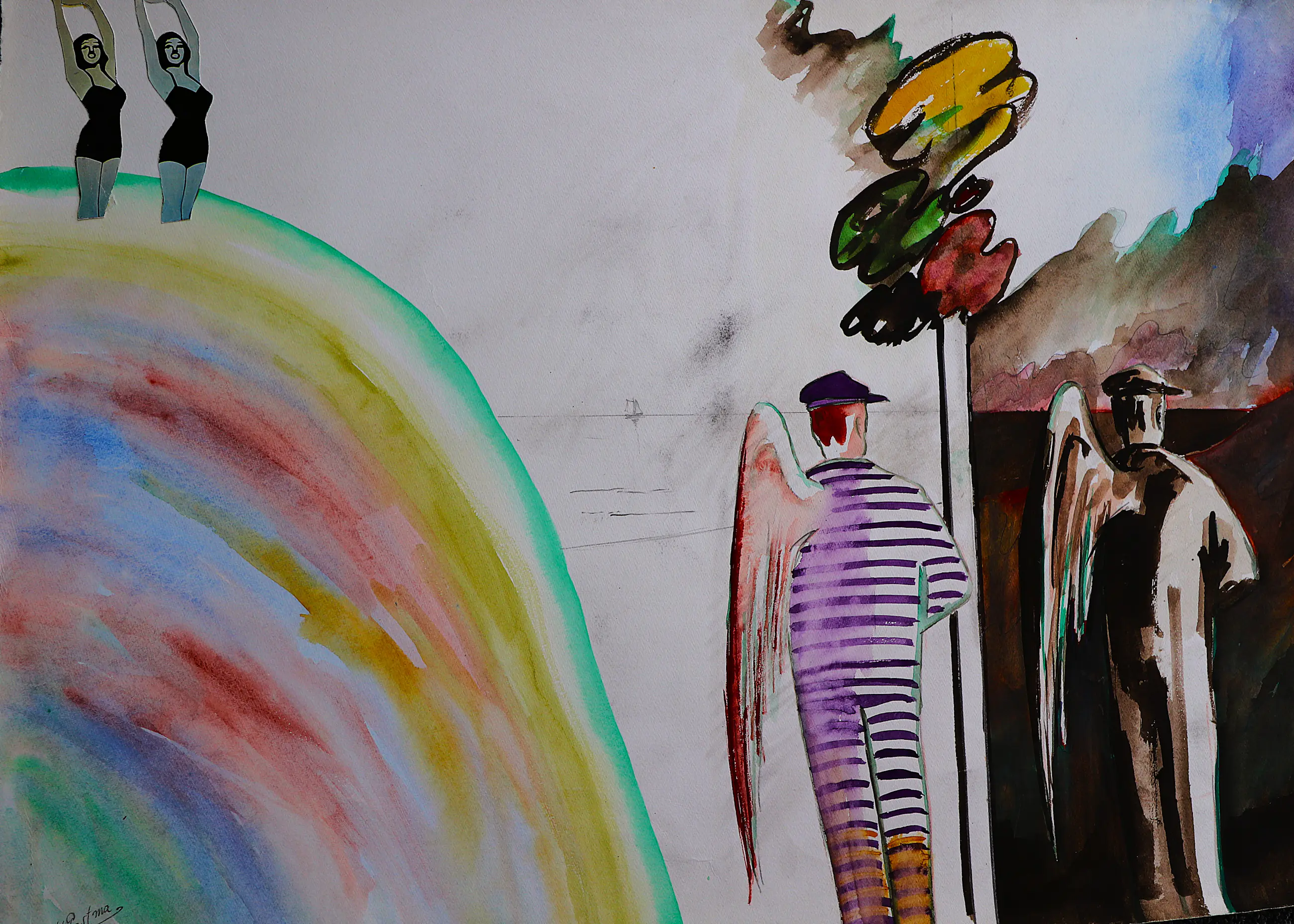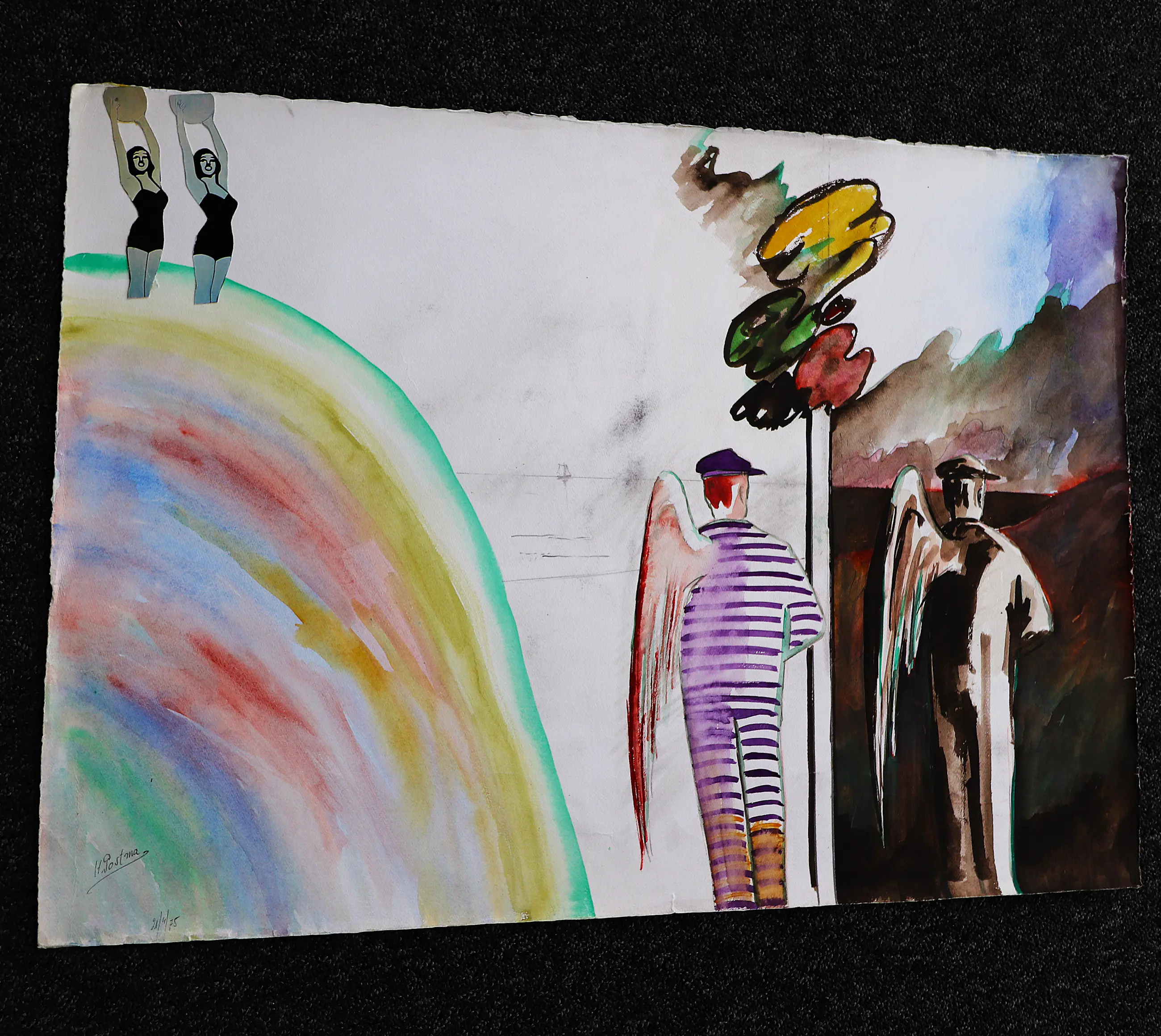 - Grotegemengde techniek op papier van Hannes Postma uit 1975. Afmetingen blad H50 x B65. Het werk is rechtsonder gesigneerd en gedateerd door de kunstenaar. De authenticiteit van het aangeboden werk wordt 100% gegarandeerd. Een certificaat van echtheid kan, op aanvraag worden meegestuurd.