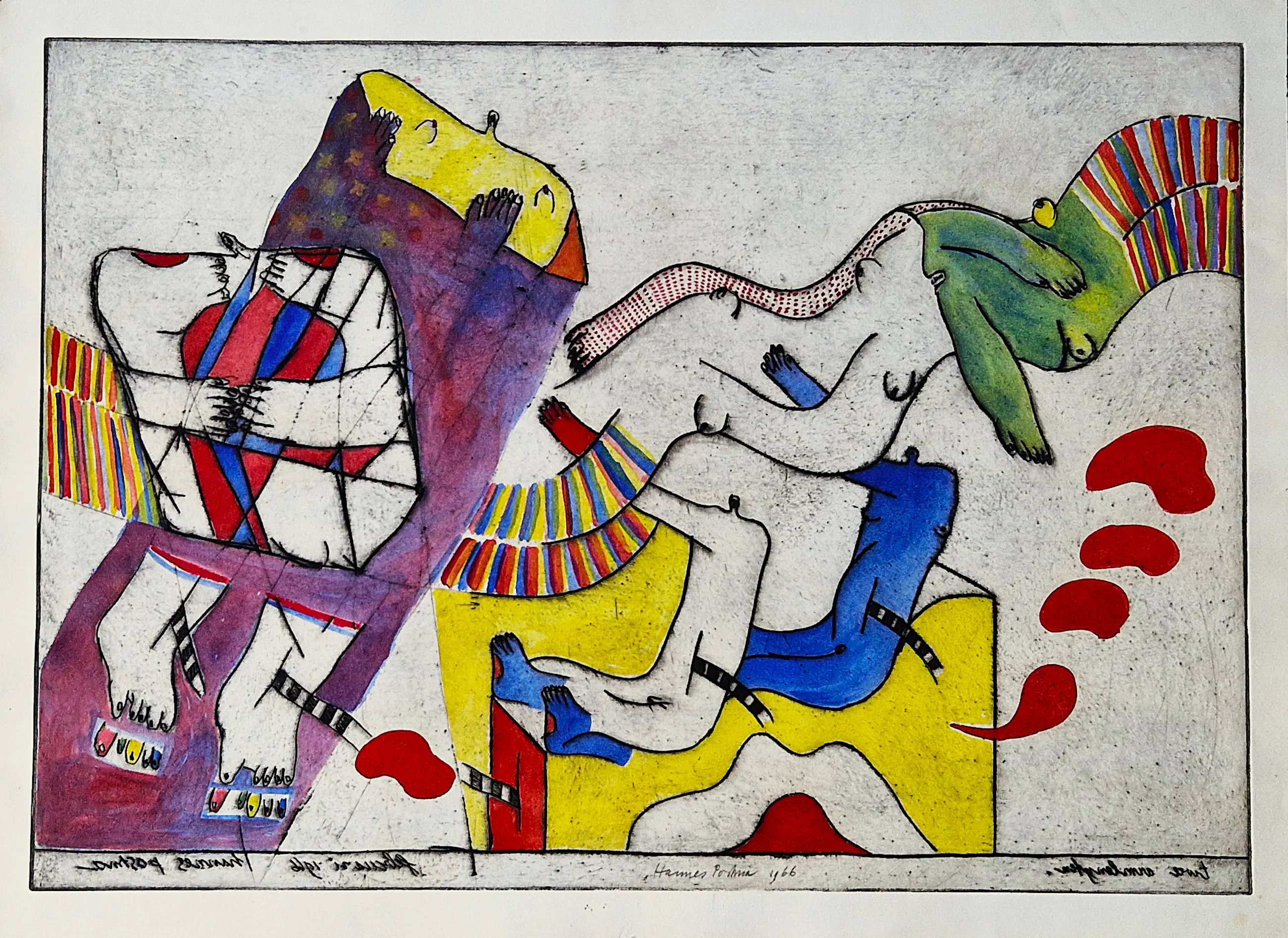 Hannes Postma, geboren in 1933 te Haarlem, studeerde aan de Rijksakademie van beeldende kunsten in Amsterdam. Zijn oeuvre bestaat uit schilderijen van olieverf op linnen, sculpturen van ijzer en gips, zeefdrukken en etsen. In de jaren '60 verwierf de kunstenaar veel bekendheid met zijn series kleuretsen.