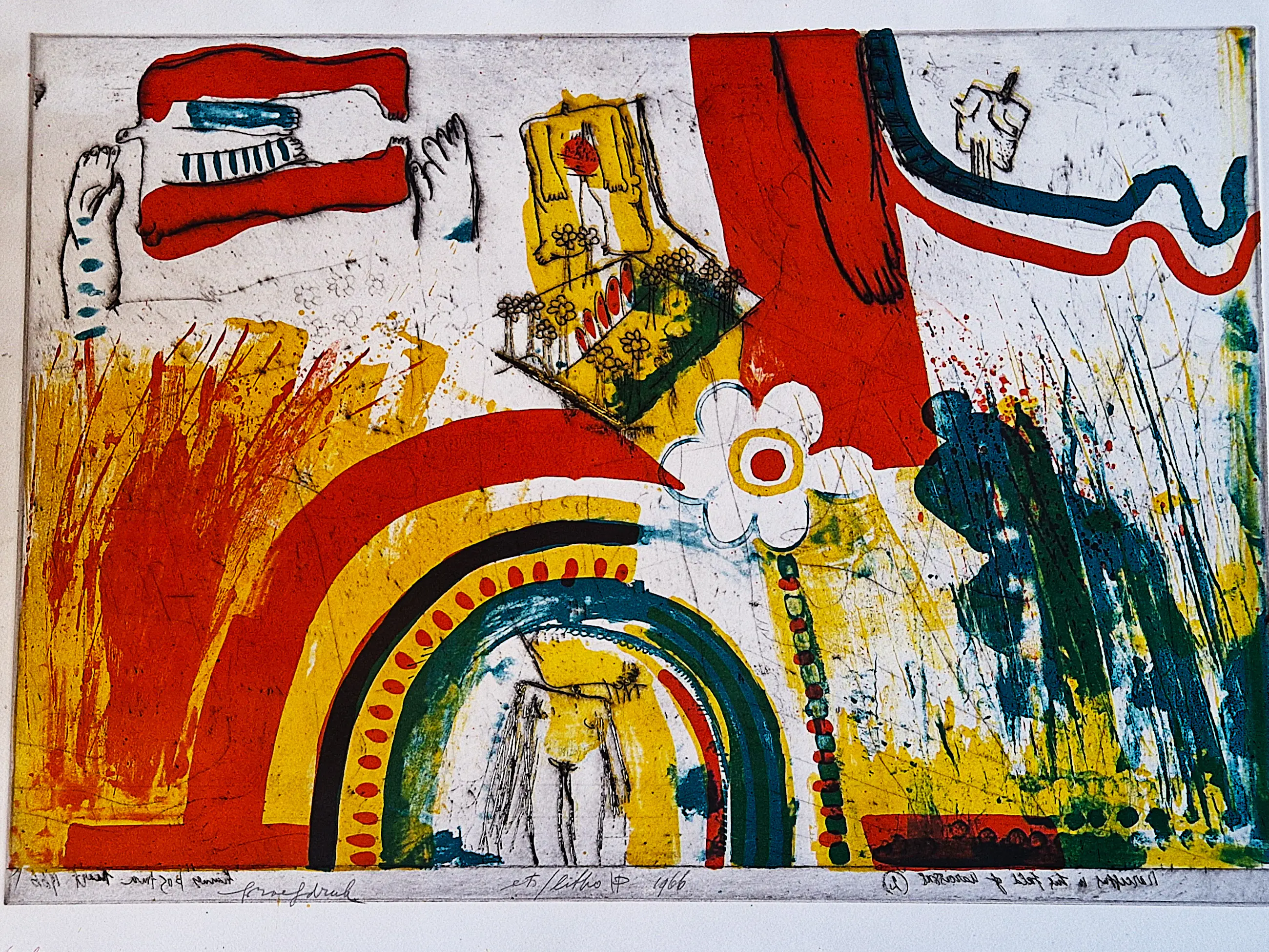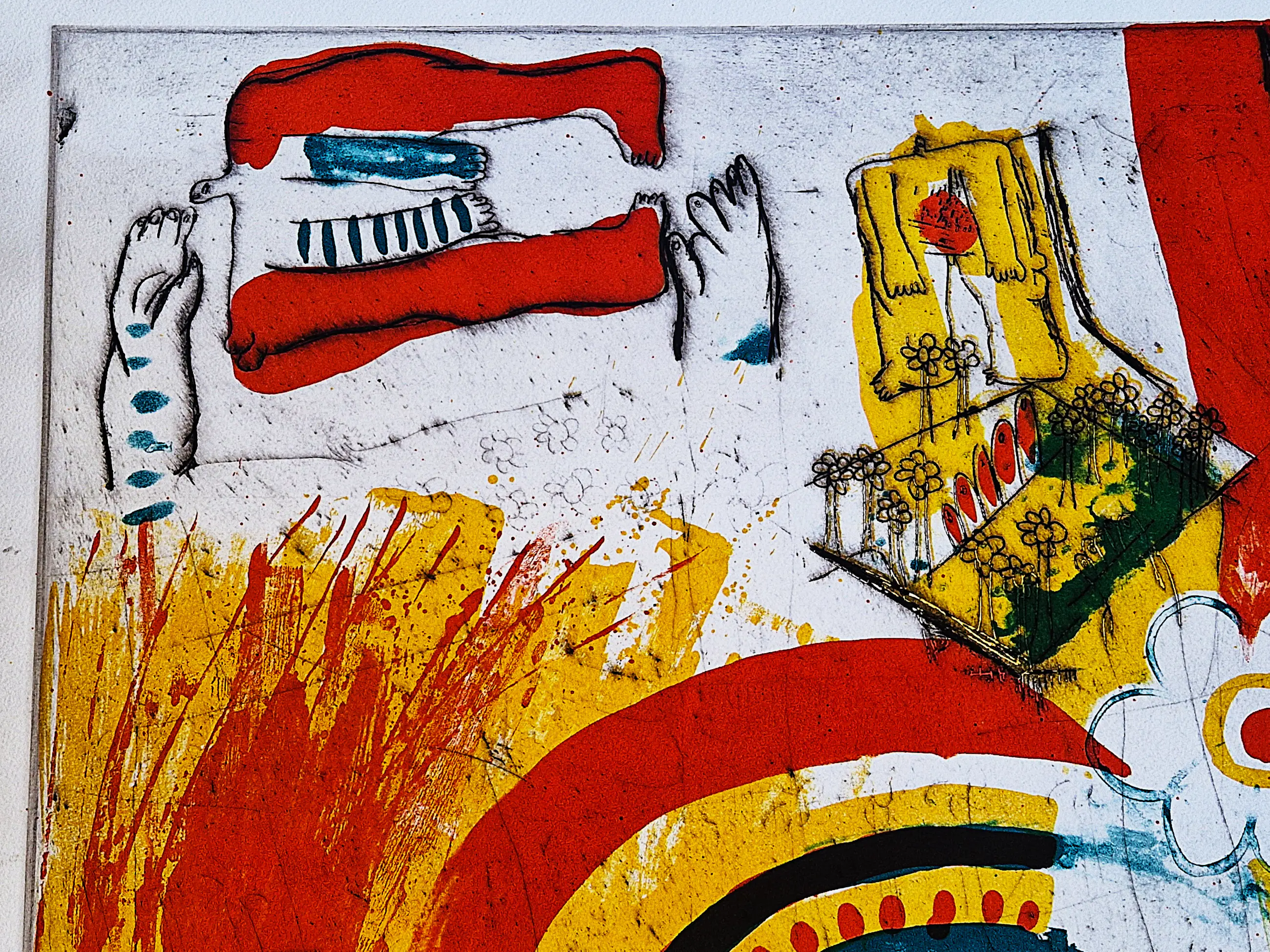 - Medium: handgekleurde reliëf ets en aquatint op geschept papier