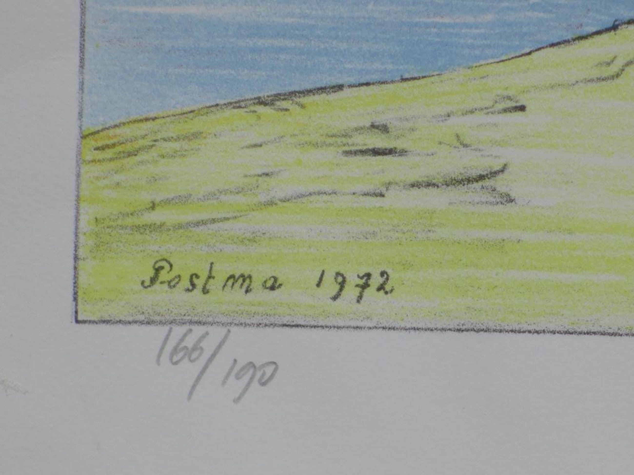 Gesigneerd r.o. 'HPostma' en l.o. in de plaat 'Postma 1972'