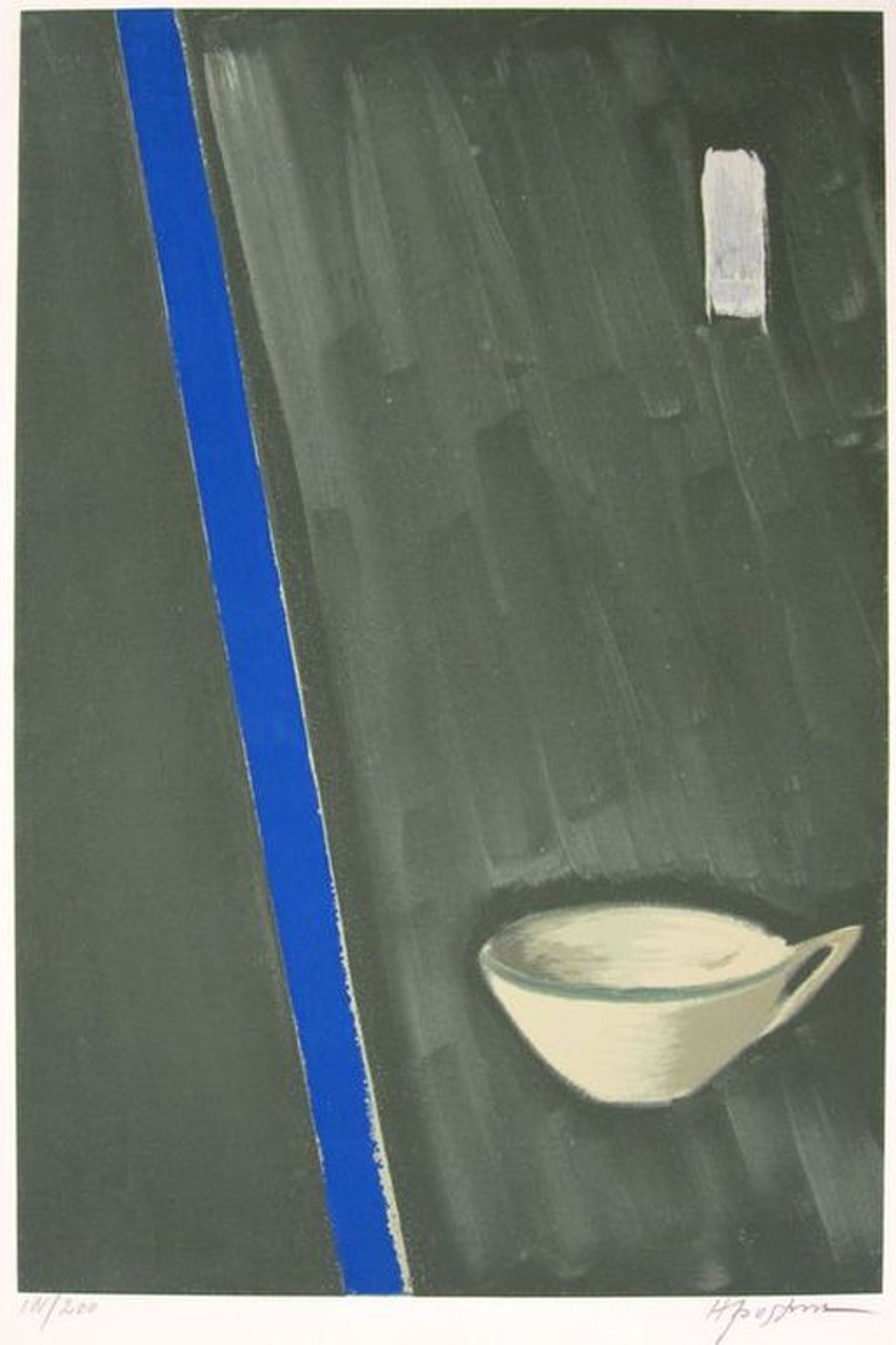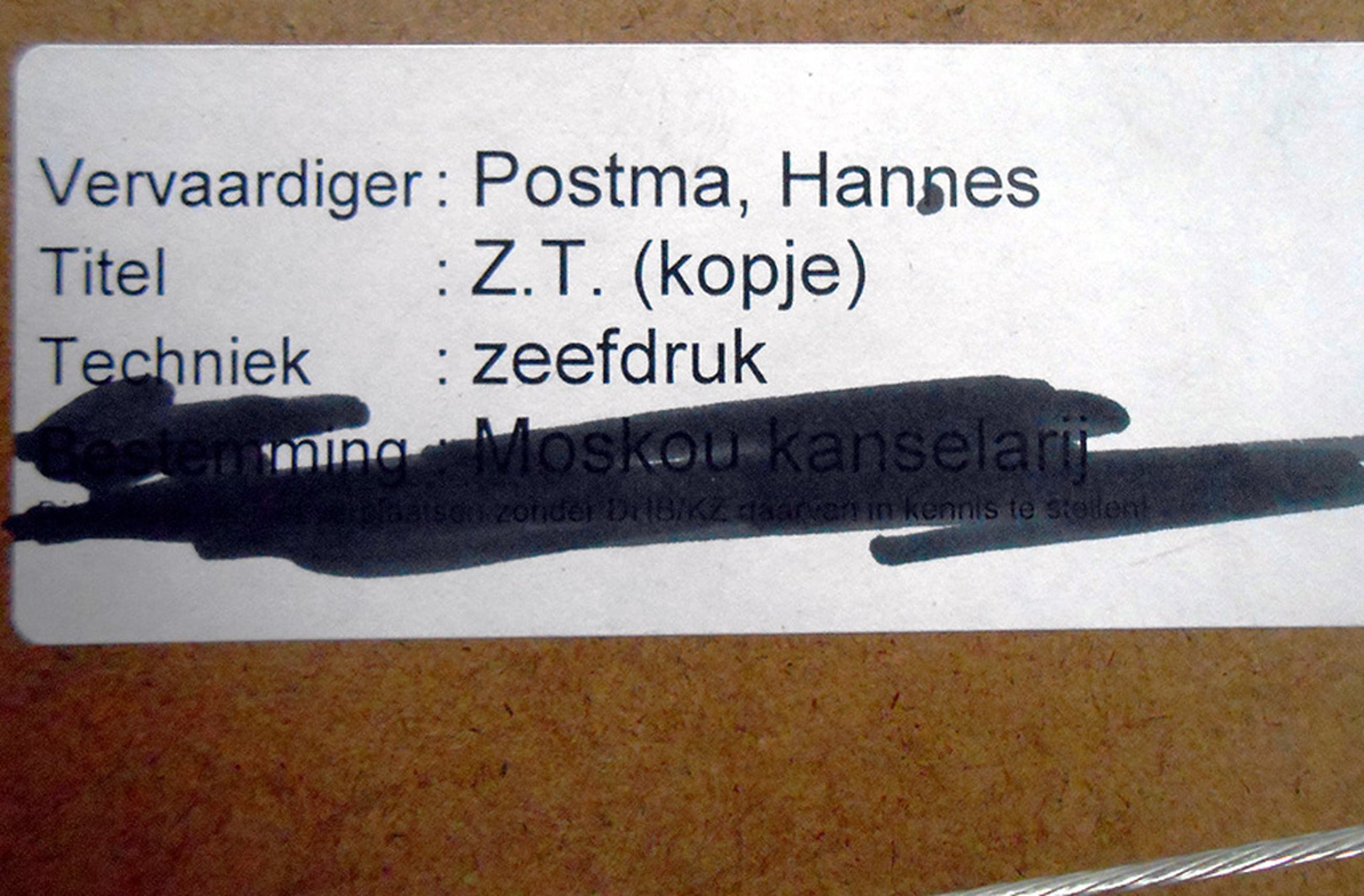 Zeefdruk van Hannes Postma, editie 141/200, gesigneerd en genummerd in potlood onder de voorstelling.