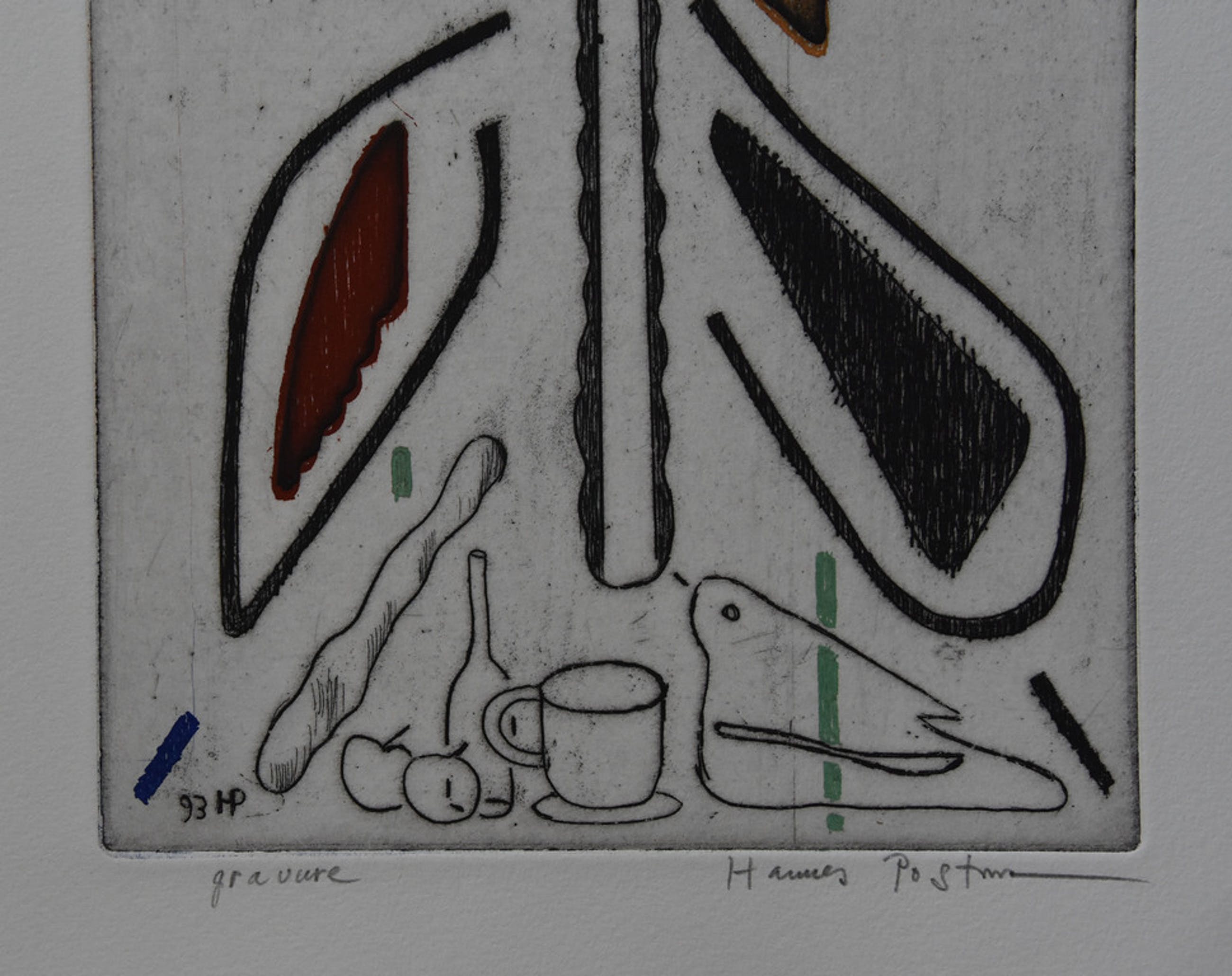 gesigneerd : Hannes Postma (potlood) en HP93 in de plaat