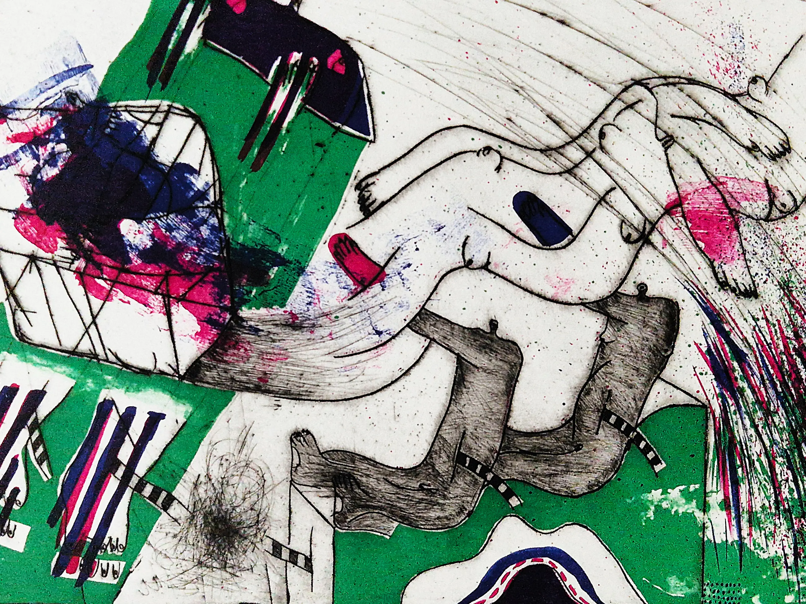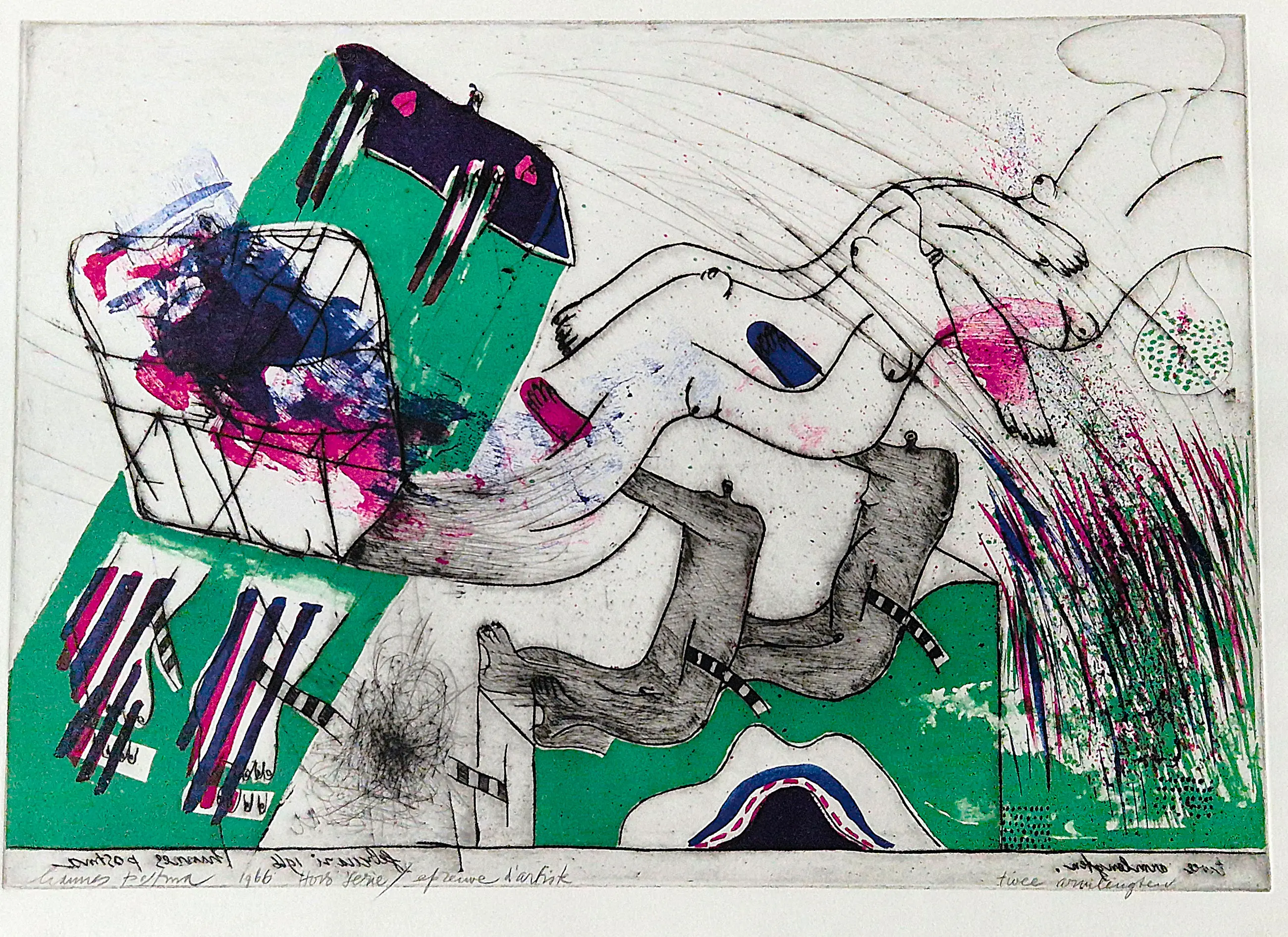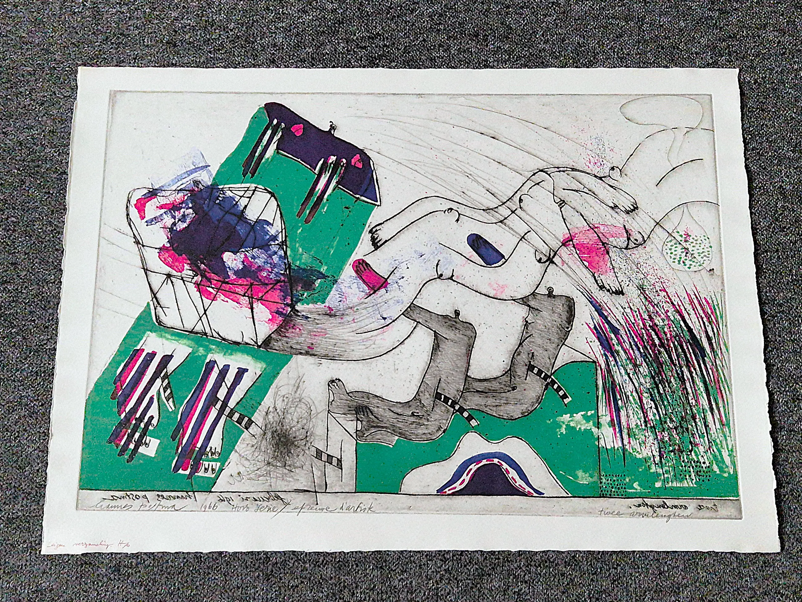 - Medium: handgekleurde reliëf ets en litho op geschept papier