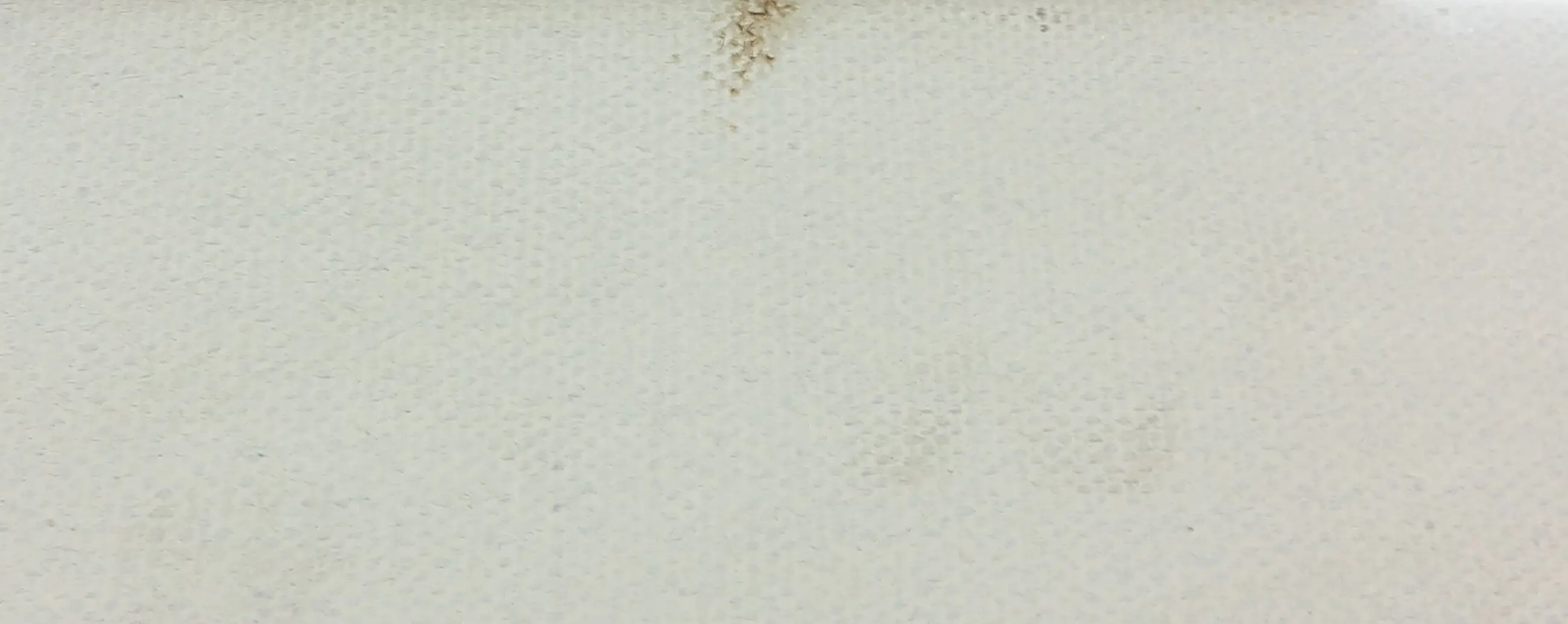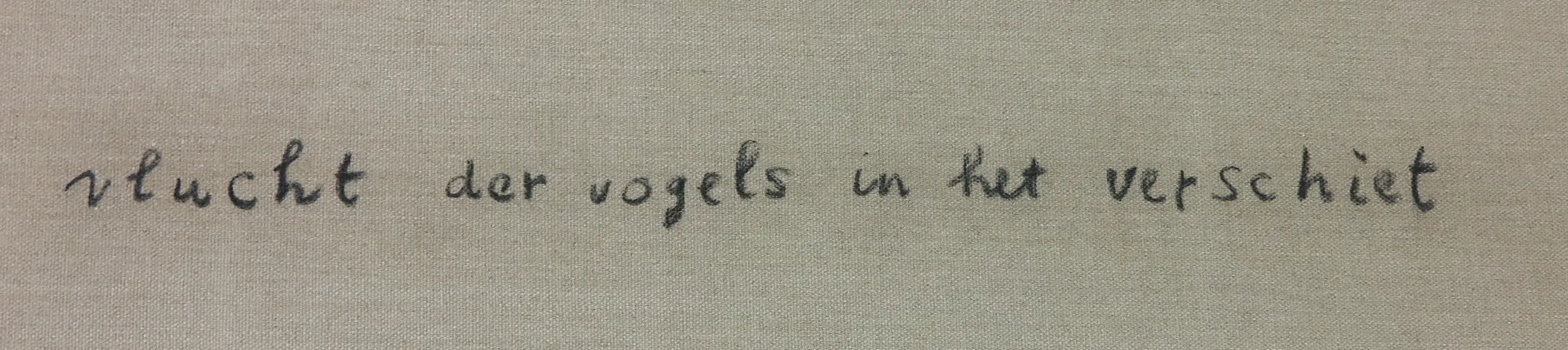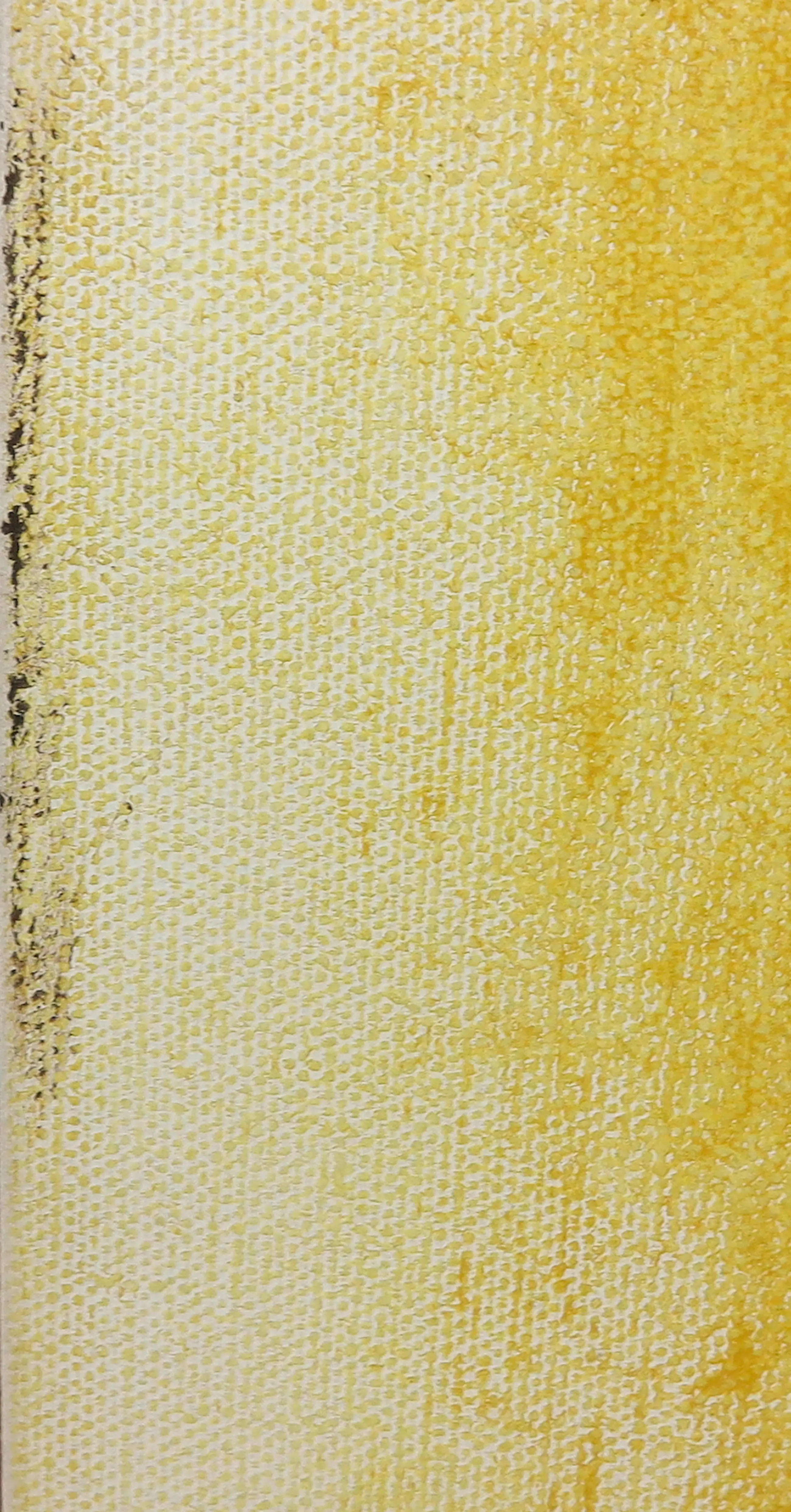 | Wat licht vuil en wat veegjes langs de randen van het doek. Zie hiervoor de detailfoto's. | |