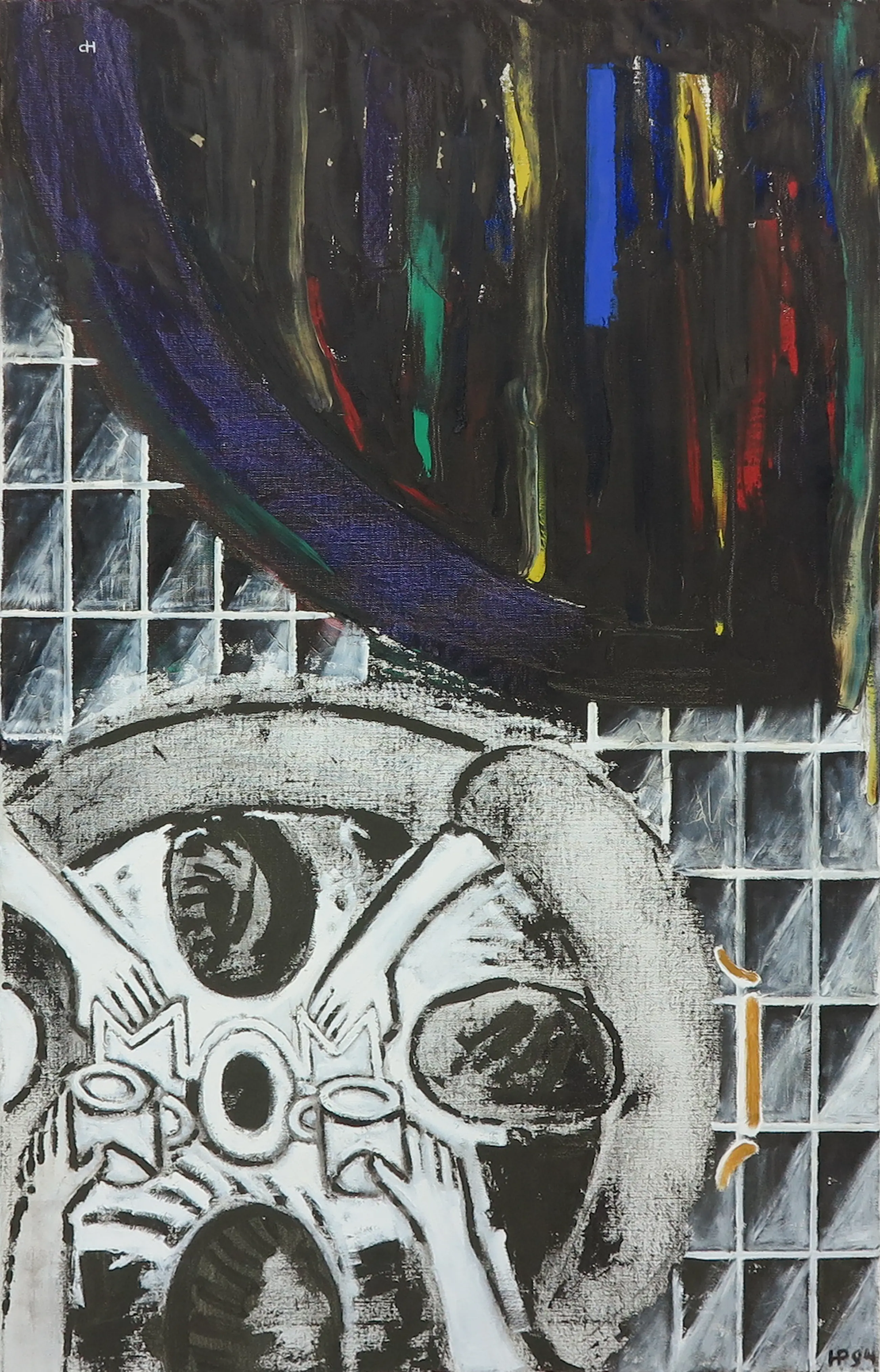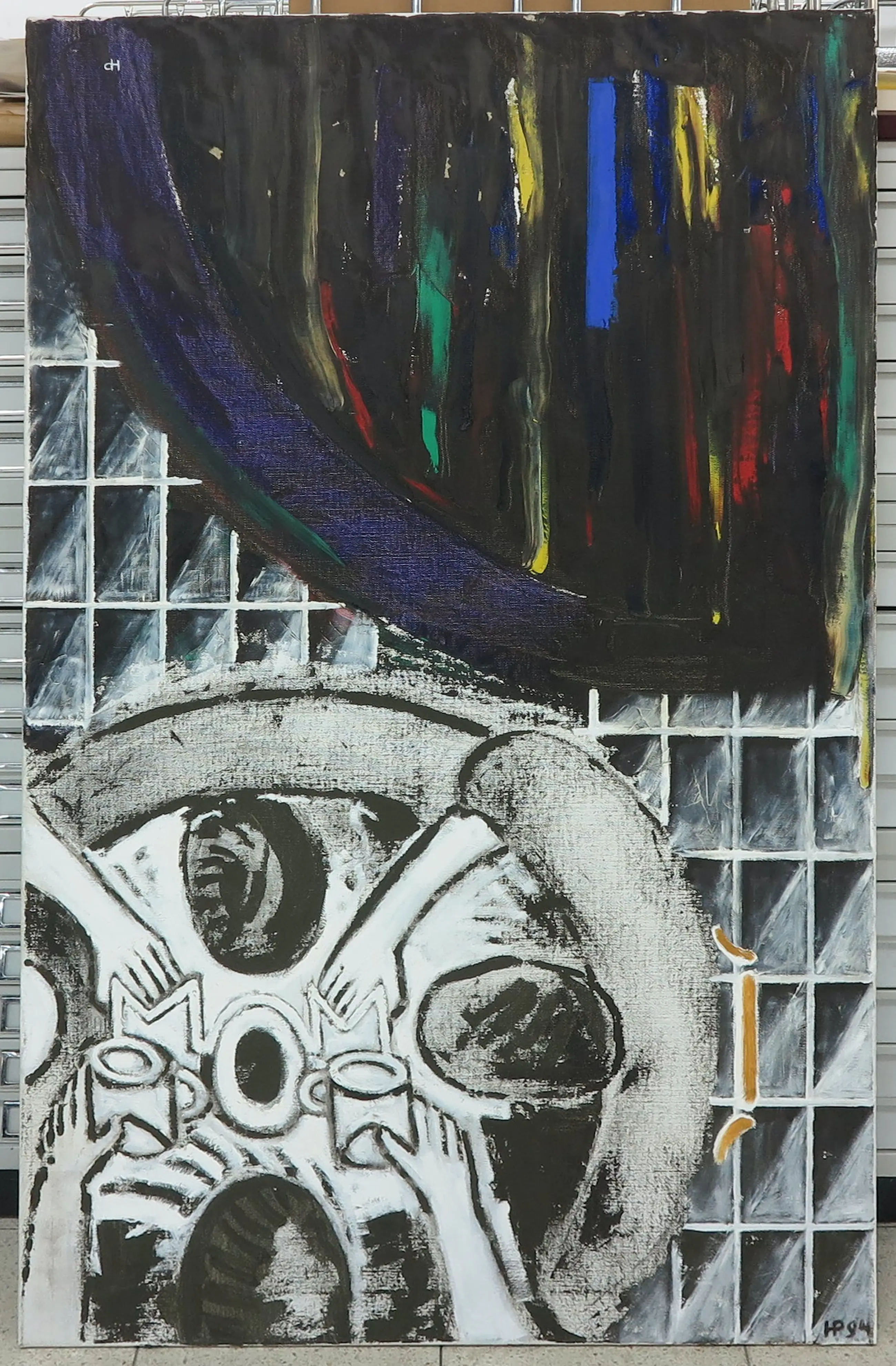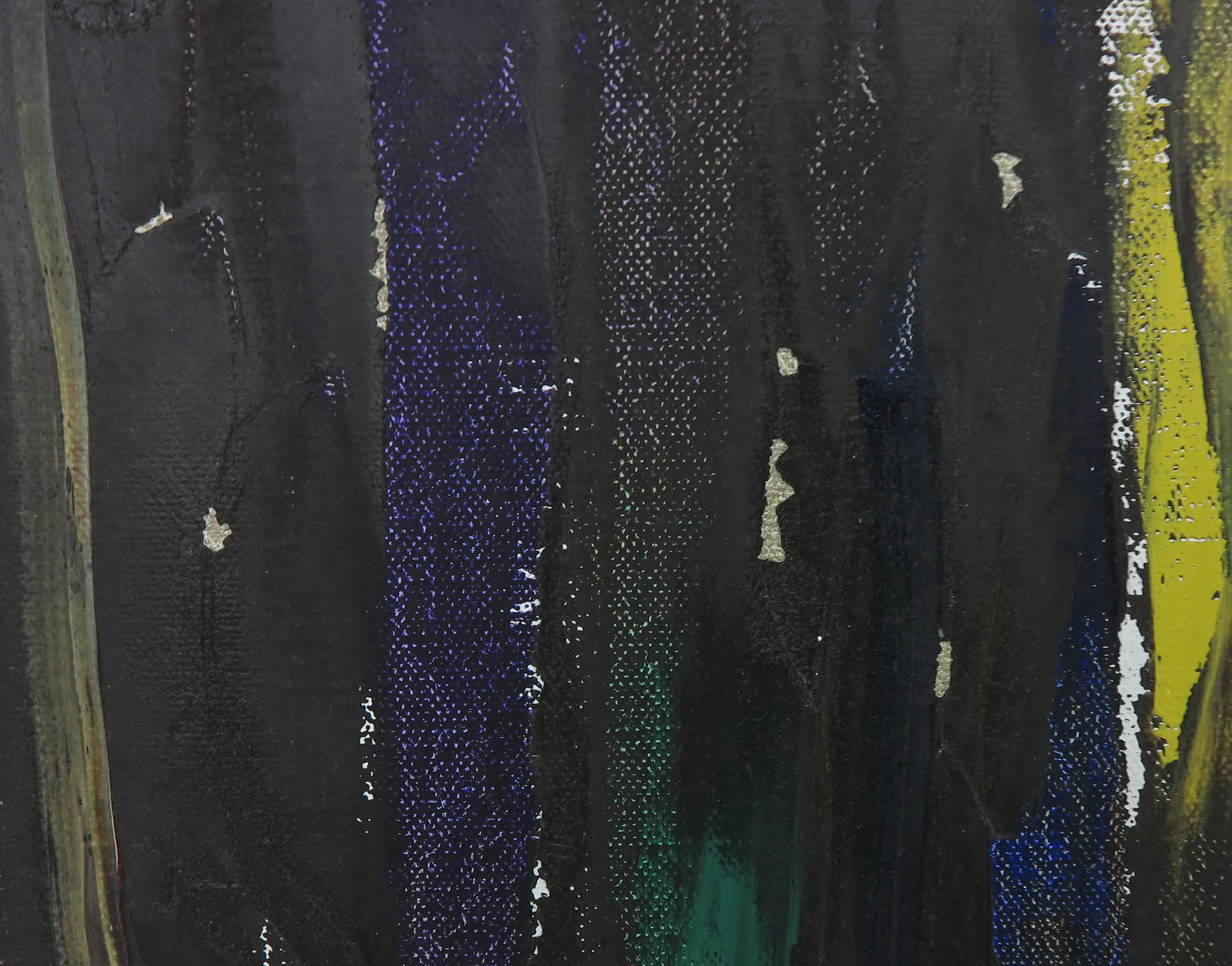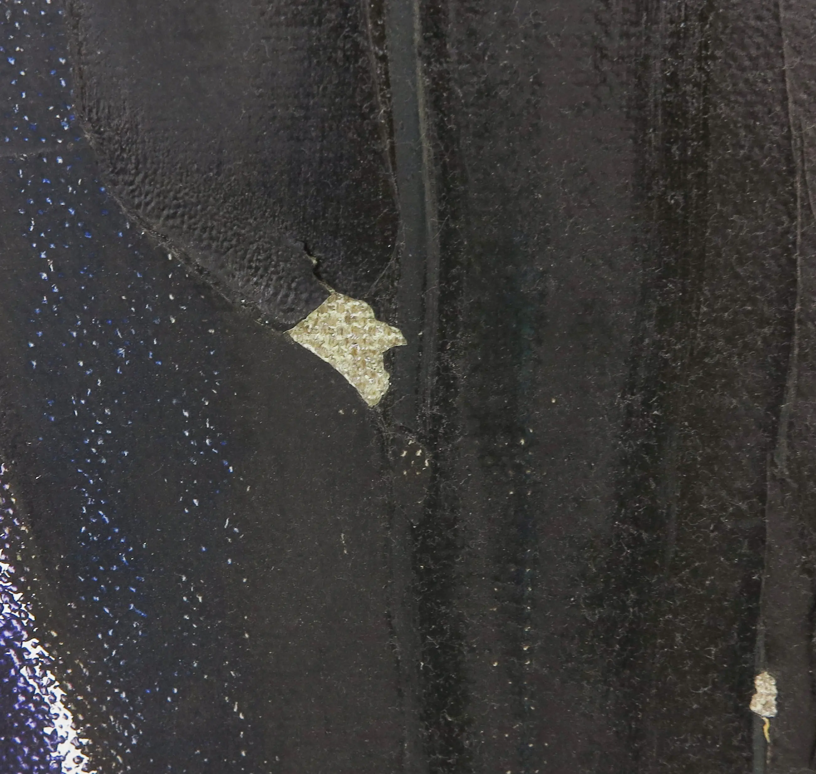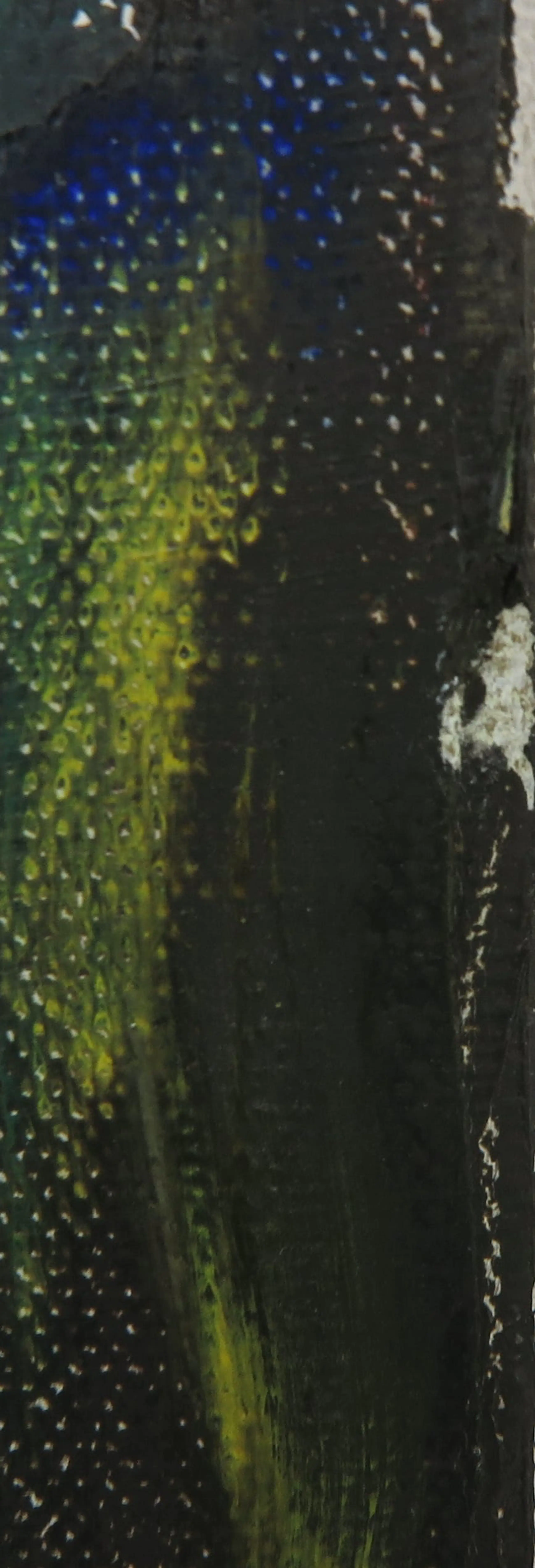 | Het werk heeft op een aantal plekjes oppervlakteschade met verfverlies, zie hiervoor de detailfoto's. | |