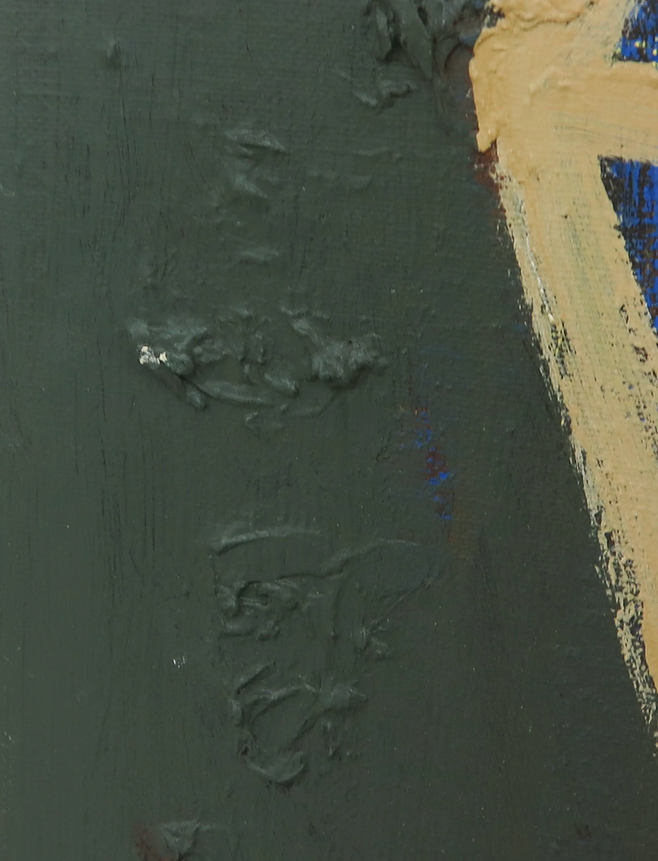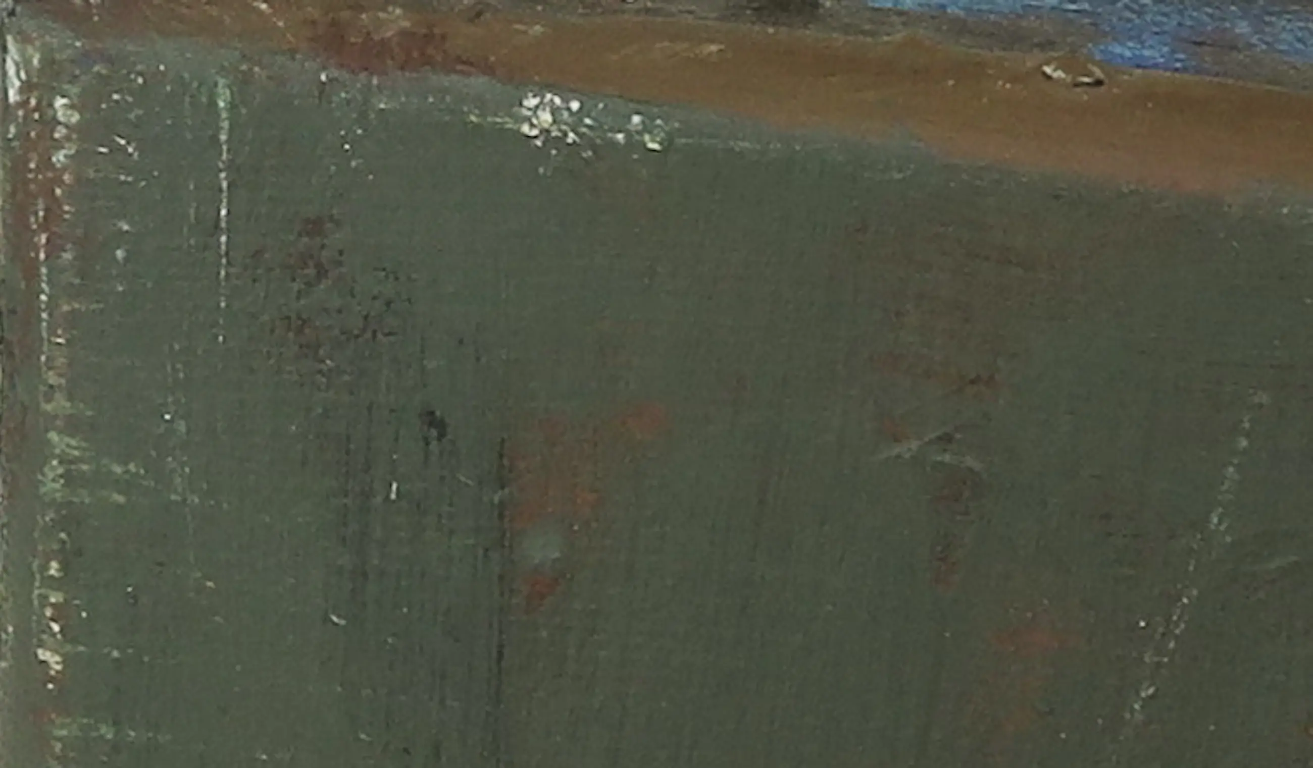 | Wat slijtagesporen aan de randen en hoeken van doek. Zie hiervoor de detailfoto's. | |