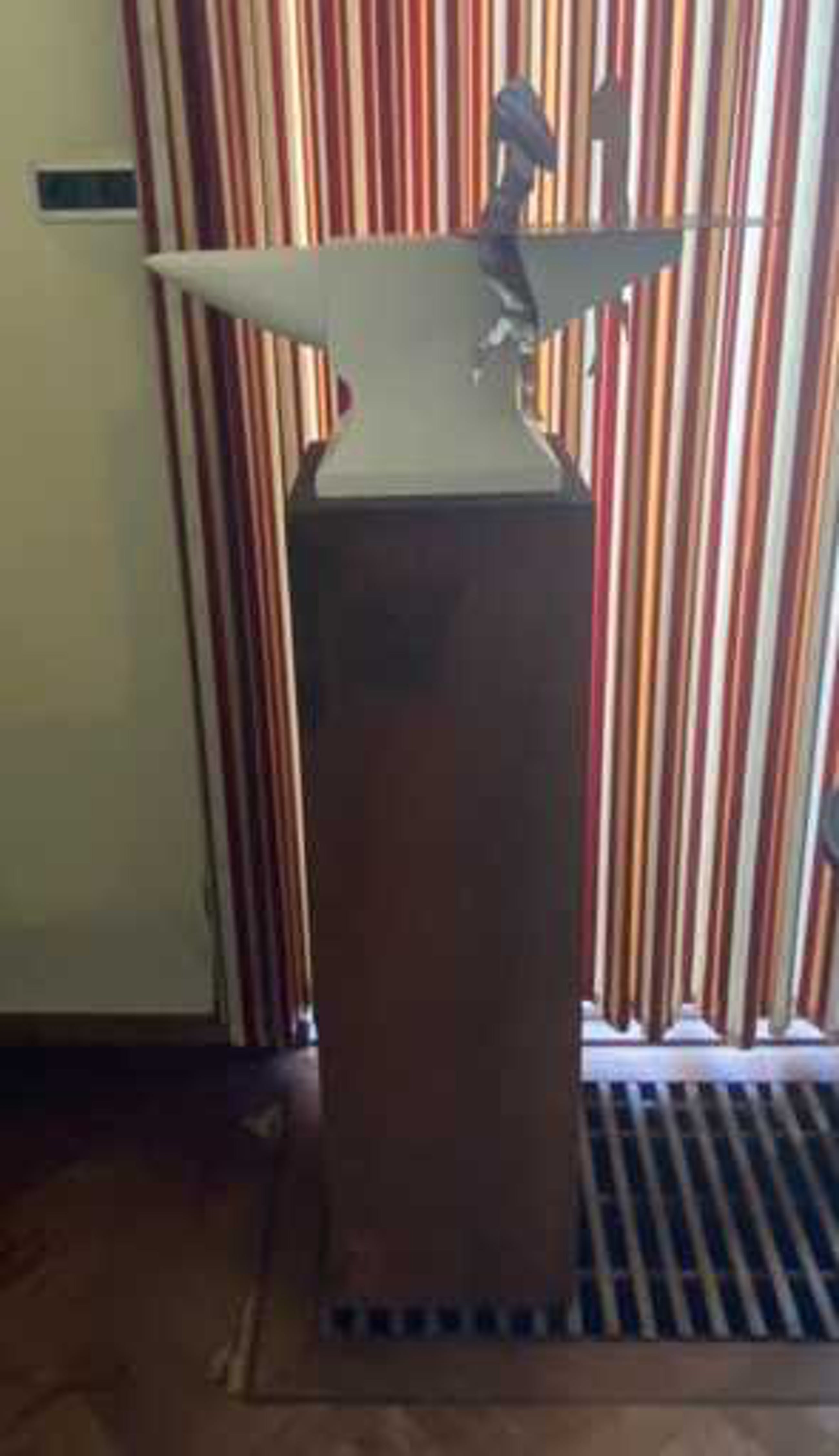 Op mooie bijpassende ijzeren sokkel van 115 x 33 x 33 cm