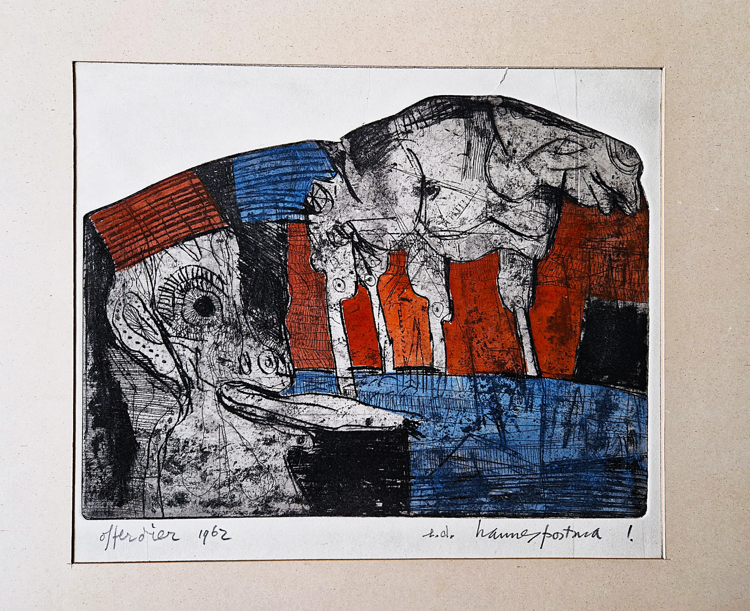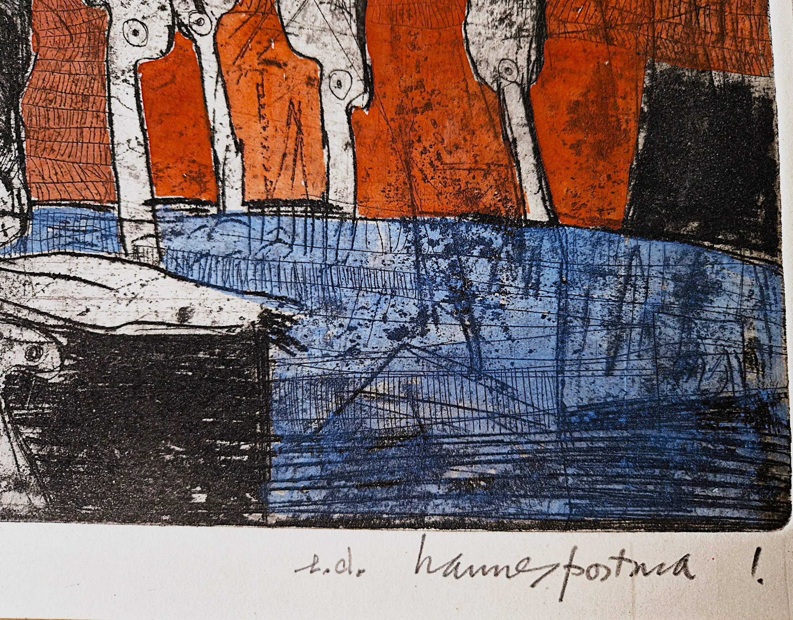 Hannes Postma, geboren in 1933 te Haarlem, studeerde aan de Rijksakademie van beeldende kunsten in Amsterdam. Zijn oeuvre bestaat uit schilderijen van olieverf op linnen, sculpturen van ijzer en gips, zeefdrukken en etsen. In de jaren '60 verwierf de kunstenaar veel bekendheid met zijn series kleuretsen.