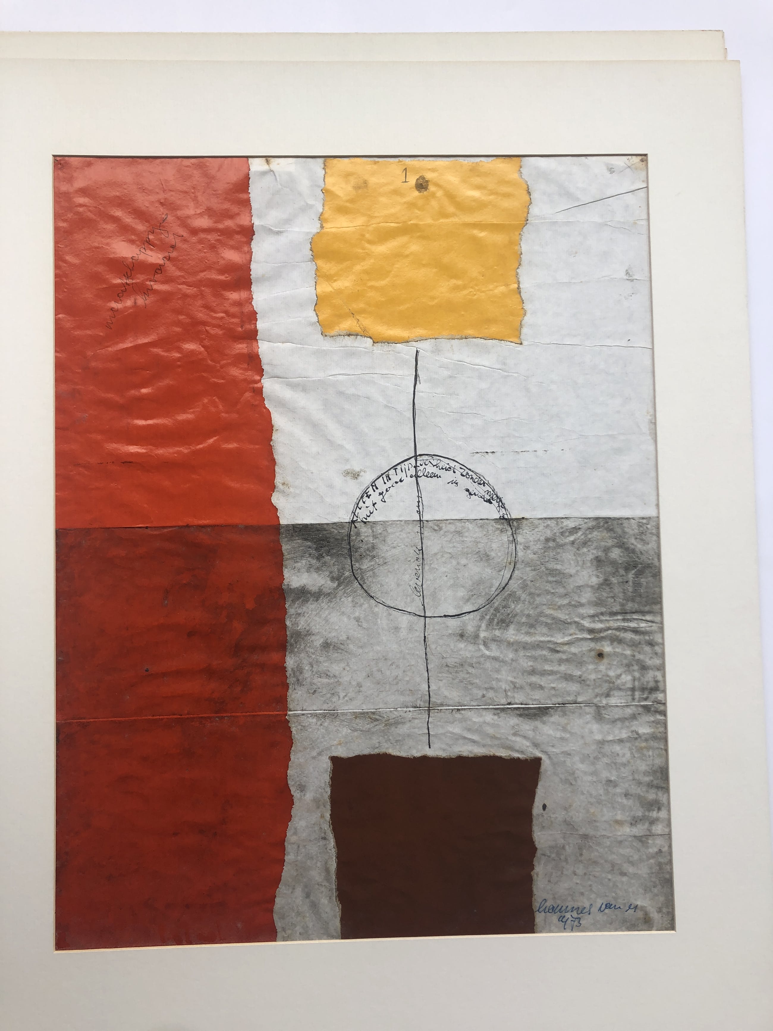 Mooie collage in gemengde technieken van Hannes van Es. Alas u hem op komt halen zit er een passe partout bij. U kunt het werk vooraf komen bekijken bij galerie Rotor in Gorinchem en na afloop van de veiling ophalen of zonder passe partout per aangetekende post toegestuurd krijgen. In overleg kunt u uw aankopen laten opslaan in onze verwarmde opslagruimte en ze in een later stadium ophalen. Het werk is gefotografeerd door het glas heen. Wij kunnen ook uw inlijstingen verzorgen. JvM