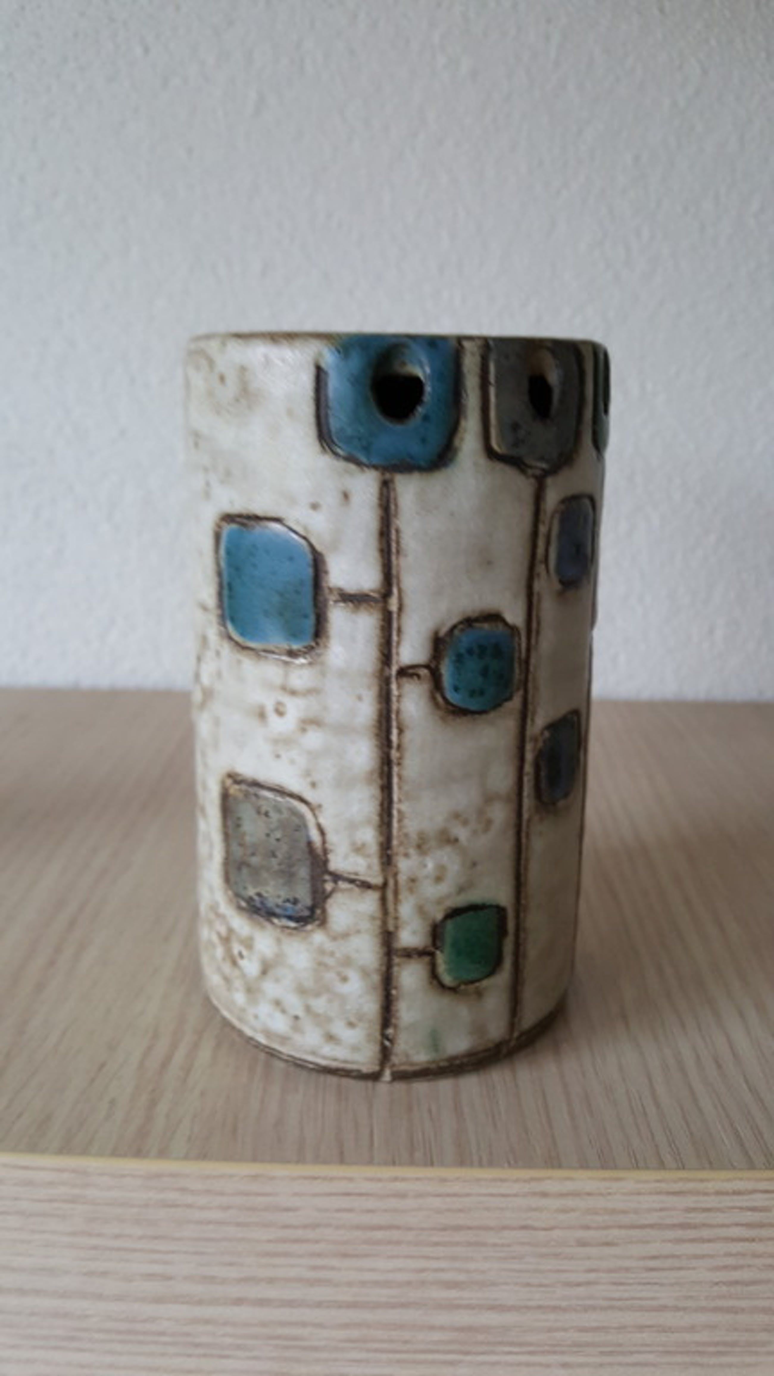 Hannie Mein gedecoreerde bloemsteker. Uitstekende staat en gemerkt. Hoogte ca. 12,5 cm.
