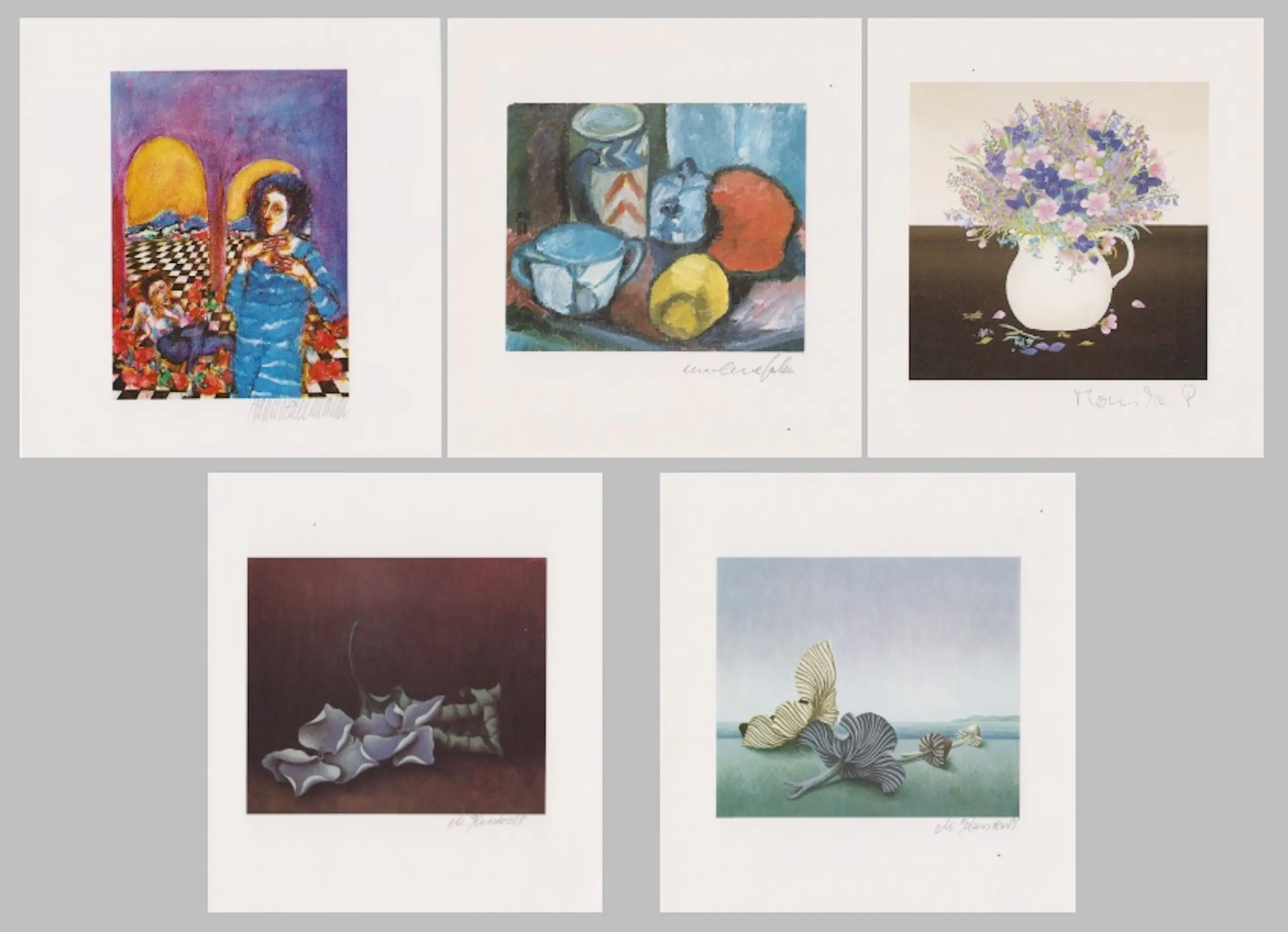Collectie van vijf handgesigneerde zeefdrukken