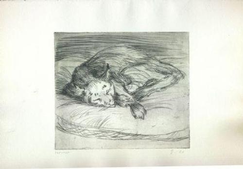 Hanns Georgi - Schlafender Luchs - Radierung - 1972 kopen? Bied vanaf 45!