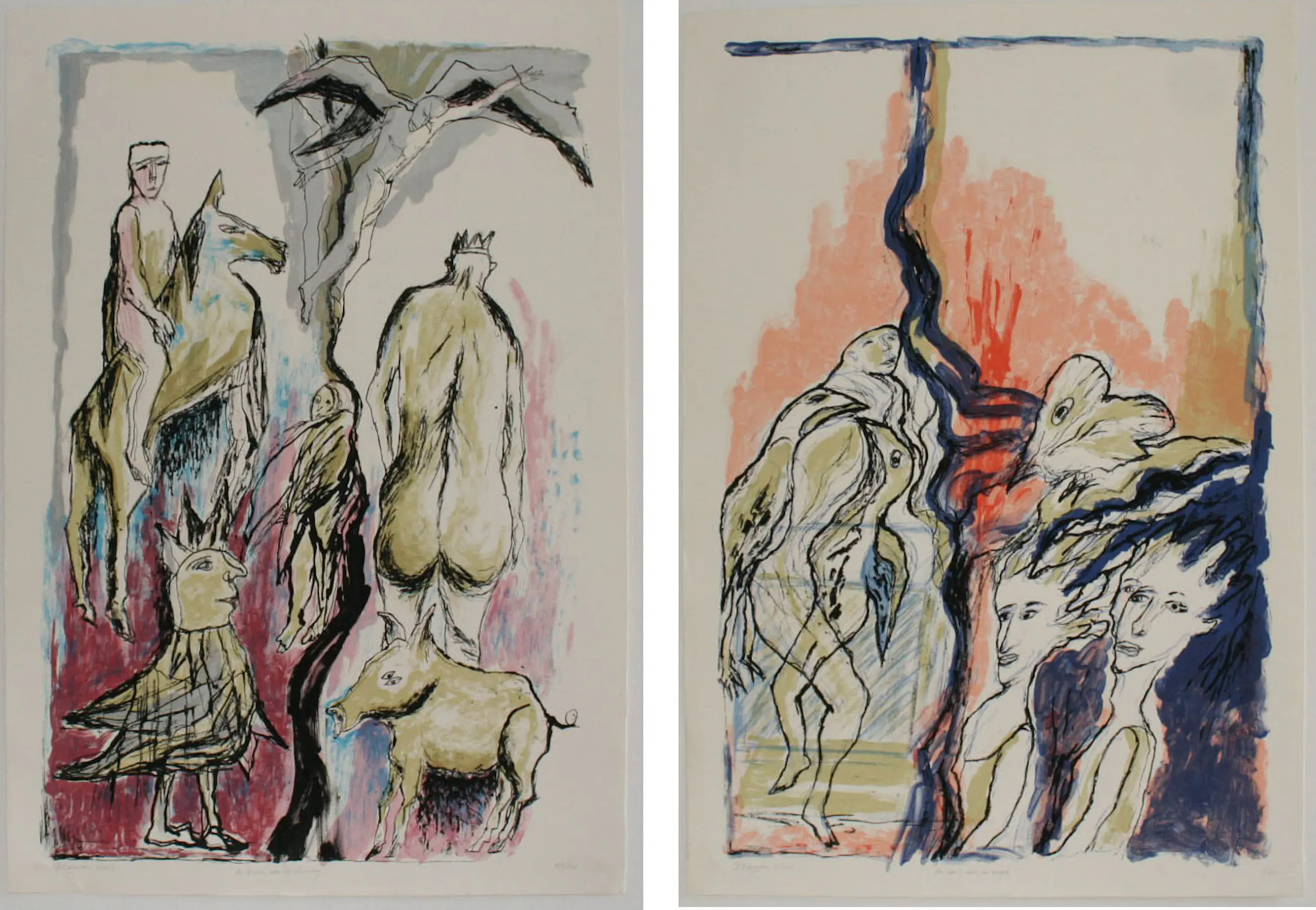 Betreft een twee-luik. Zeefdrukken op hand geschept papier