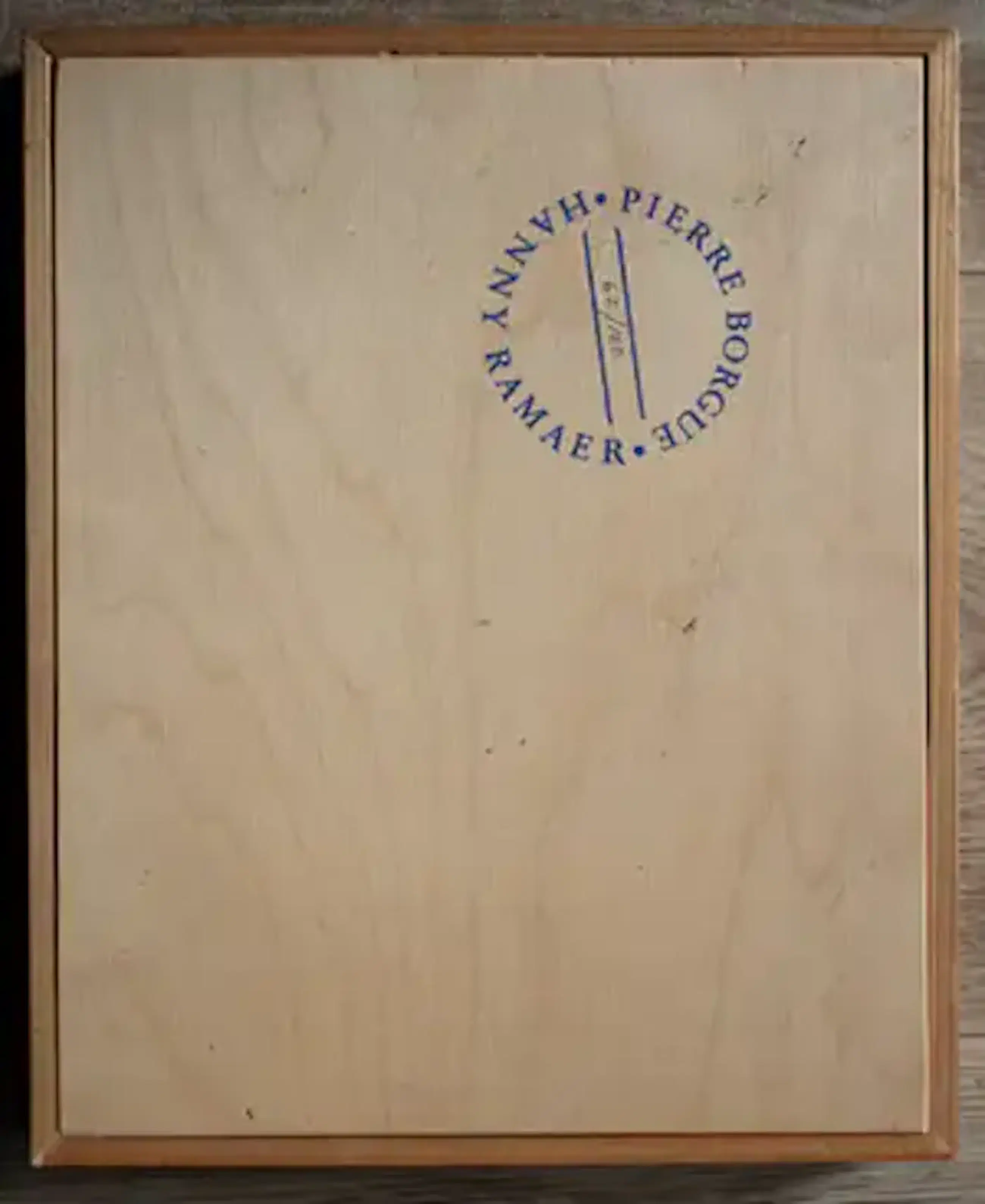 Box met 6 zeefdrukken van Hanny Ramaer. Titel: De figuren van Hannie Ramaer. Inclusief boekje met zeefdrukken van Hannie Ramaer en tekst van Pierre Borgue. Nummer: 62/100. Jaar: 1987. Afmetingen box: H28 x b23cm. De werken zijn rechtsonder gesigneerd door de kunstenares. De authenticiteit van het aangeboden werk wordt volledig gegarandeerd. Een certificaat van echtheid kan, op aanvraag, worden gemaild.