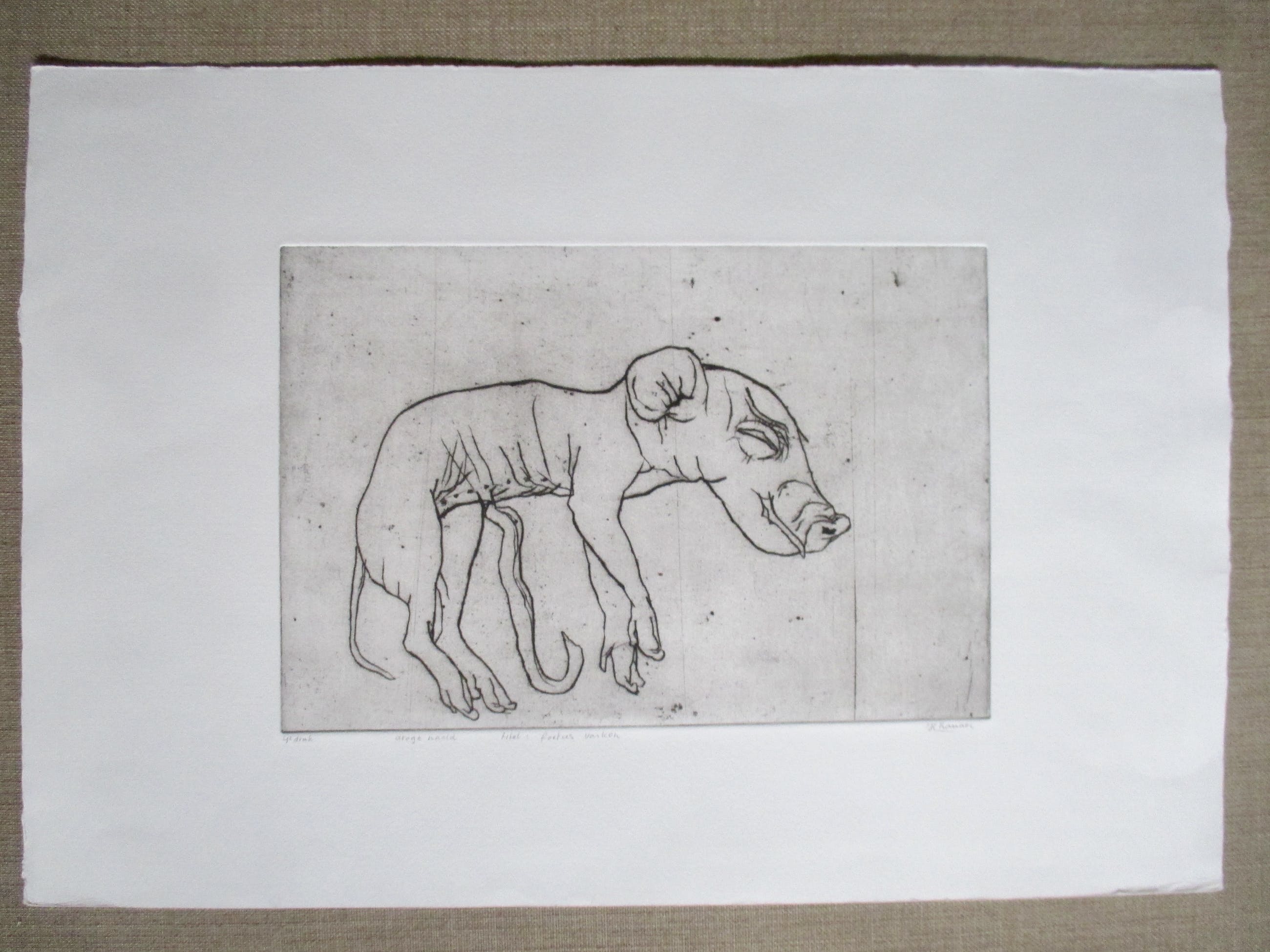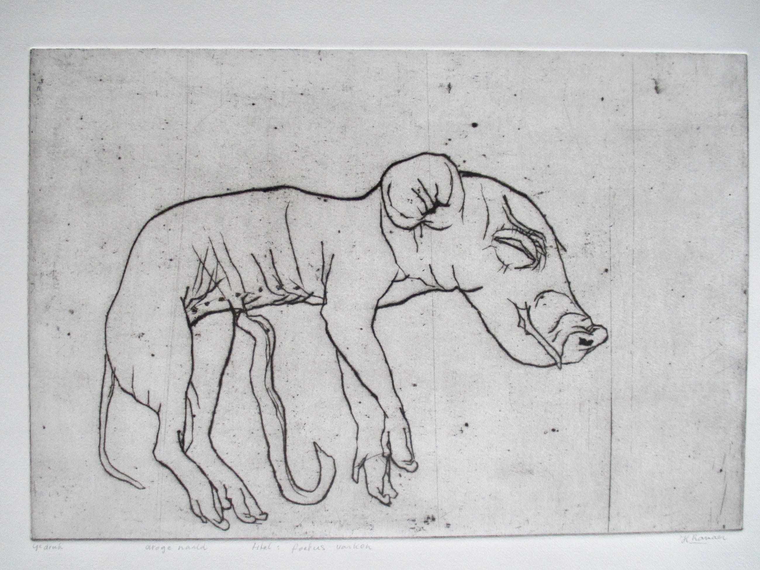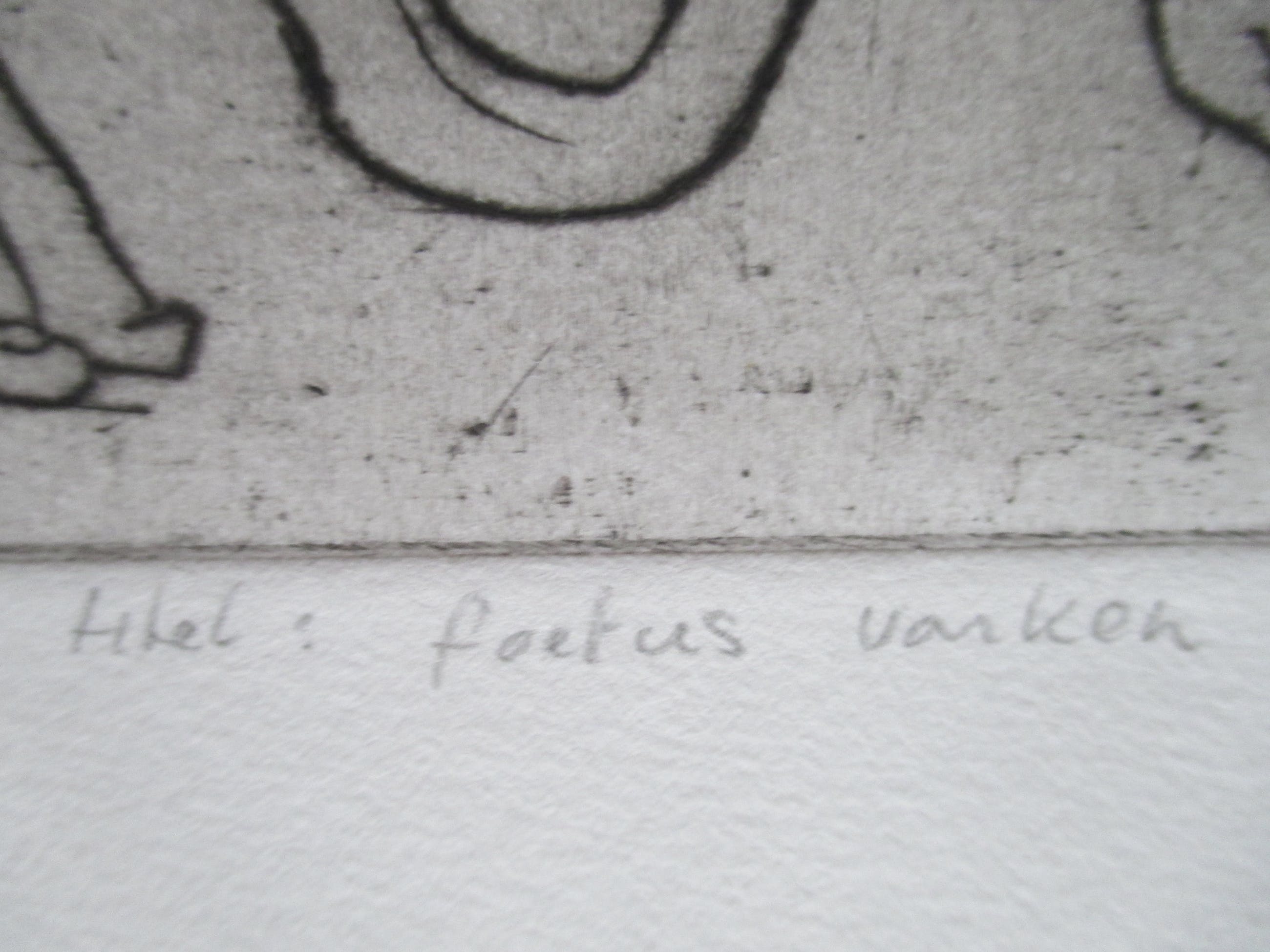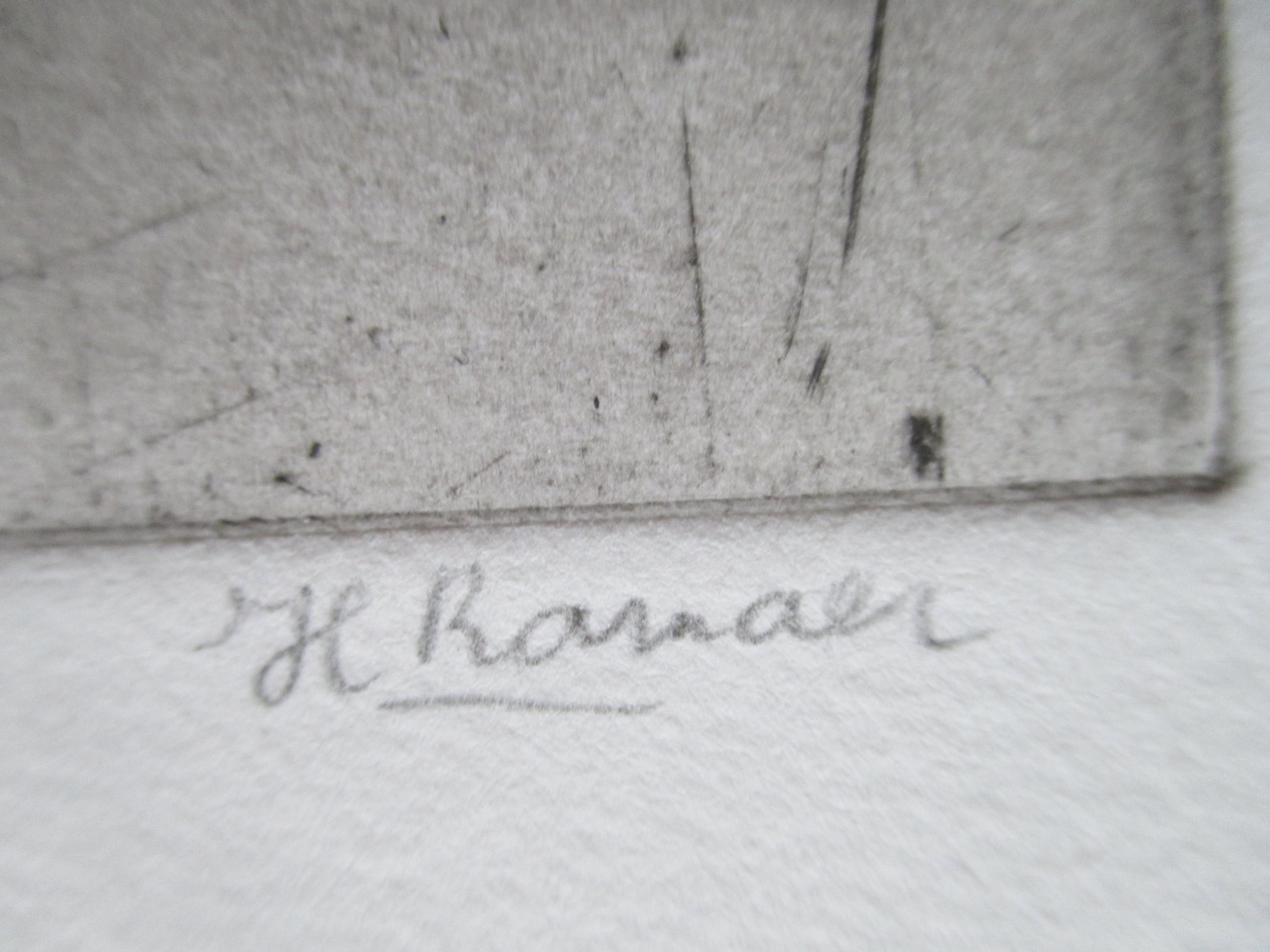 Ets van Hanny Ramaer, gesigneerd, getiteld en genummerd in potlood.Verzending tussen twee platen, 8,25, aangetekend 10,20