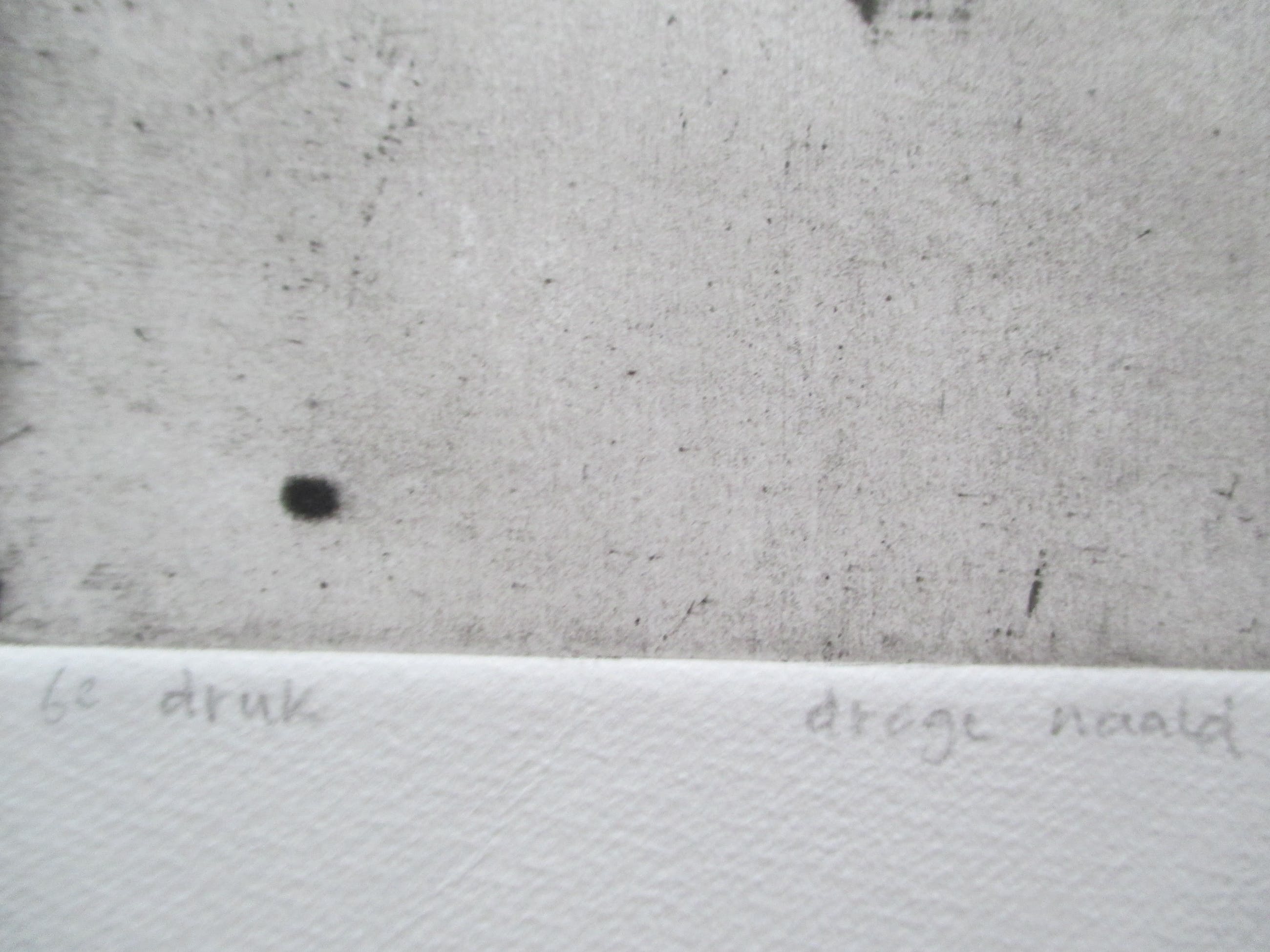Ets van Hanny Ramaer, gesigneerd, getiteld en genummerd in potlood. Verzending tussen twee platen, 8,25, aangetekend 10,20