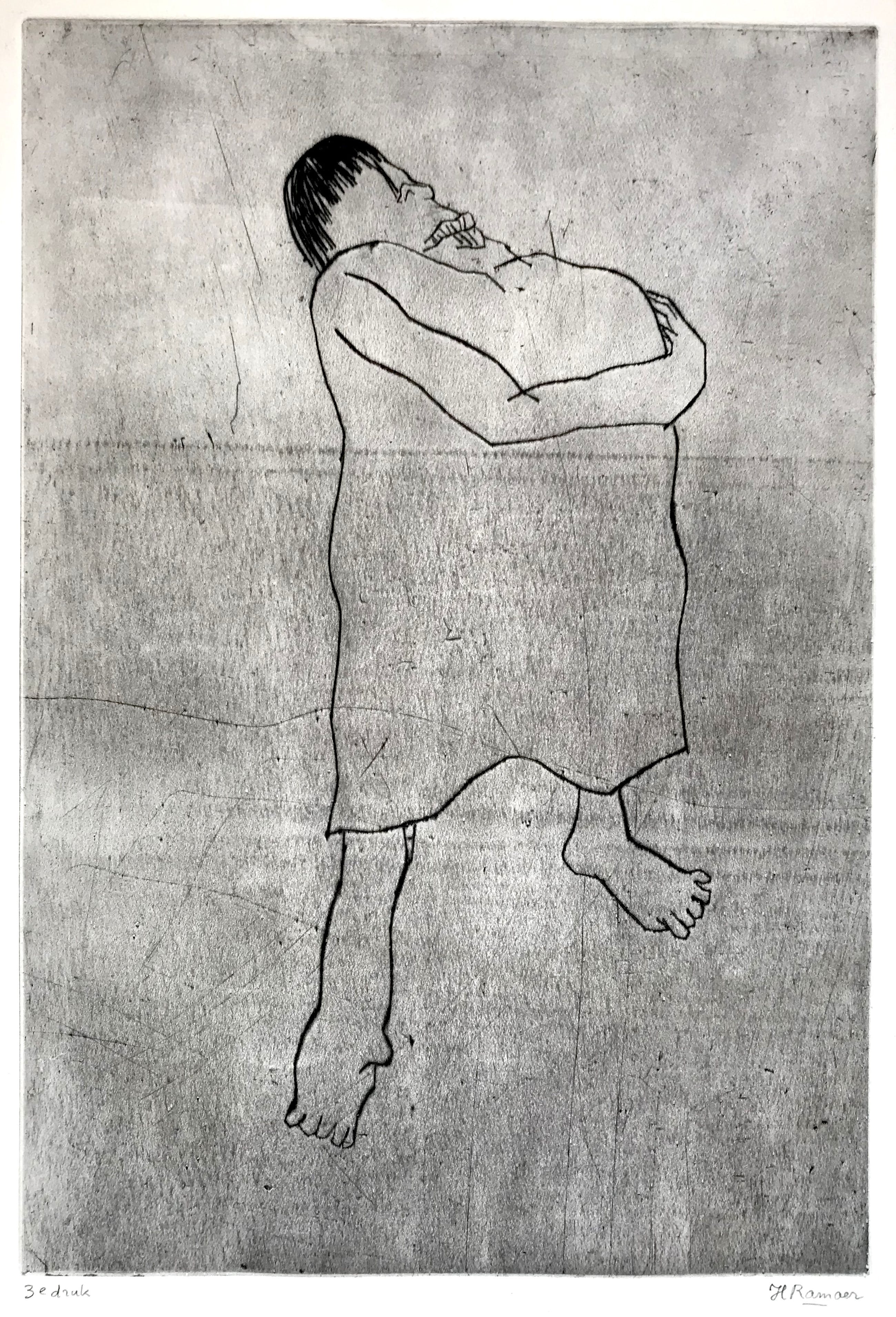 Zeer mooi minimalistisch portret van Ramaer. Afmeting blad: 53 x 39 cm