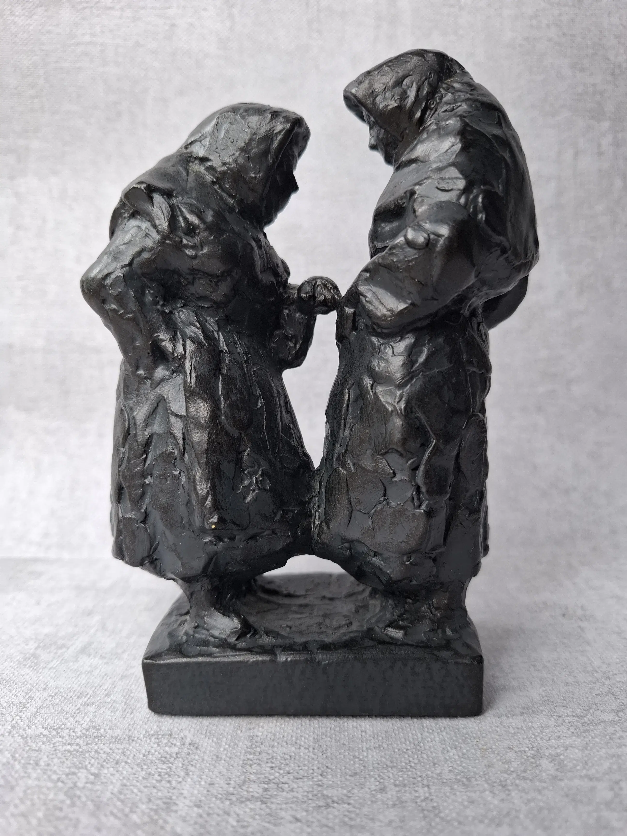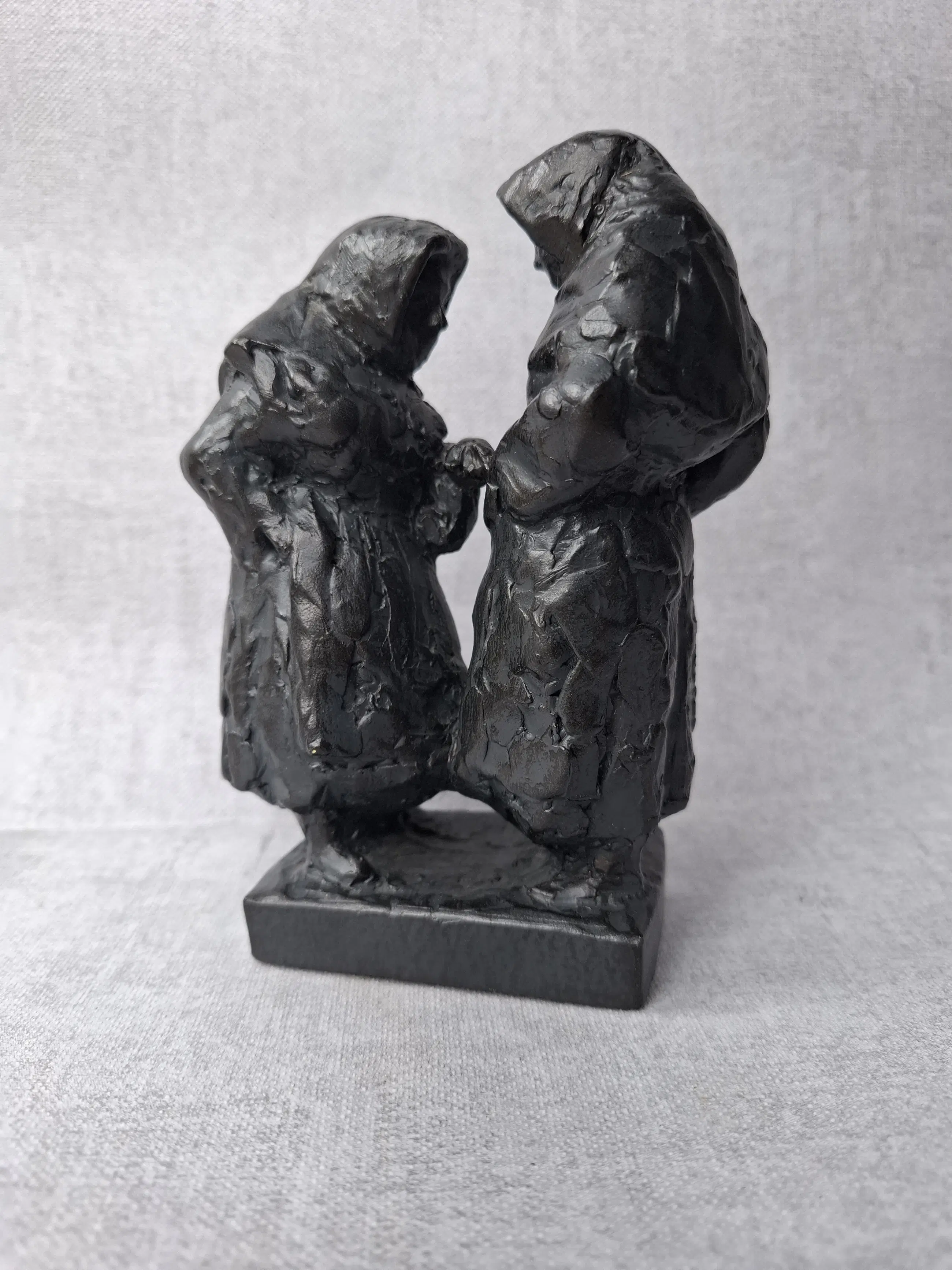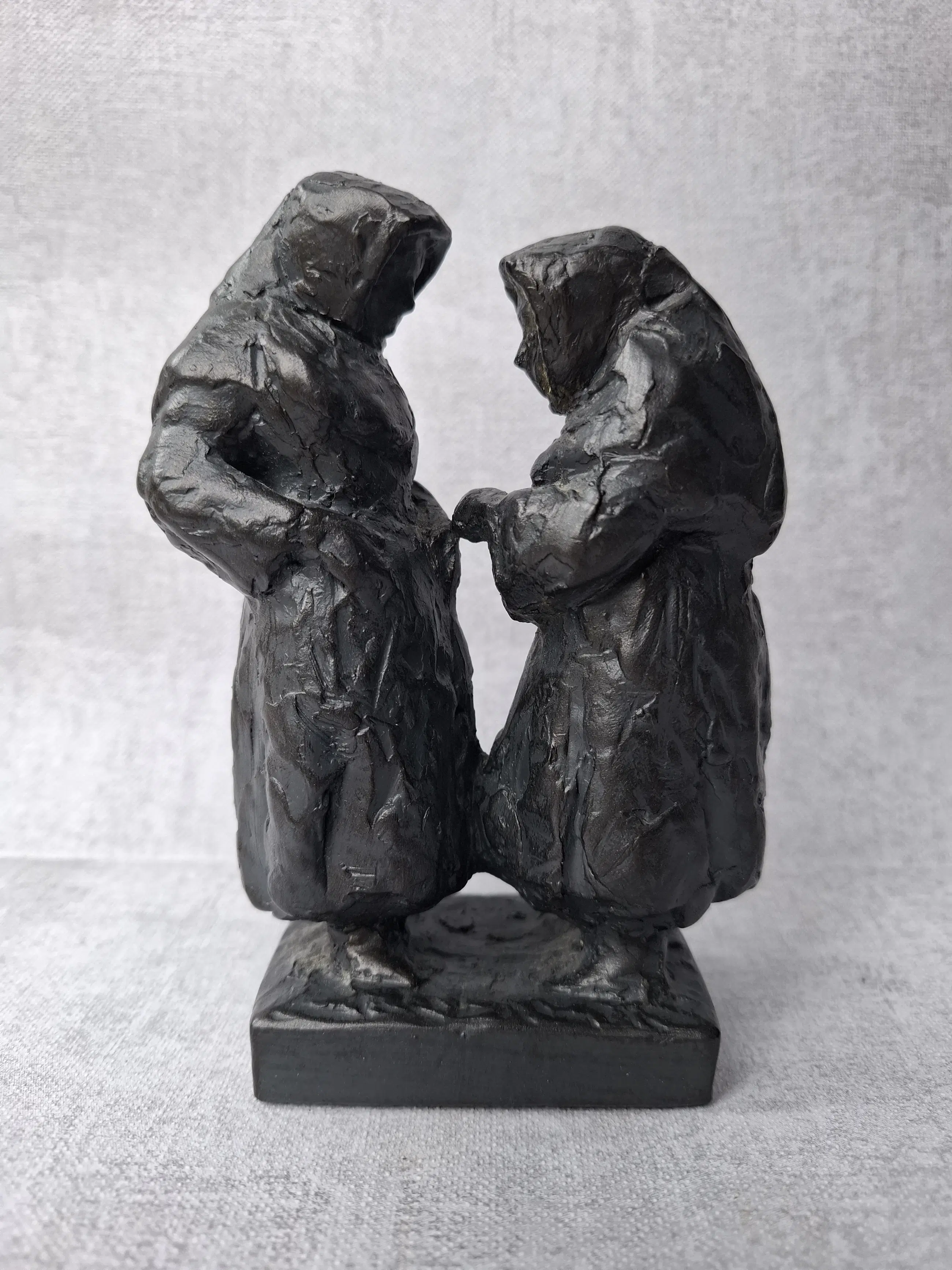 Levendig beeldje van twee begijntjes in gesprek met elkaar.