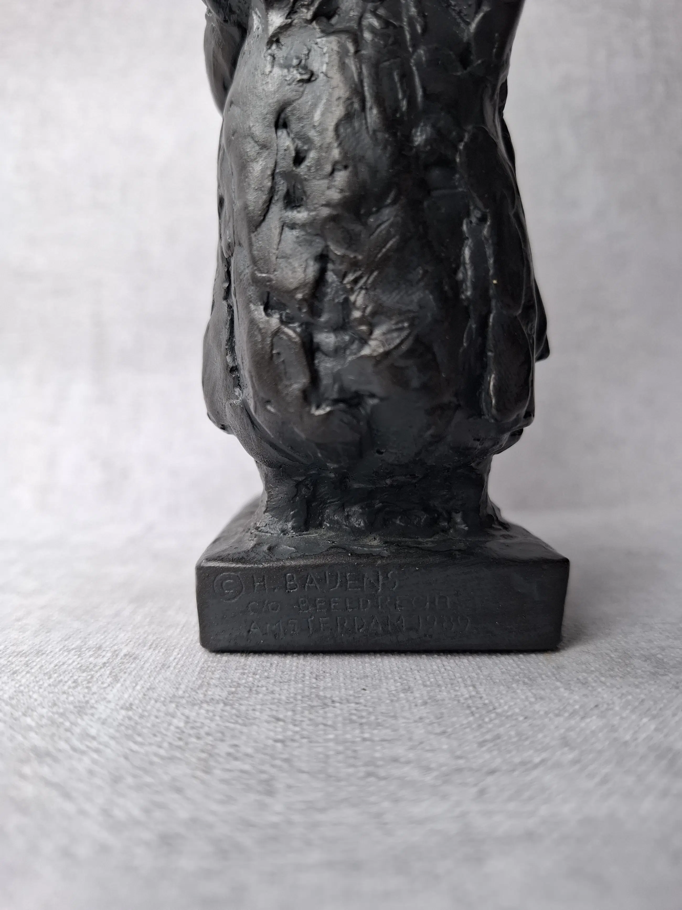 Het originele beeld staat aan de rand van de kruidentuin van het begijnhof in Breda.