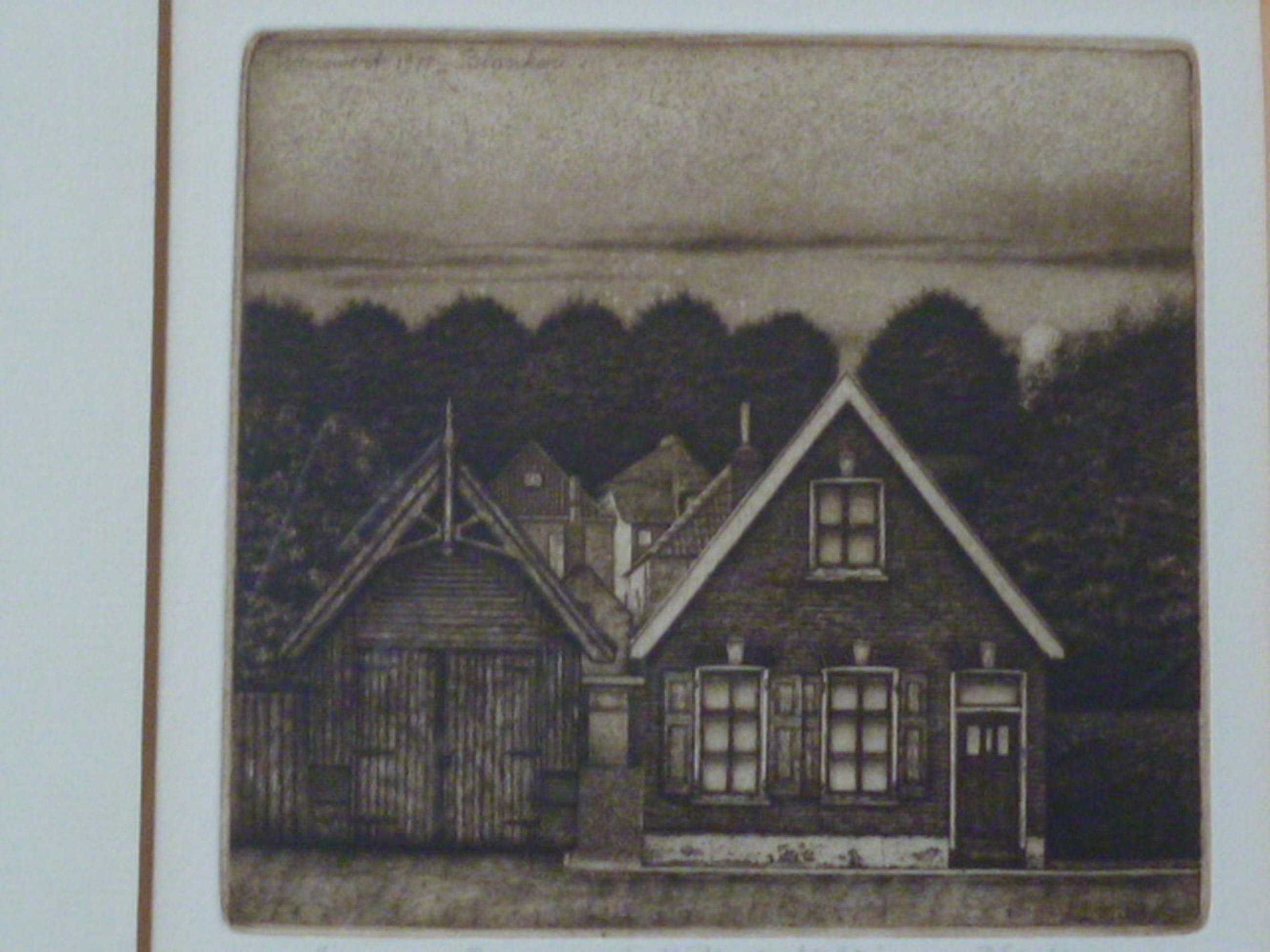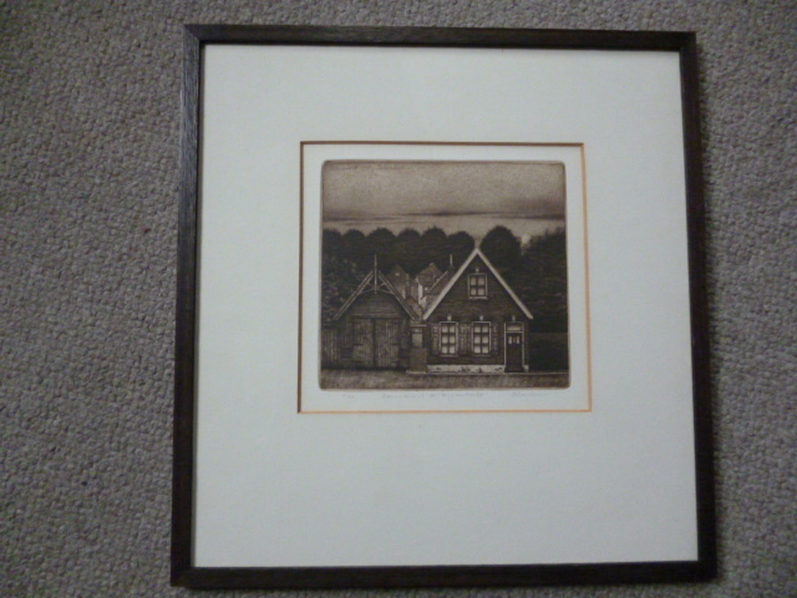 Beeldmaat 13,5 x 14,5 cm. Ingelijst.