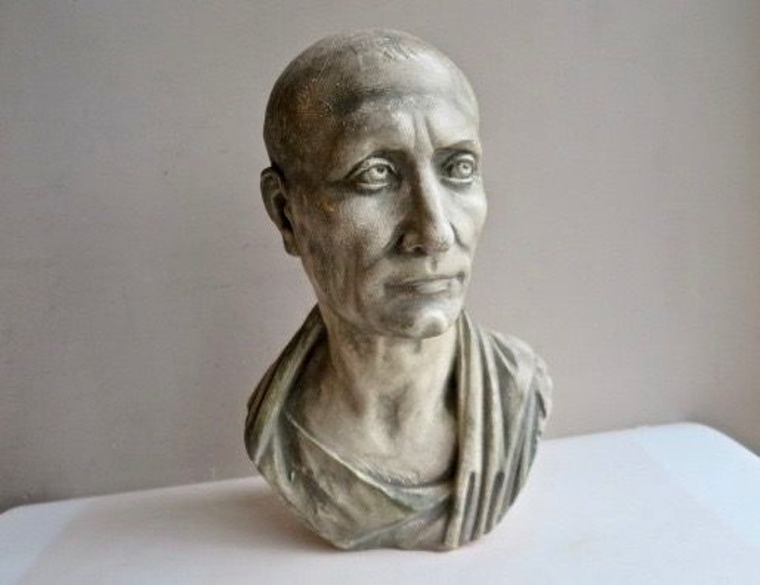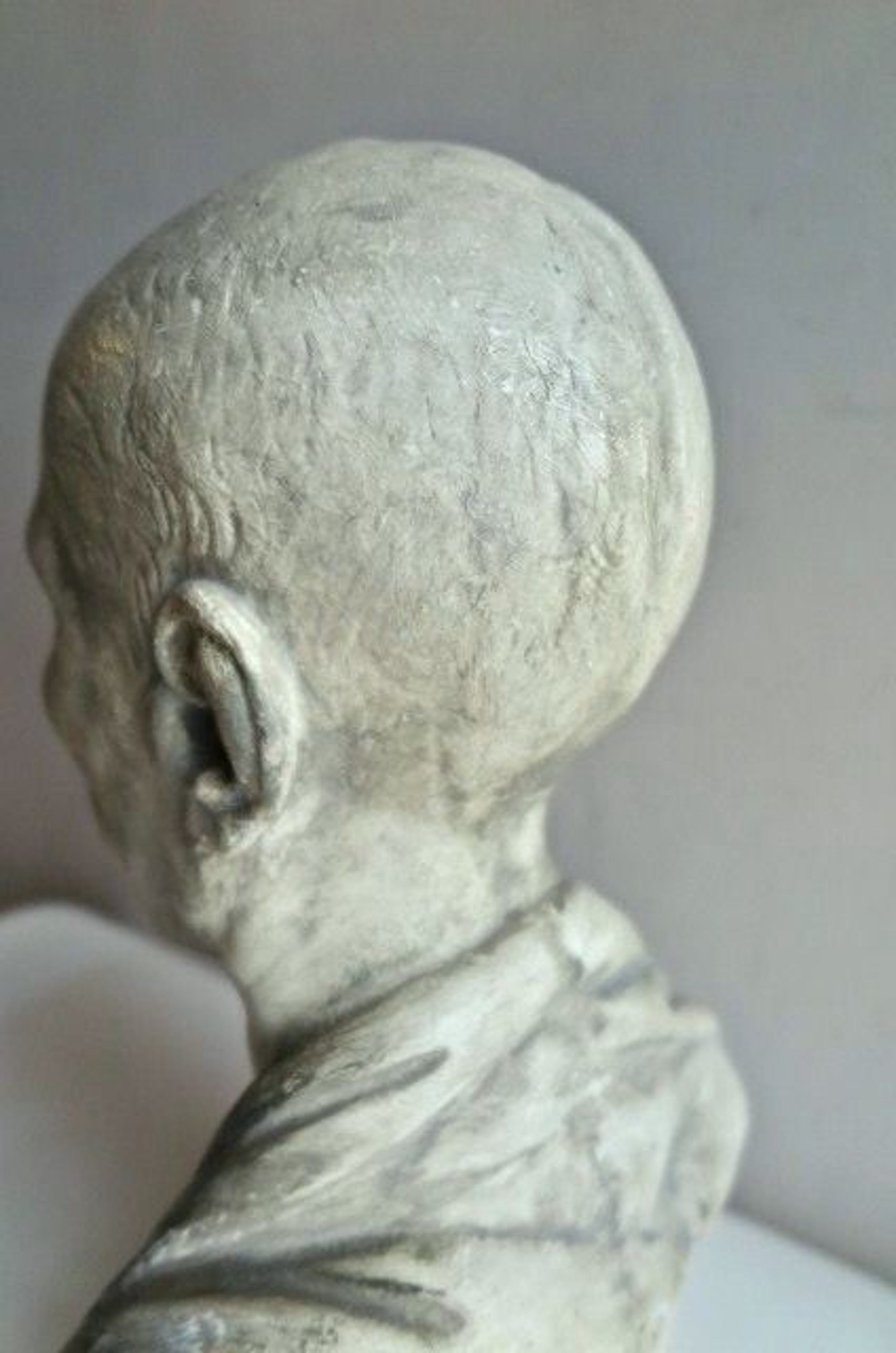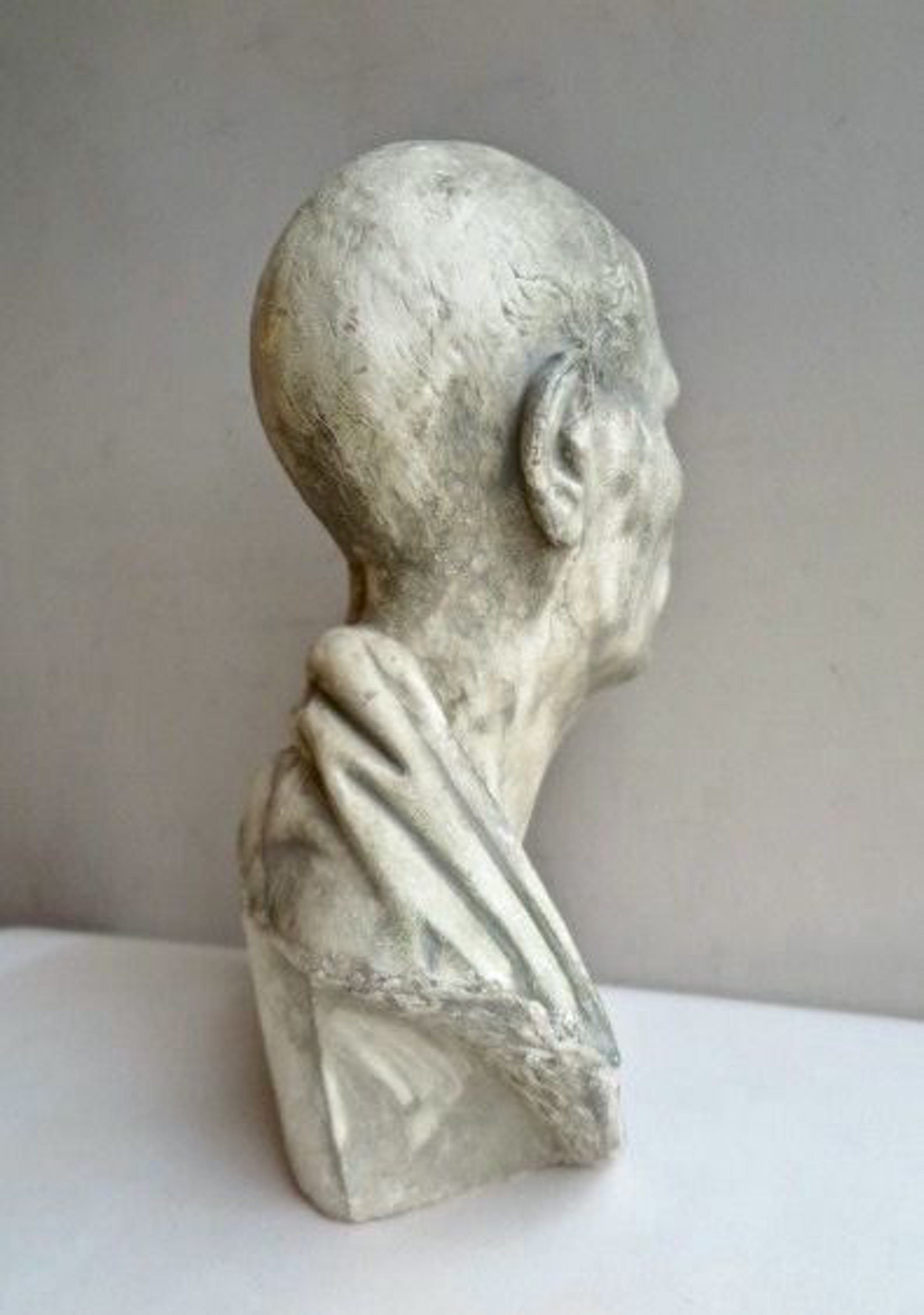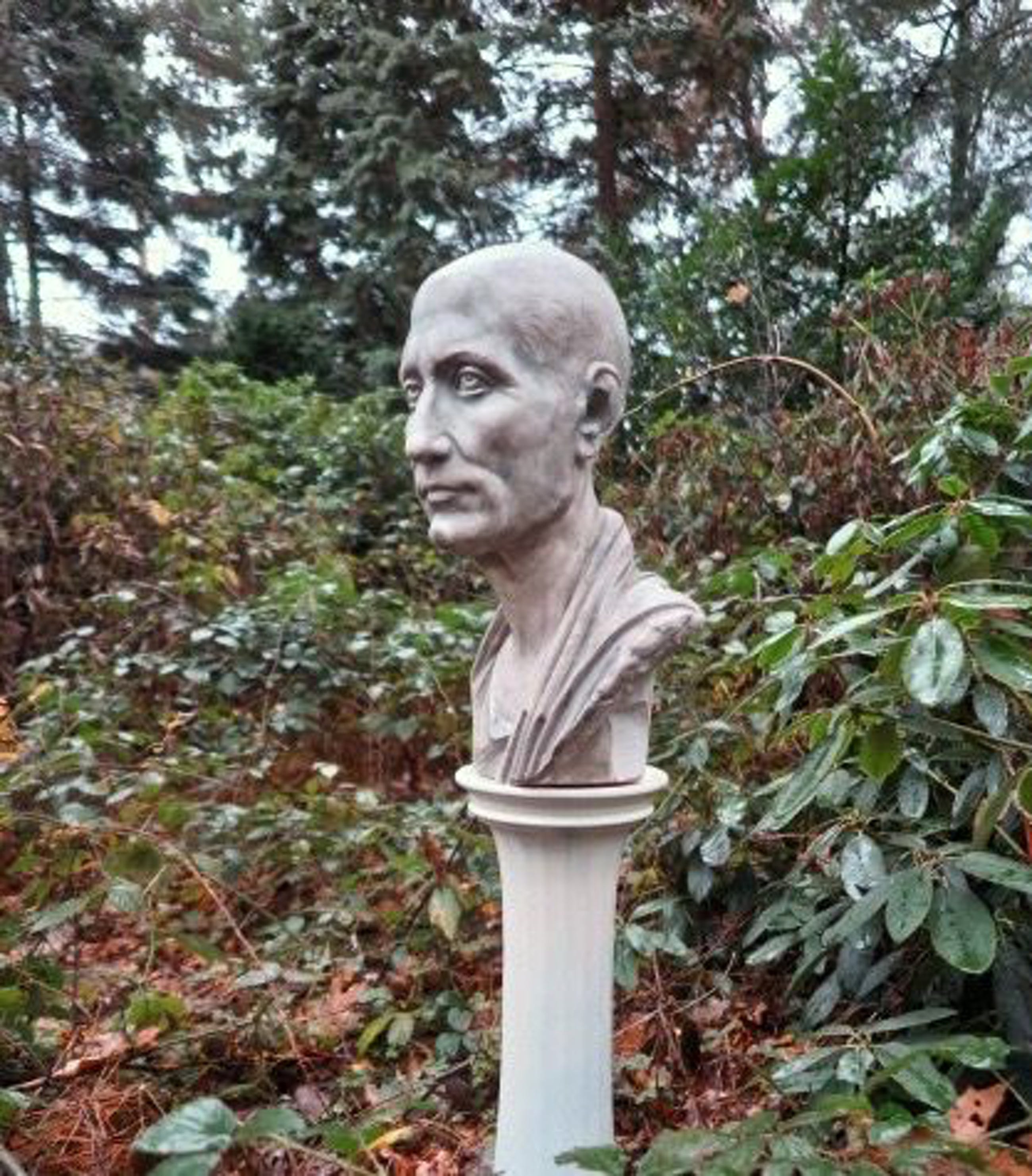 Expressieve fraaie buste van de Romeinse keizer Julius Caesar. Bijzonder werk van de beeldhouwer Hans Sailer. Uit één stuk, zie onderzijde. Achterop gesigneerd met zijn logo (zeilschip). Verder gemerkt met M109.