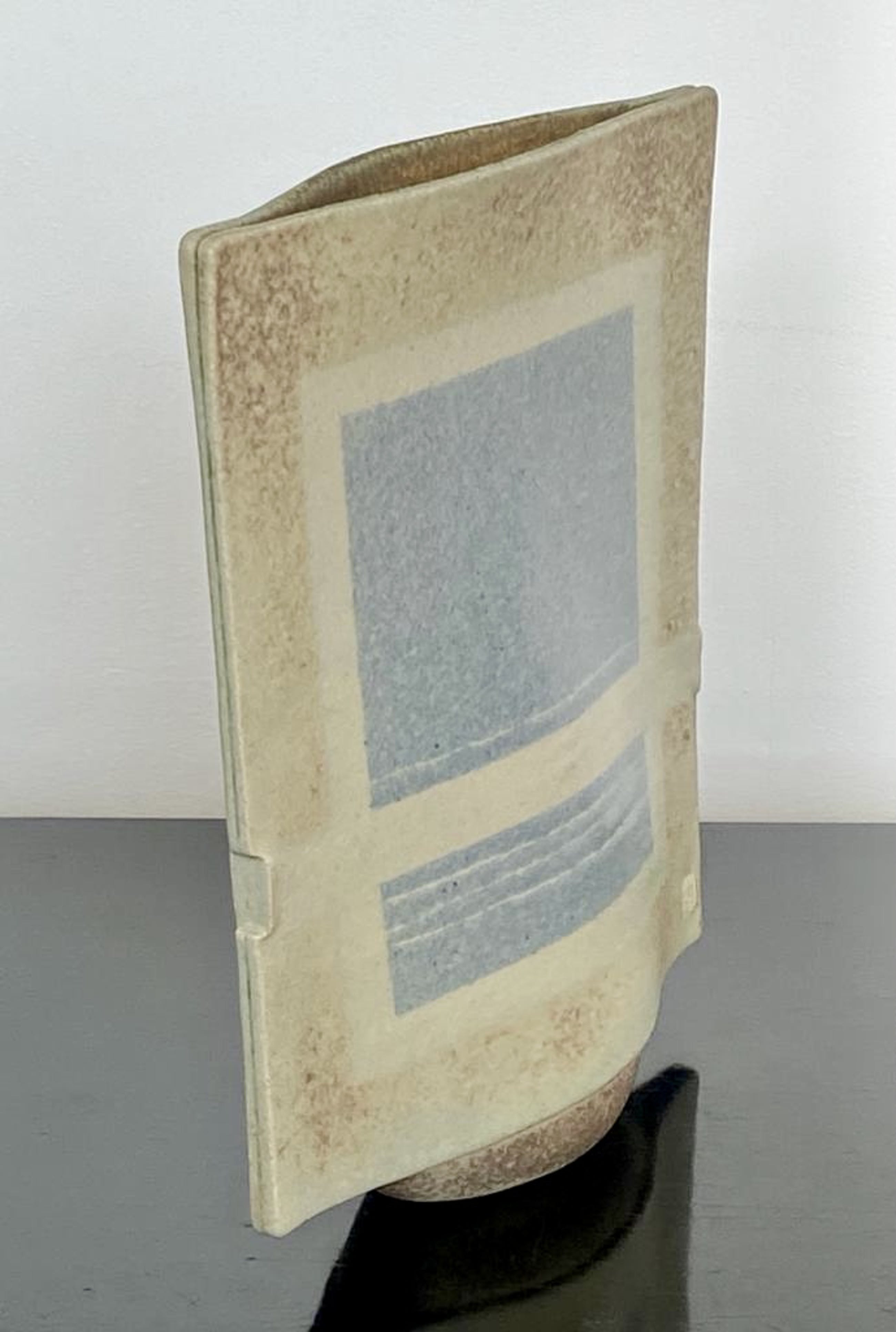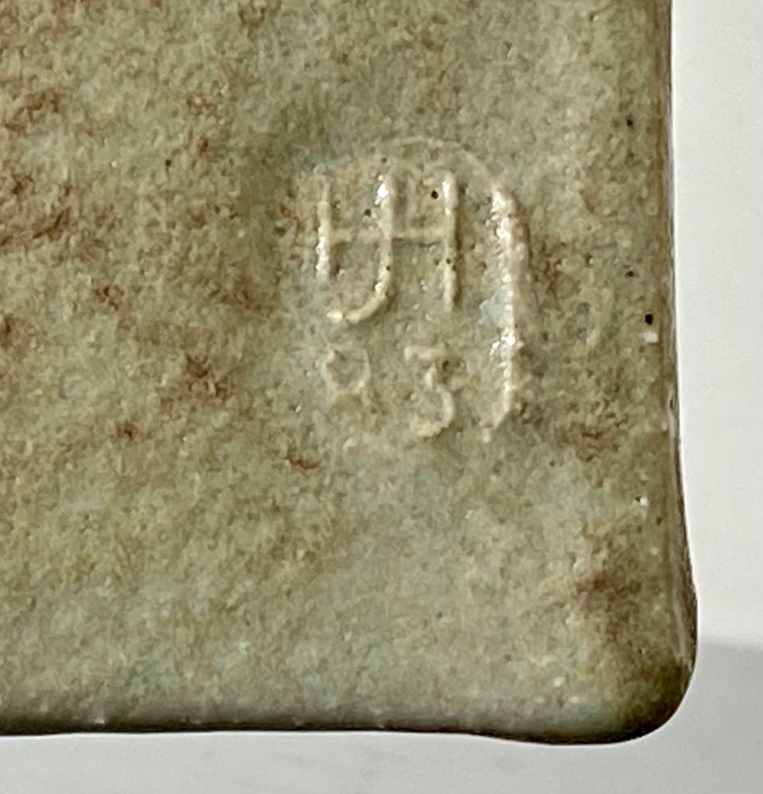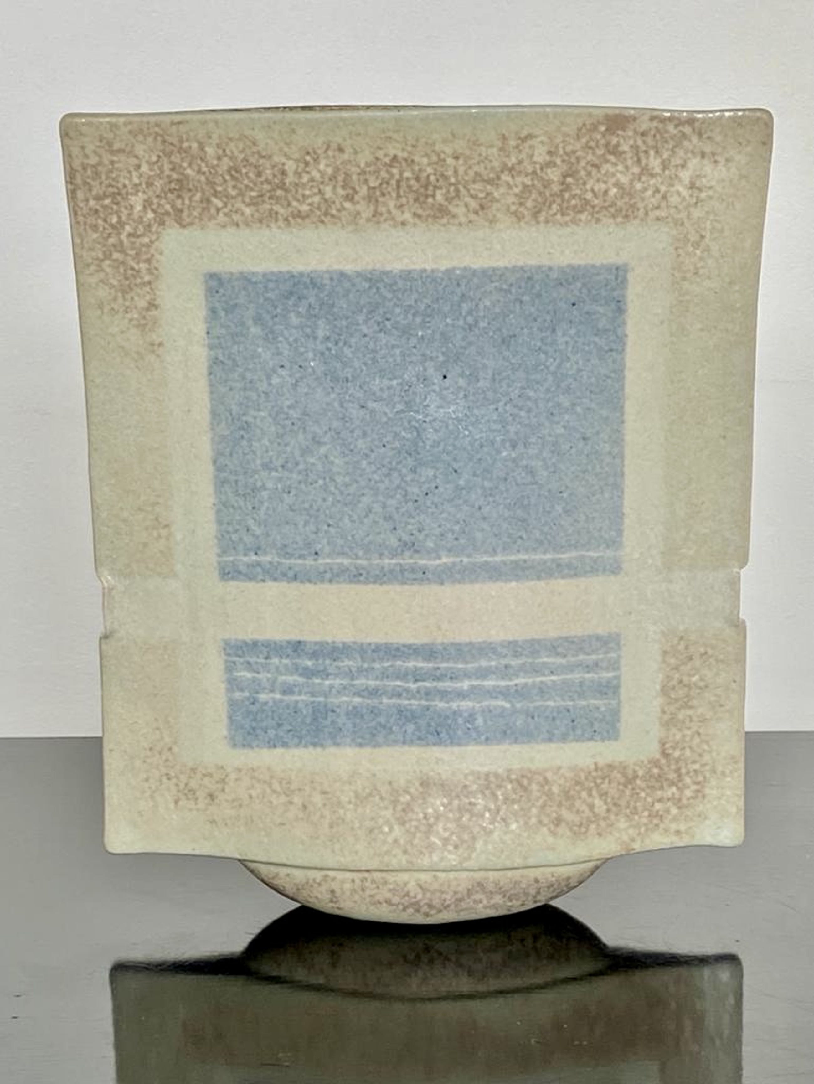 Bijzonder object van Hans de Jong. Begin jaren tachtig vervaardigde hij vazen, kommen en schalen met decoraties geïnspireerd op zijn woonomgeving. De Beemster. De vaas is vervaardigd in steengoed. Met een zacht glanzende glazuur. De dieptemaat komt overeen met de onderzijde. bovenzijde is smaller. 4 cm. Het werk van Hans de Jong is vertegenwoordigd in o,a Het Kunstmuseum Den Haag, Stedelijk Museum Amsterdam en Boijmans van Beuningen.