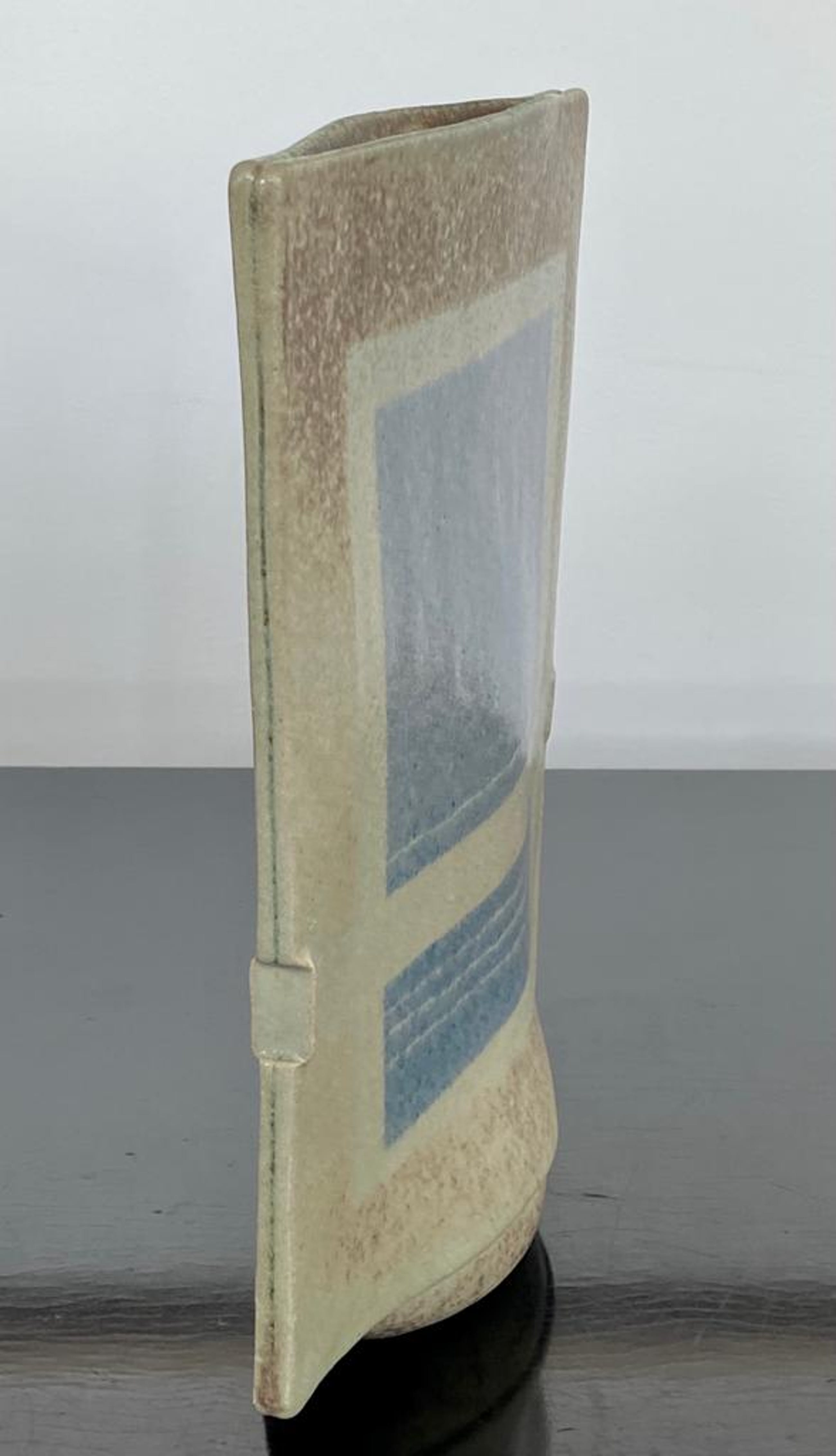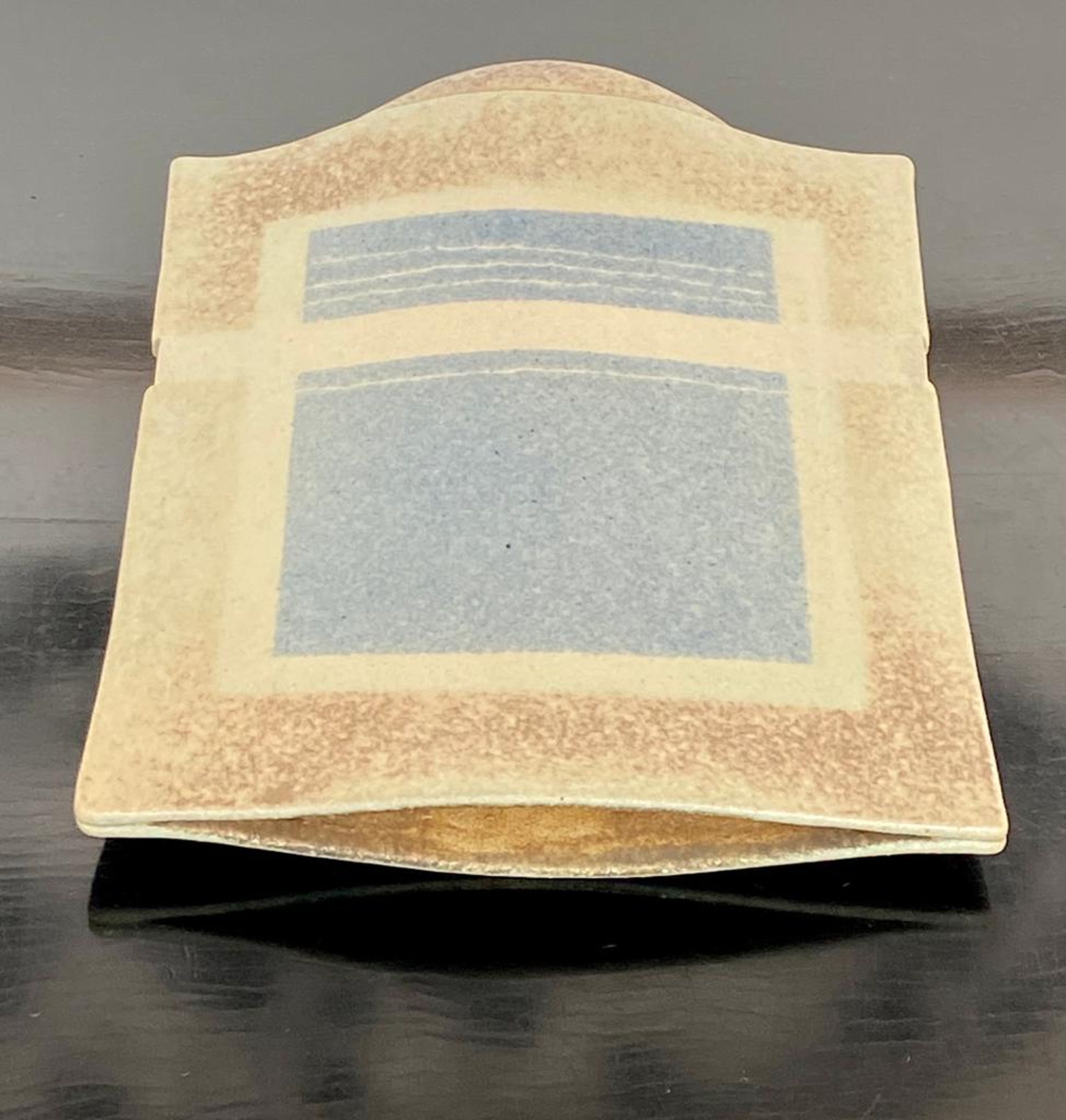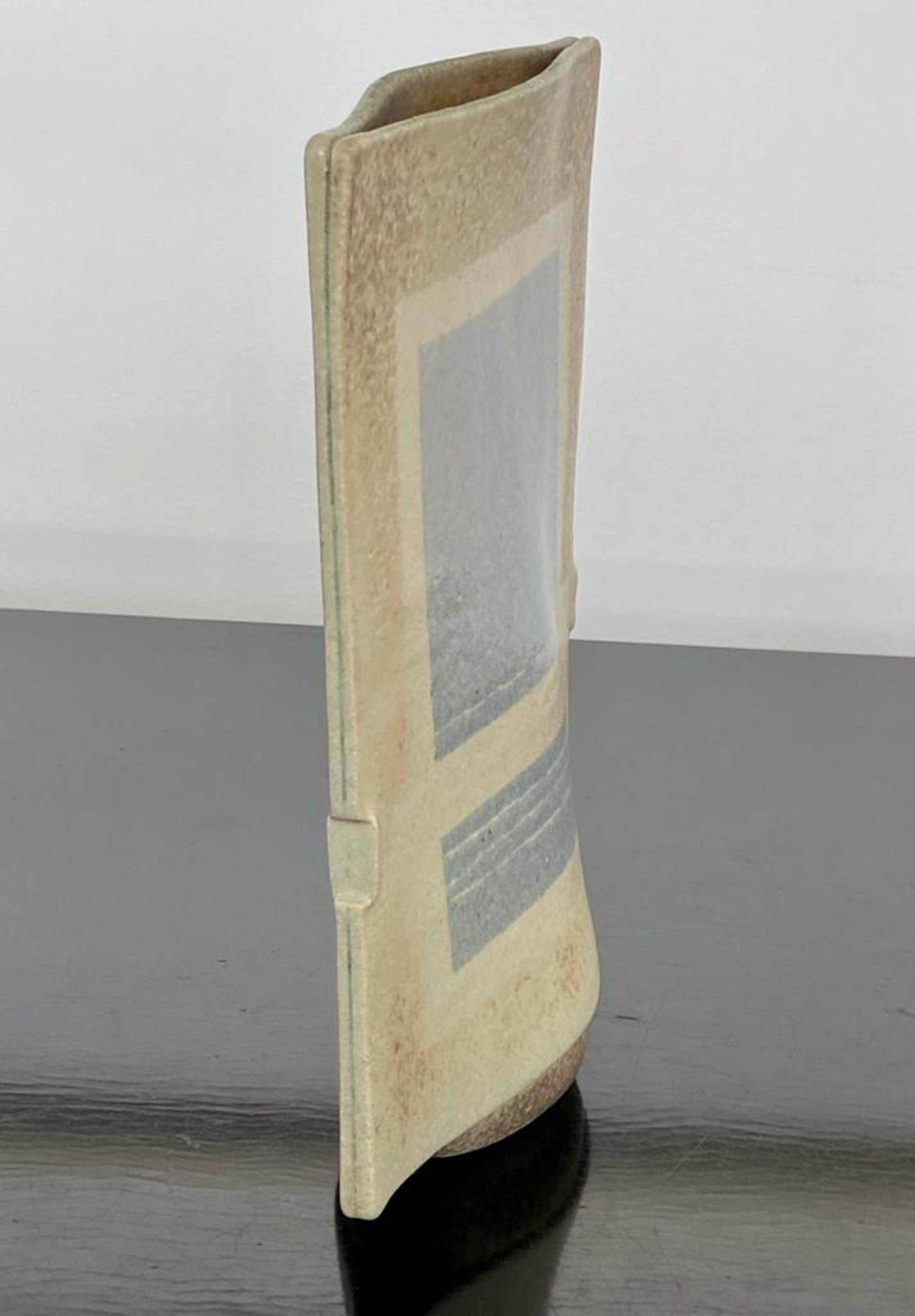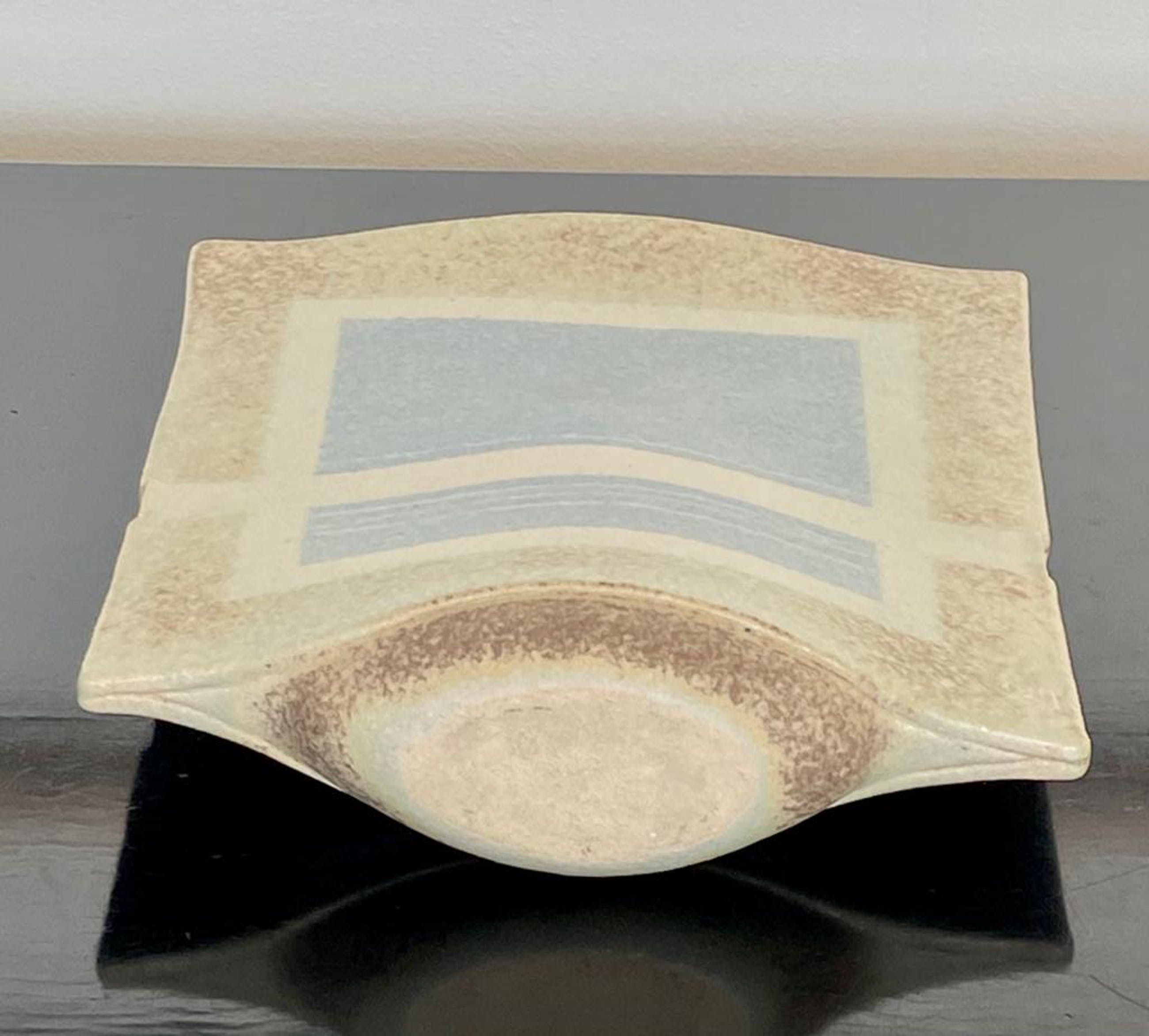 Bijzonder object van Hans de Jong. Begin jaren tachtig vervaardigde hij vazen, kommen en schalen met decoraties geïnspireerd op zijn woonomgeving. De Beemster. De vaas is vervaardigd in steengoed. Met een zacht glanzende glazuur. De dieptemaat komt overeen met de onderzijde. bovenzijde is smaller. 4 cm. Het werk van Hans de Jong is vertegenwoordigd in o,a Het Kunstmuseum Den Haag, Stedelijk Museum Amsterdam en Boijmans van Beuningen.