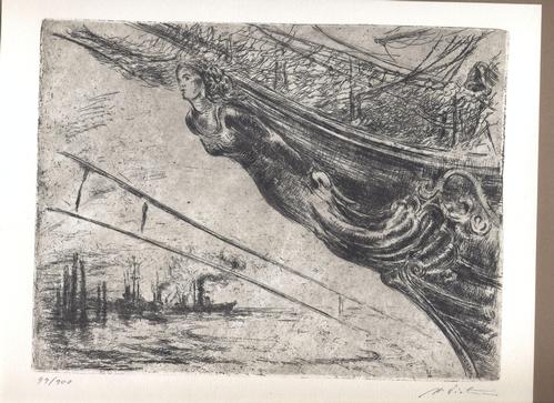 Gallionsfigur - Radierung - 1971 - Blatt 22 x 29 cm, Bild 19 x 25 cm - signiert- sehr gut erhalten - auf dünnem braunen Karton am oberen Rand aufgezogen - Versand: Deutschland Euro 7,00 – Ausland Vereinbarung