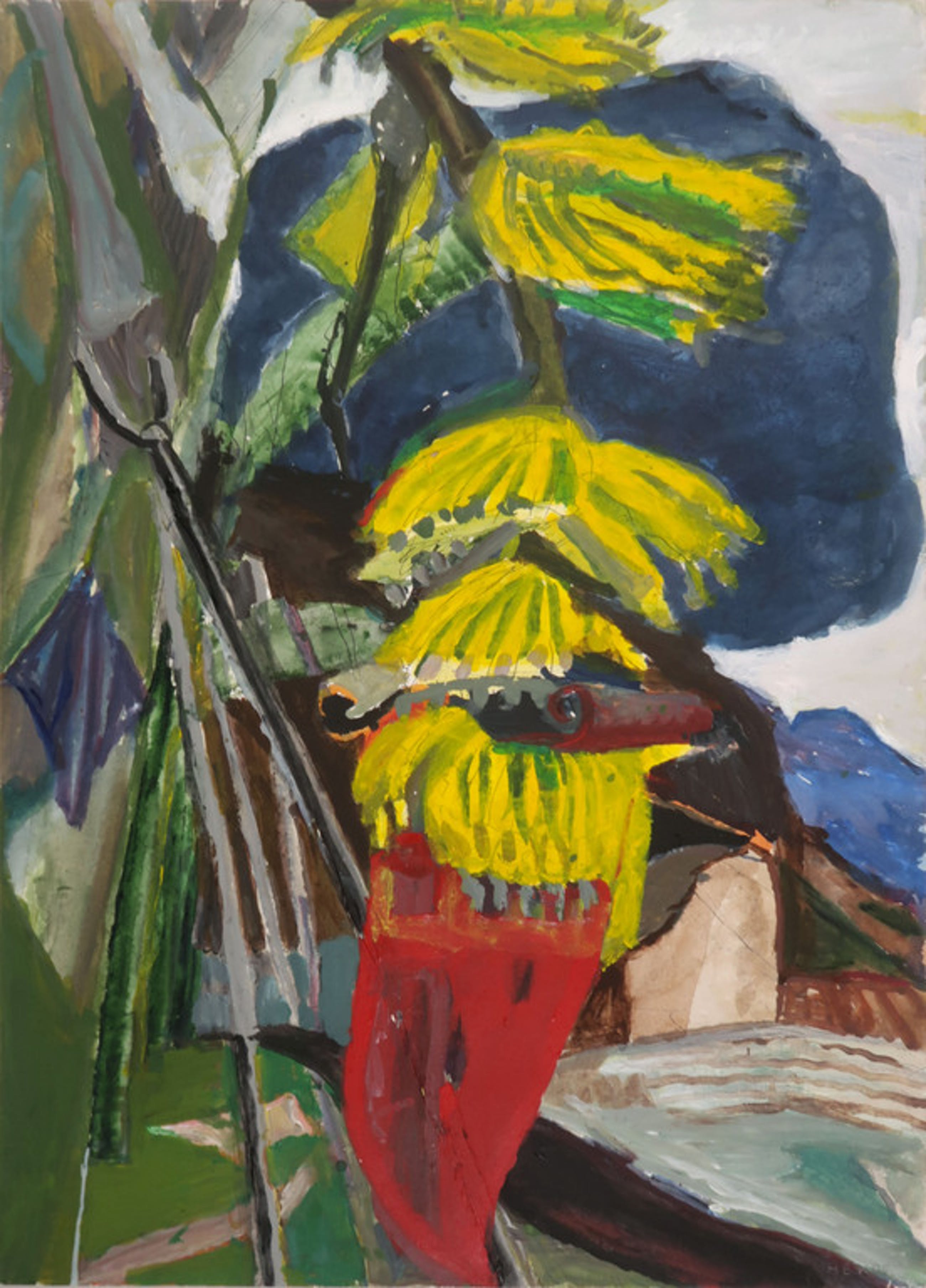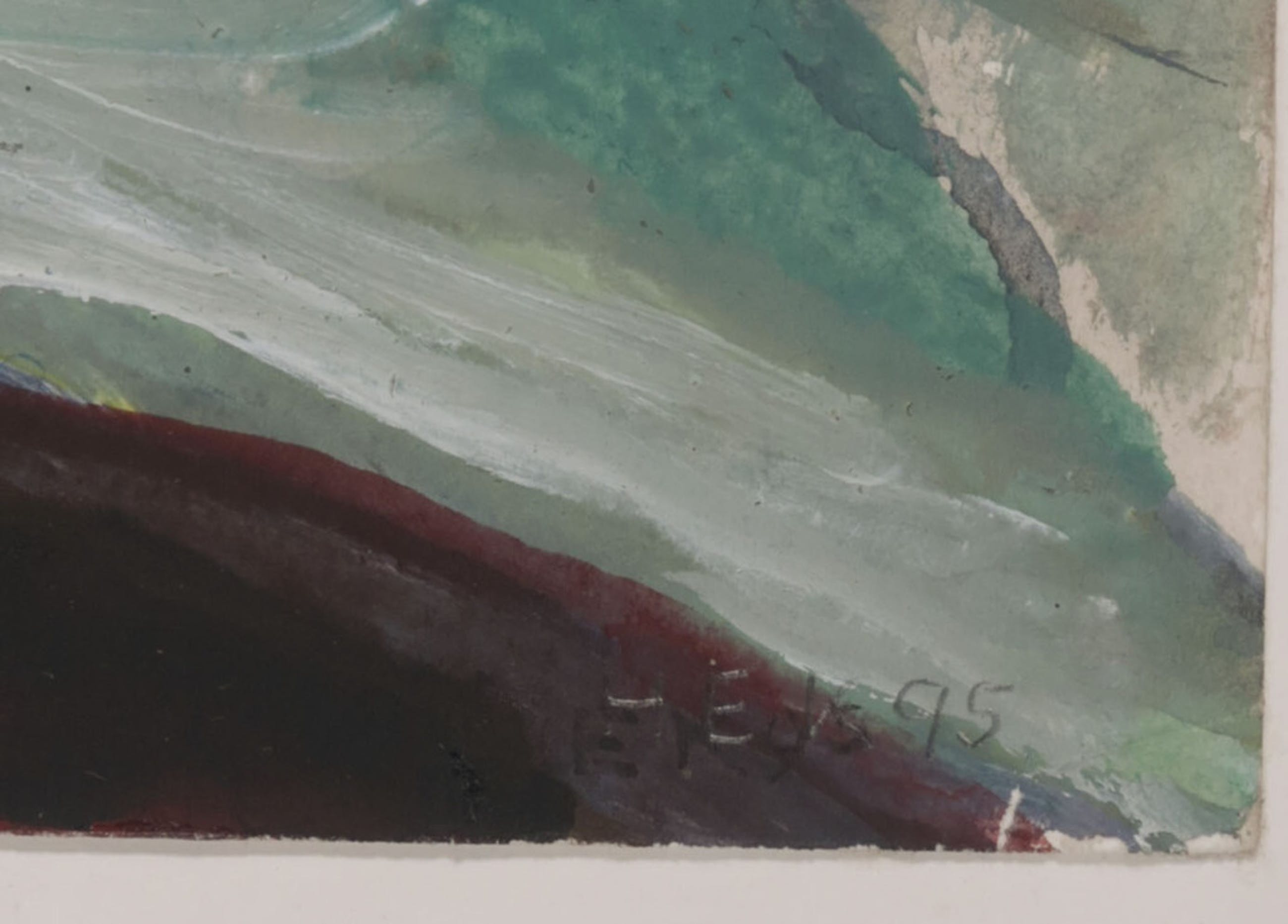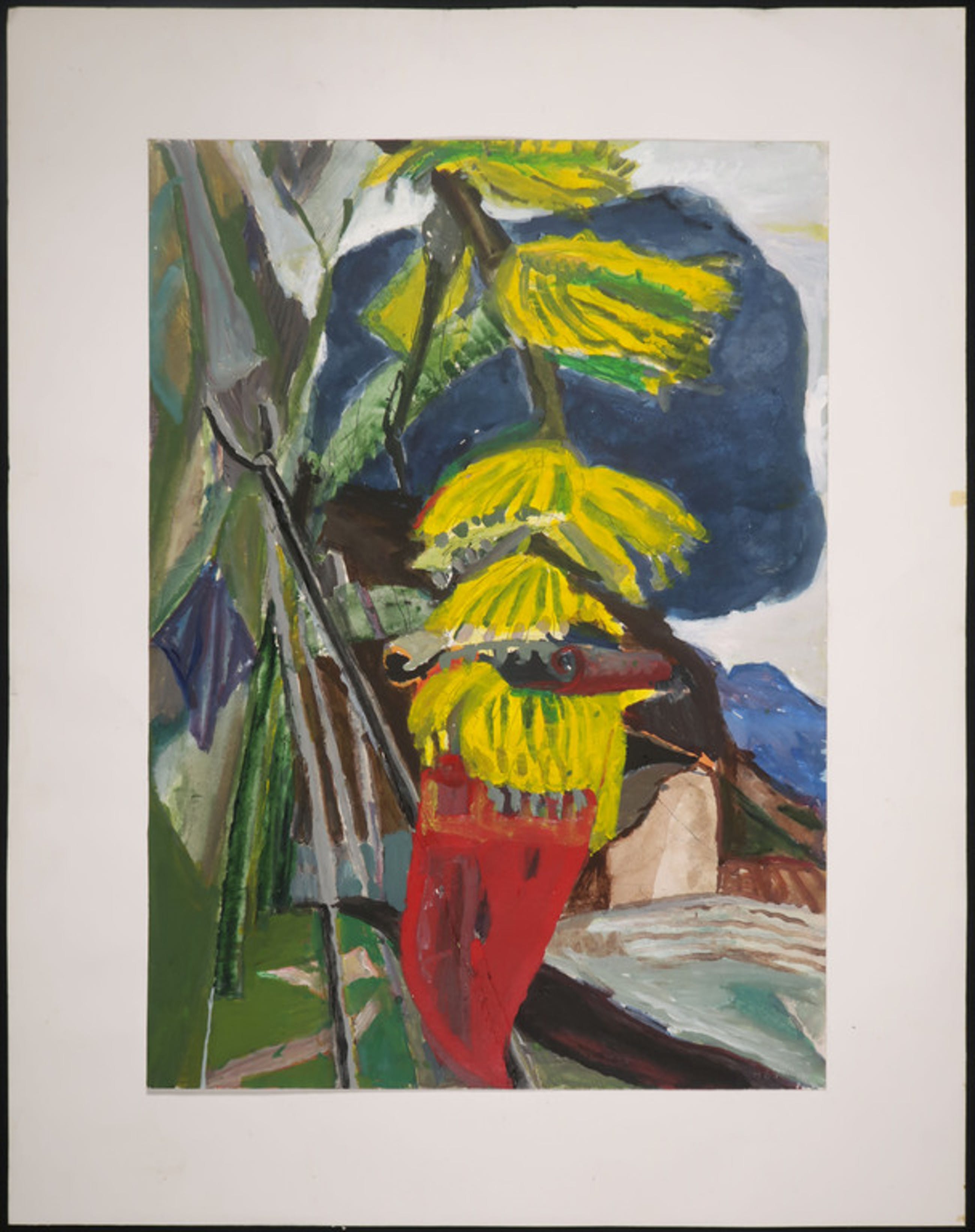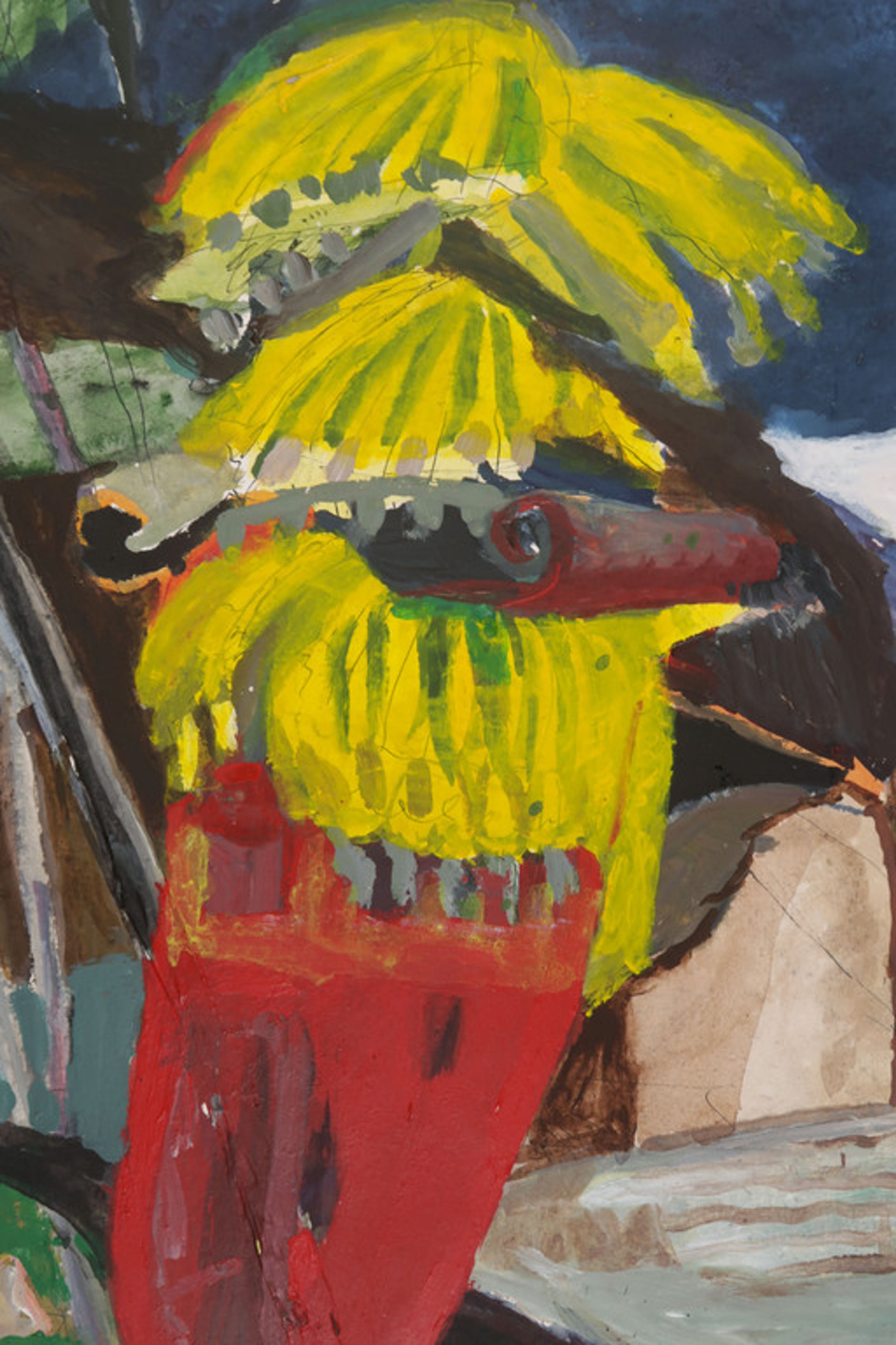 Materiaal: Gemengde techniek, o.a. Acryl, Gouache en Pen op papier, op onderblad geplakt.