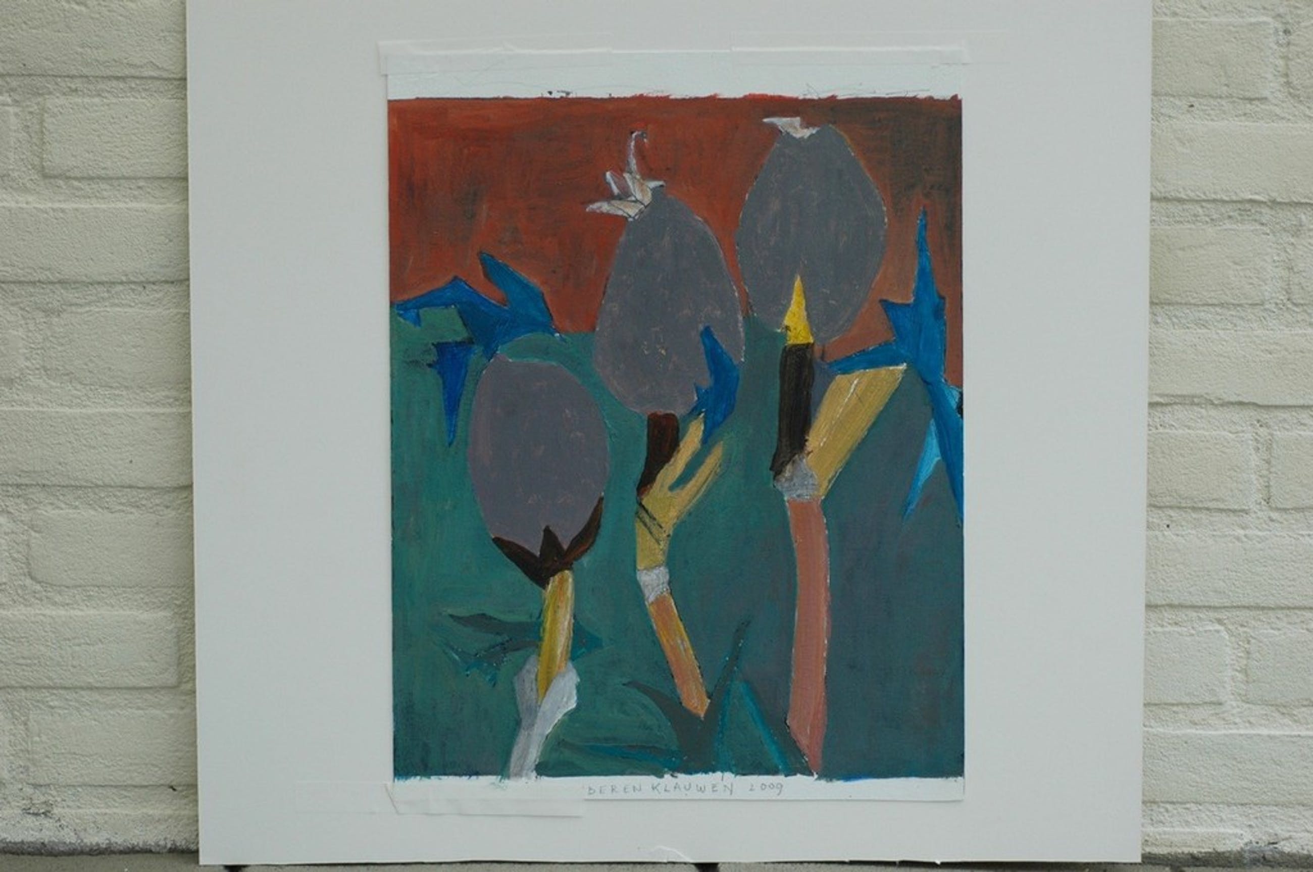 Gouache - in prima conditie (het werk is eerder onder passe-partout getoond geweest)