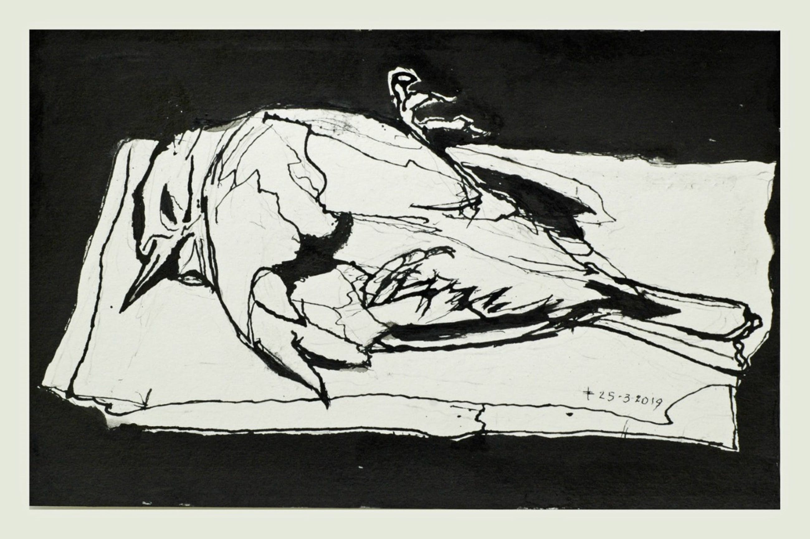 techniek: pen-penseeltekening in o. indische inkt. afmetingen: 22 x 35 cm. gesigneerd achterzijde: HEK 2019 hansebelingkoningklooit.today