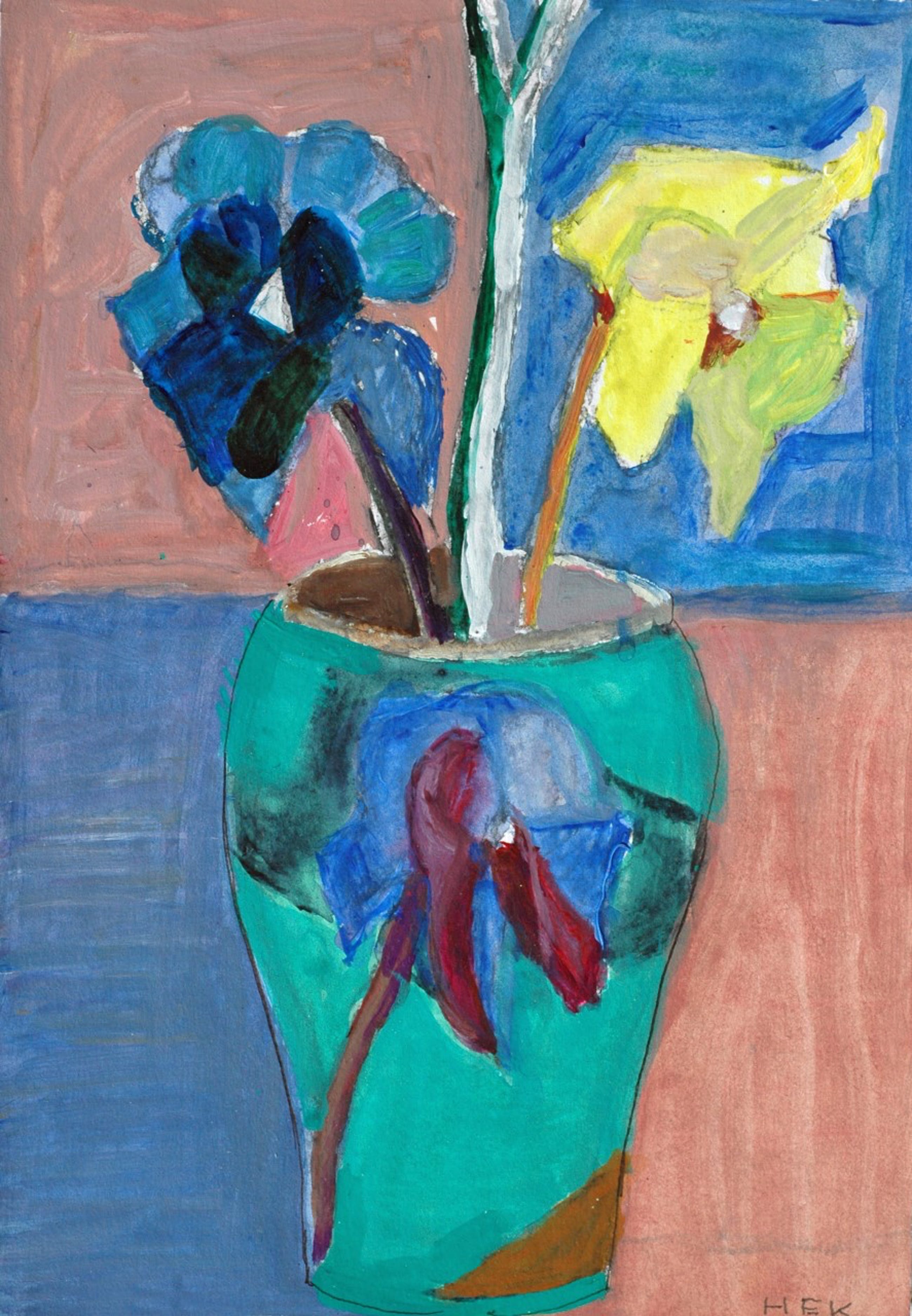 titel: violen techniek: ingetekende schildering op papier afmetingen: 30 x 21 cm. R.o. gesigneerd: HEK http://www.hansebelingkoningklooit.today