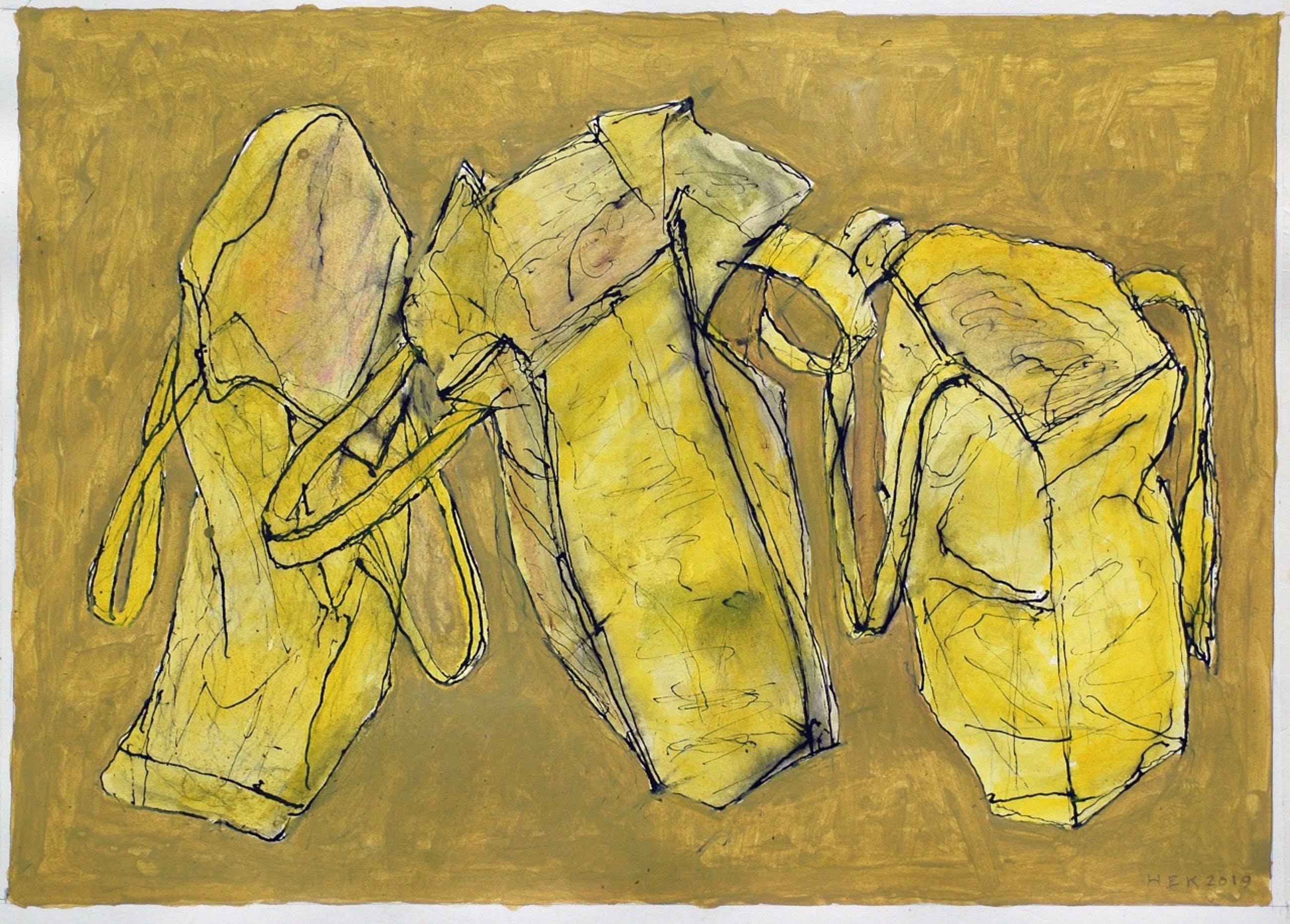 zonder titel techniek: ingeschilderde pentekening (oost indische inkt en acrylverf) potlood gesigneerd r.o.: HEK 2019