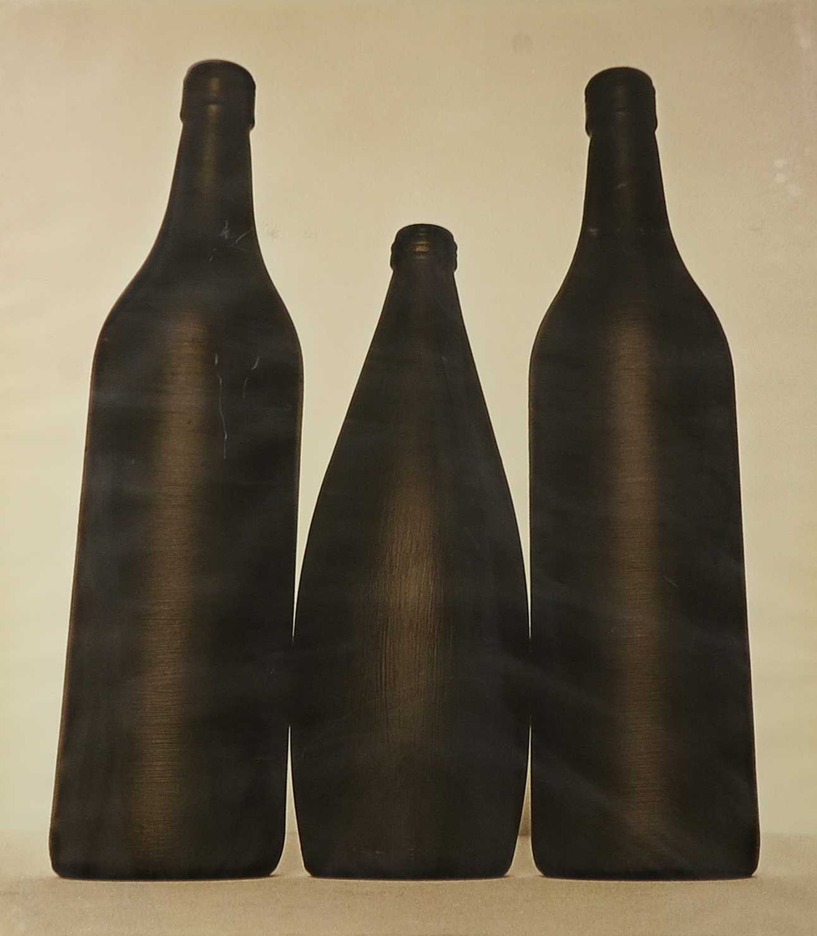| De foto is verkleurd/verschoten, waardoor het geheel er wat vlekkerig uitziet. Het plexiglas heeft enkele krassen/beschadigingen. Lichte golving van het blad. | |