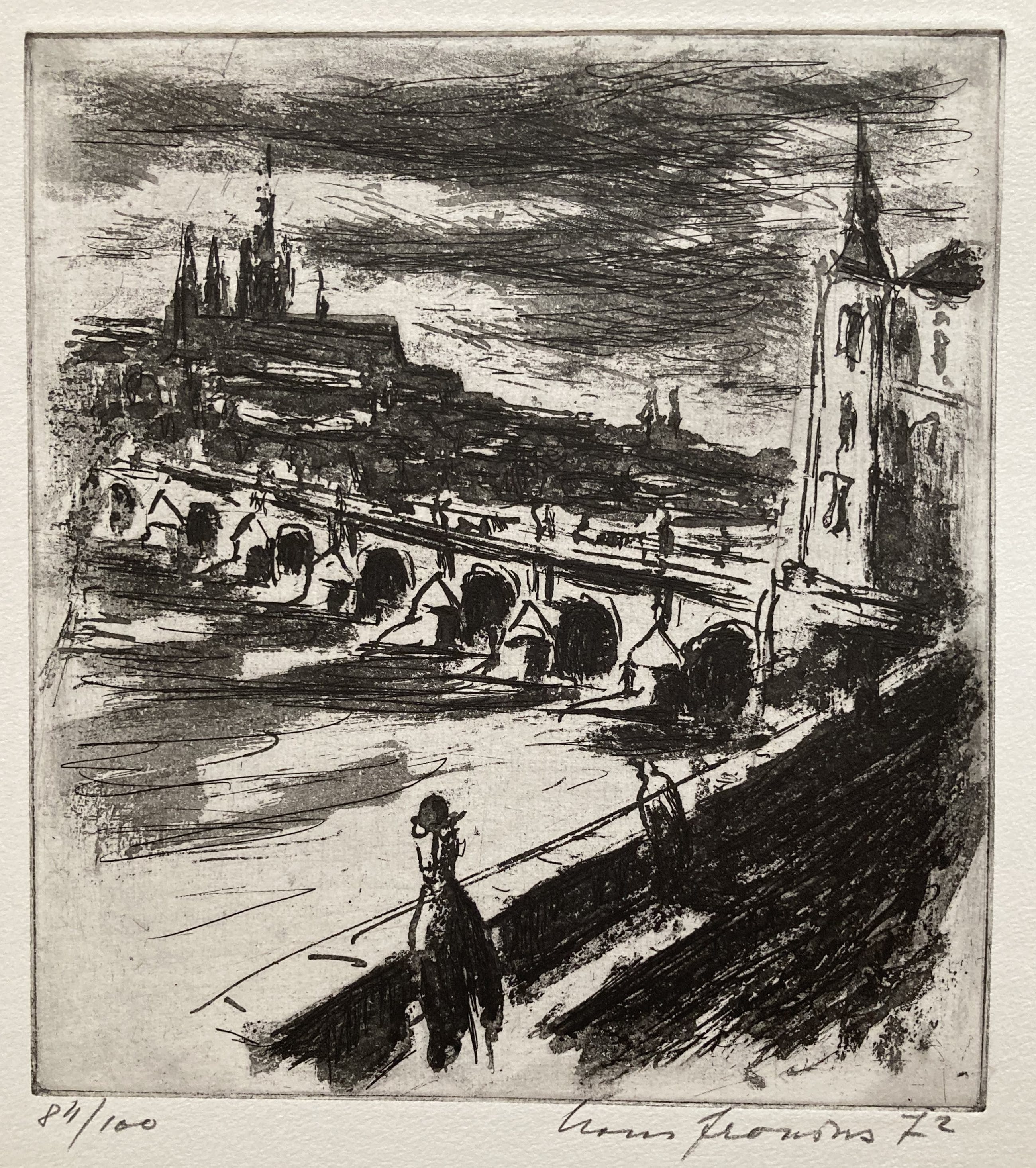 Gesigneerde en genummerde originele ets - een belangrijk blad uit het late werk van de kunstenaar - het werk van Franz Kafka hield hem zijn hele leven bezig, uit een verzameling afbeeldingen die Fronius in slechts enkele dagen creëerde en die een soort essentie van zijn levenswerk vertegenwoordigen