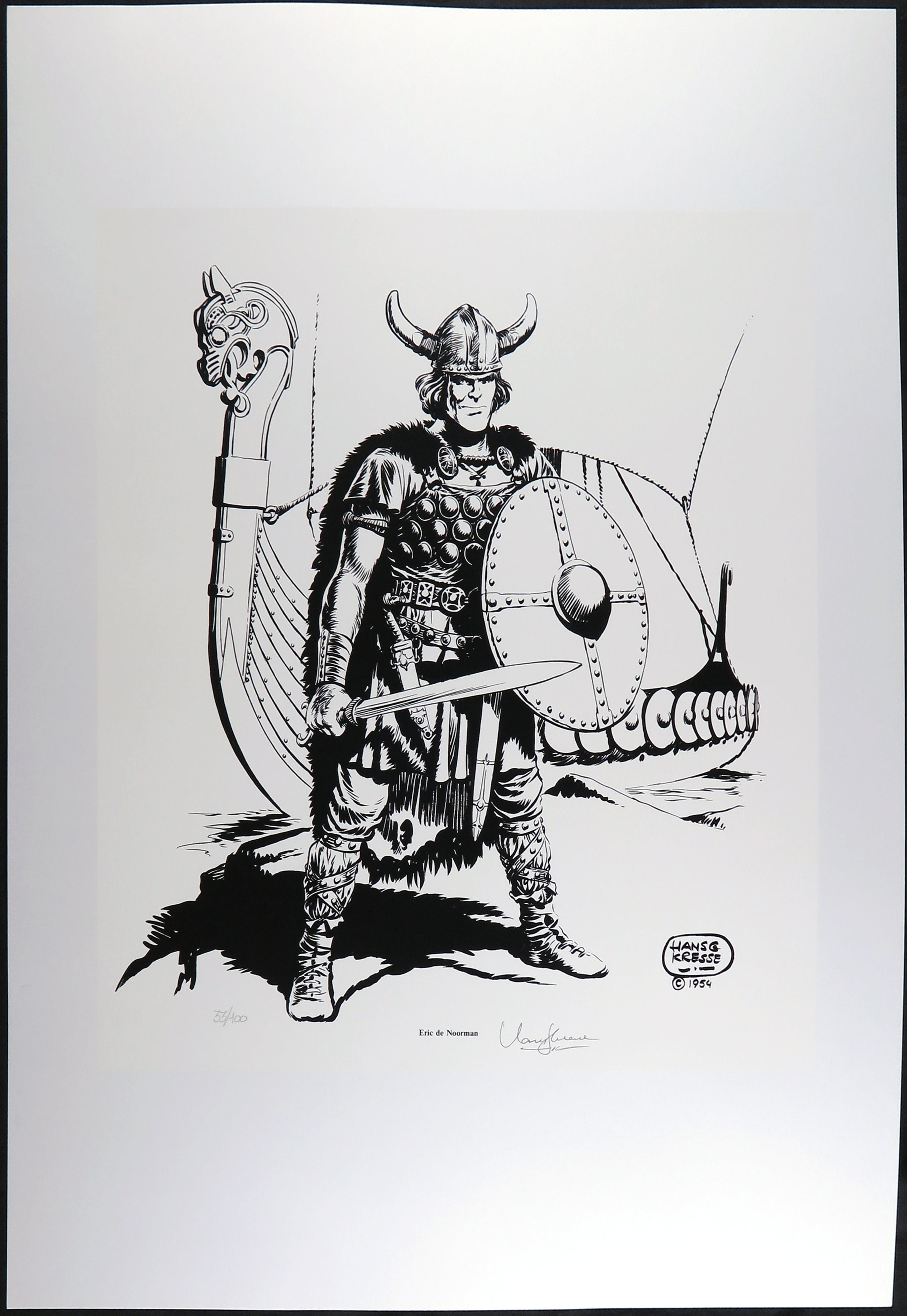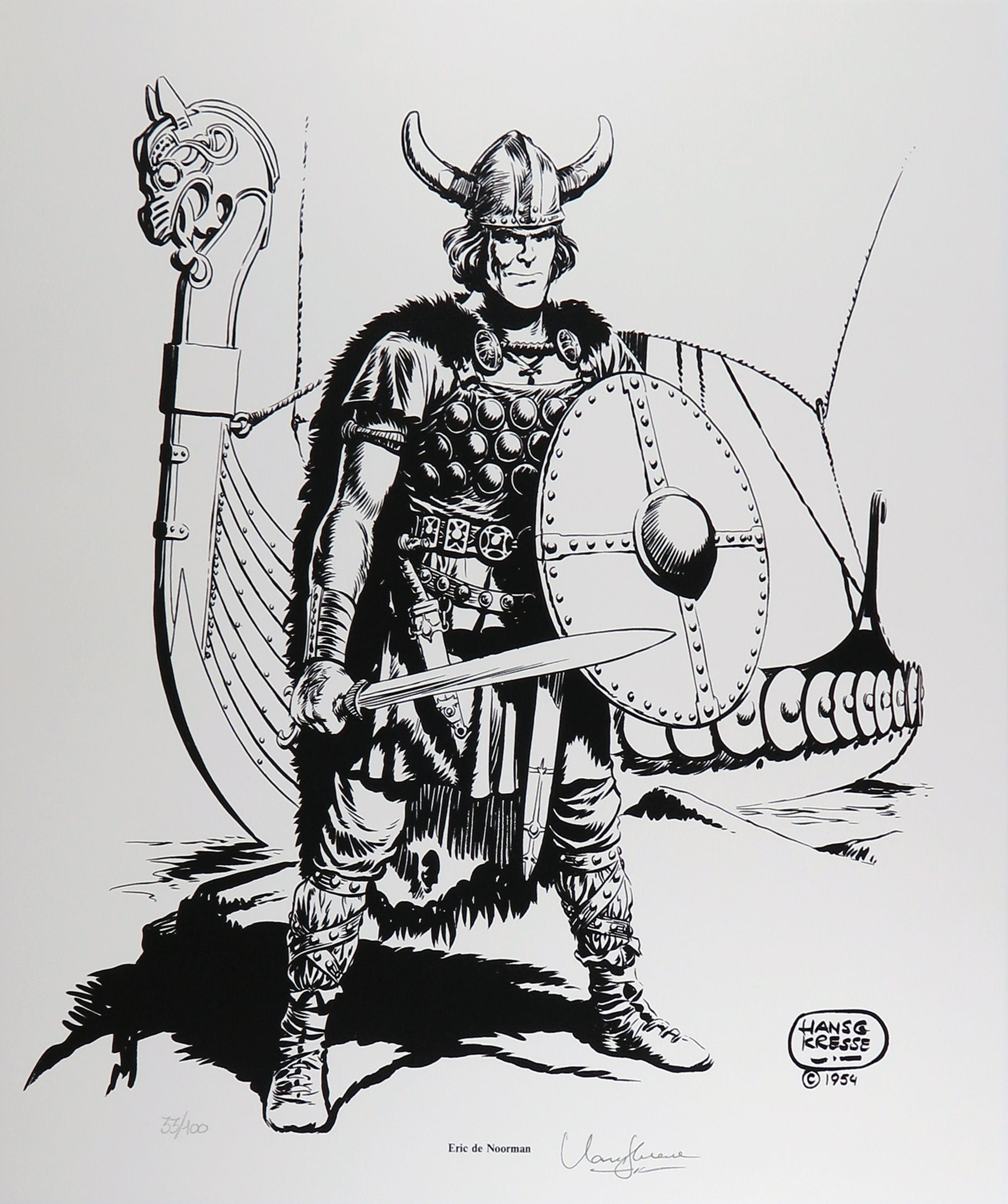 Deze zeefdruk is een hoogwaardige reproductie van bestaande originele pentekening, speciaal vervaardigd voor de uitgave van een portfolio van Hans Georg Kresse.