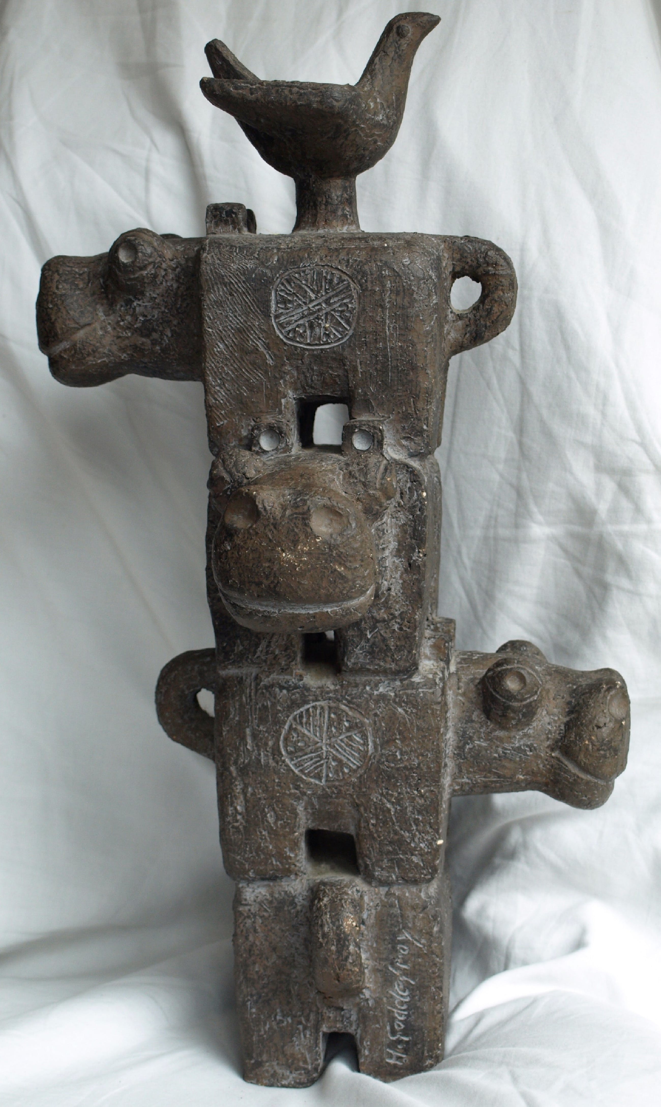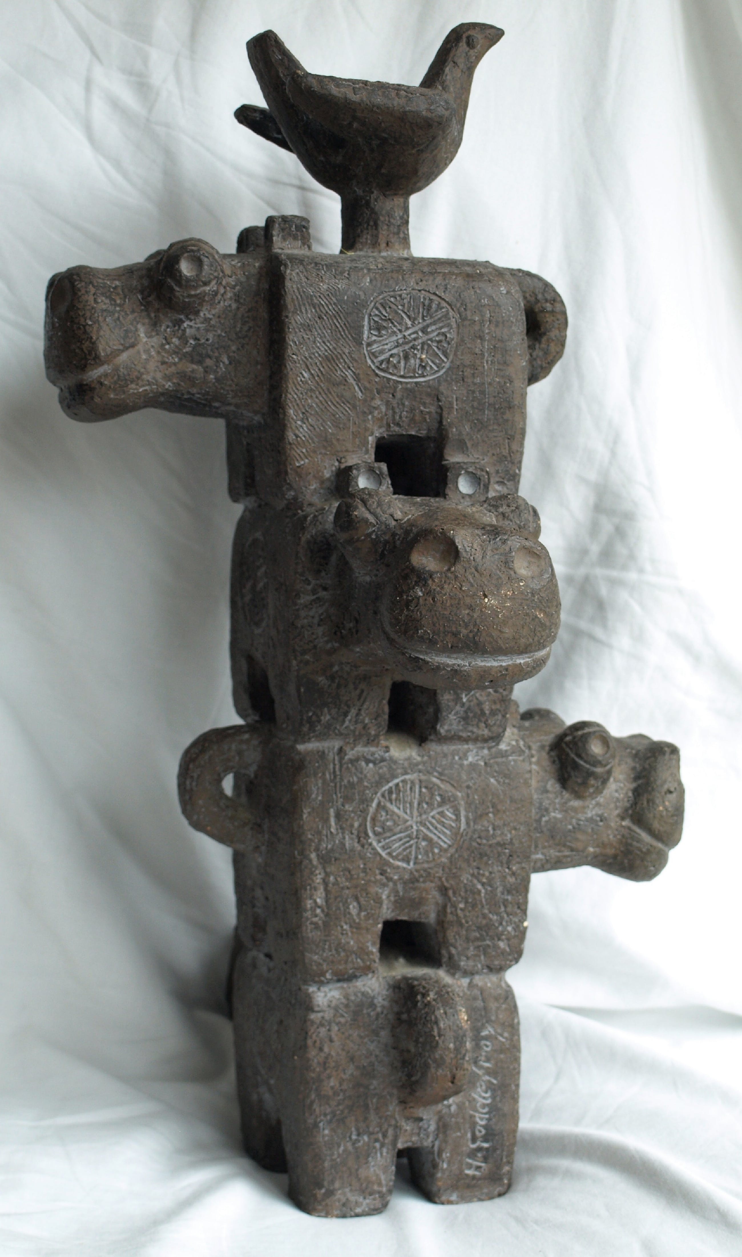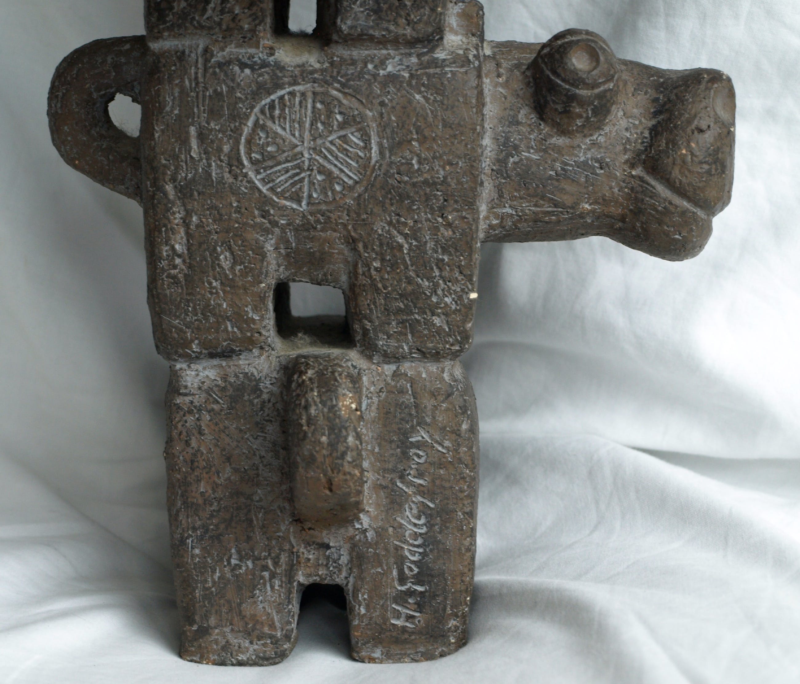Een gesigneerd beeld van chamotte van de Brabantse kunstenaar Hans Goddefroy (1933), getiteld: “Carnaval des animaux”.