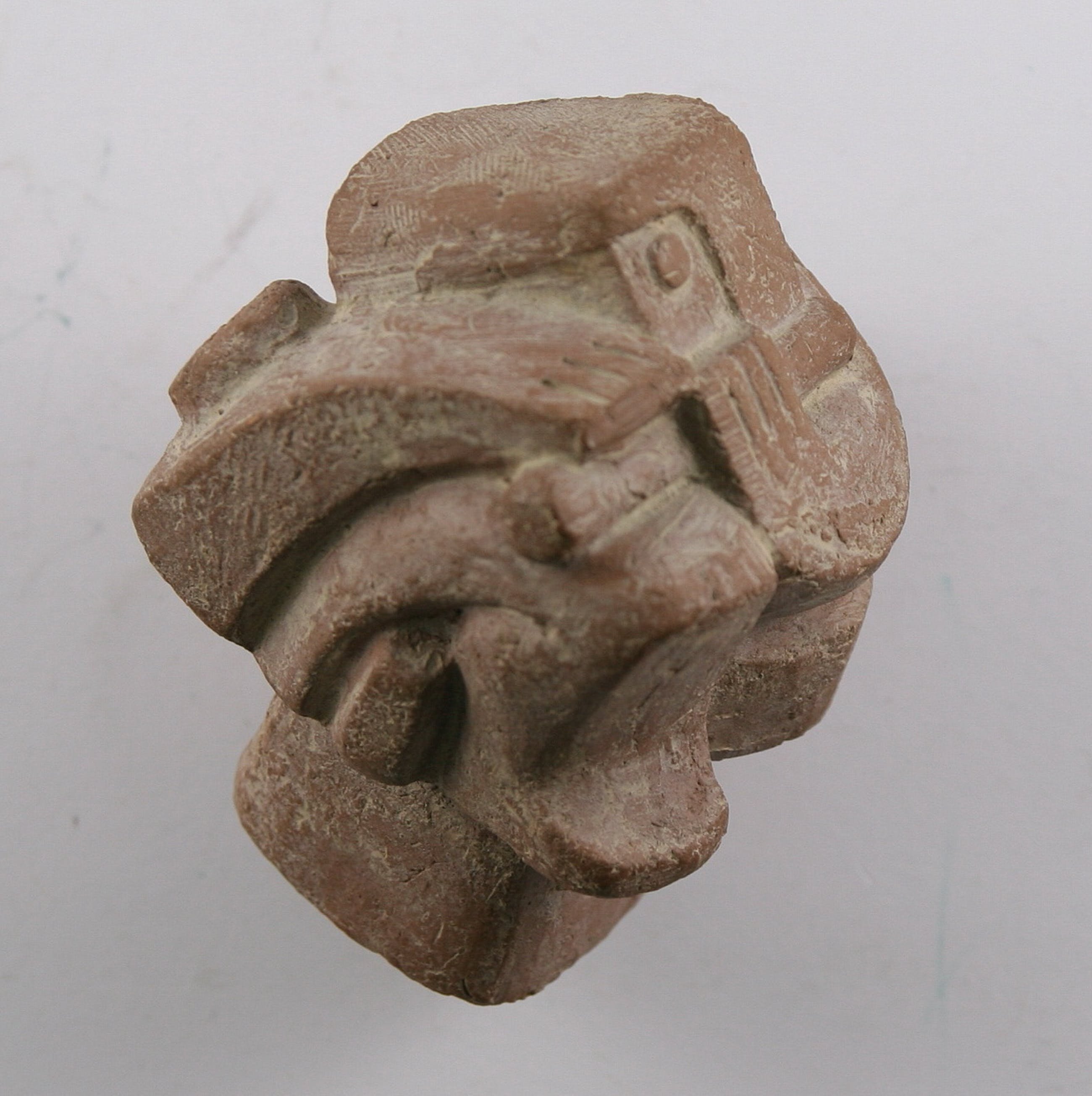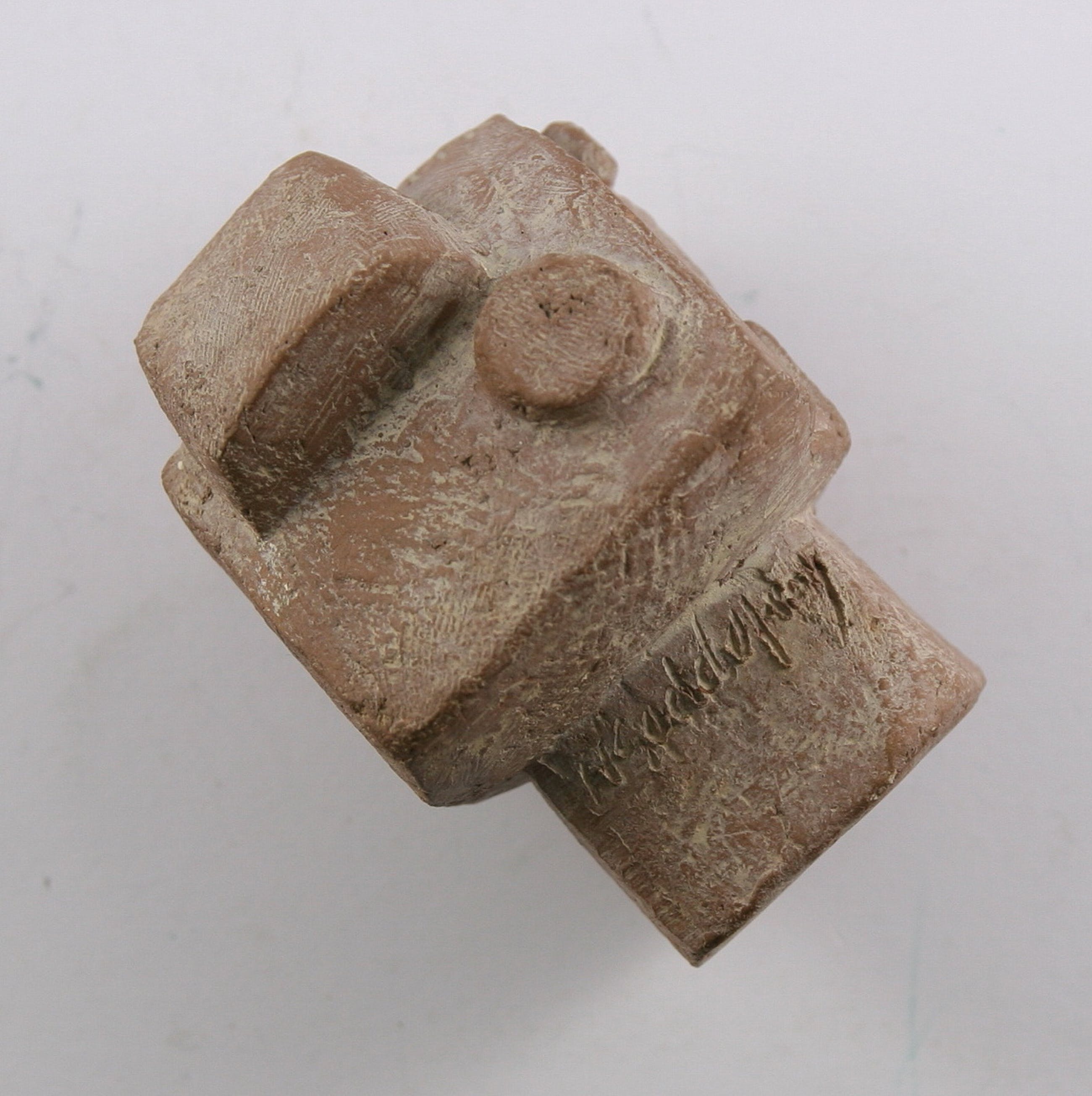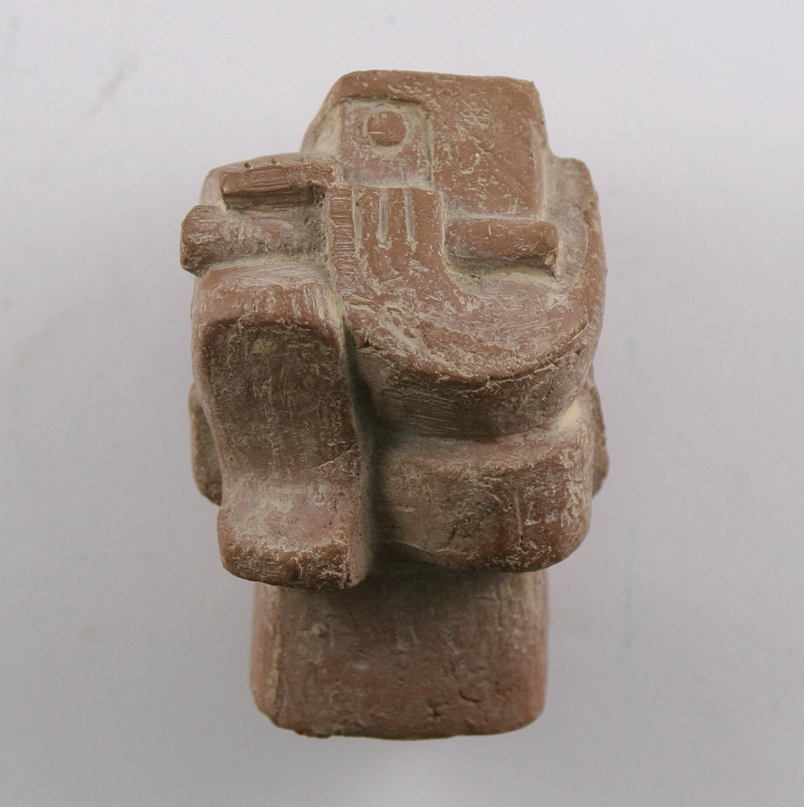 Fluitspeler in precolumbiaanse stijl. Gebakken klei. Gesigneerd: H. Goddefroy (achter op sokkel). Gaaf. Porto 7,25 euro (postpakketje)
