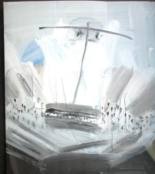 Mischtechnik/Collage auf Pappe