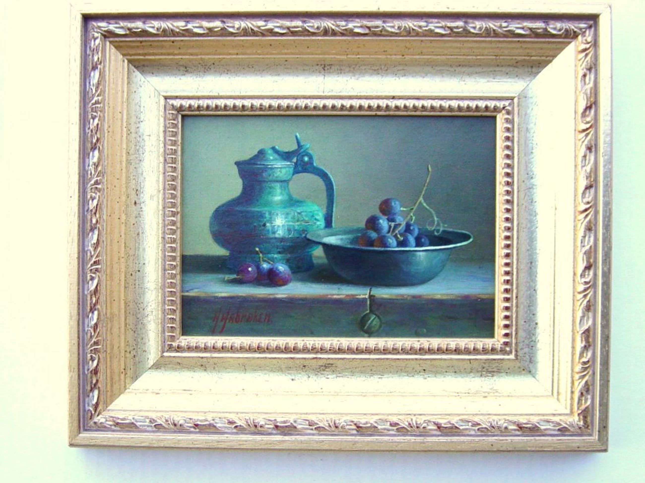 Recent olieverfschilderij van Habraken. Paneelmaat 13x18 cm. Totaal afmeting met lijst 25x30 cm. Het geheel is van topkwaliteit.
