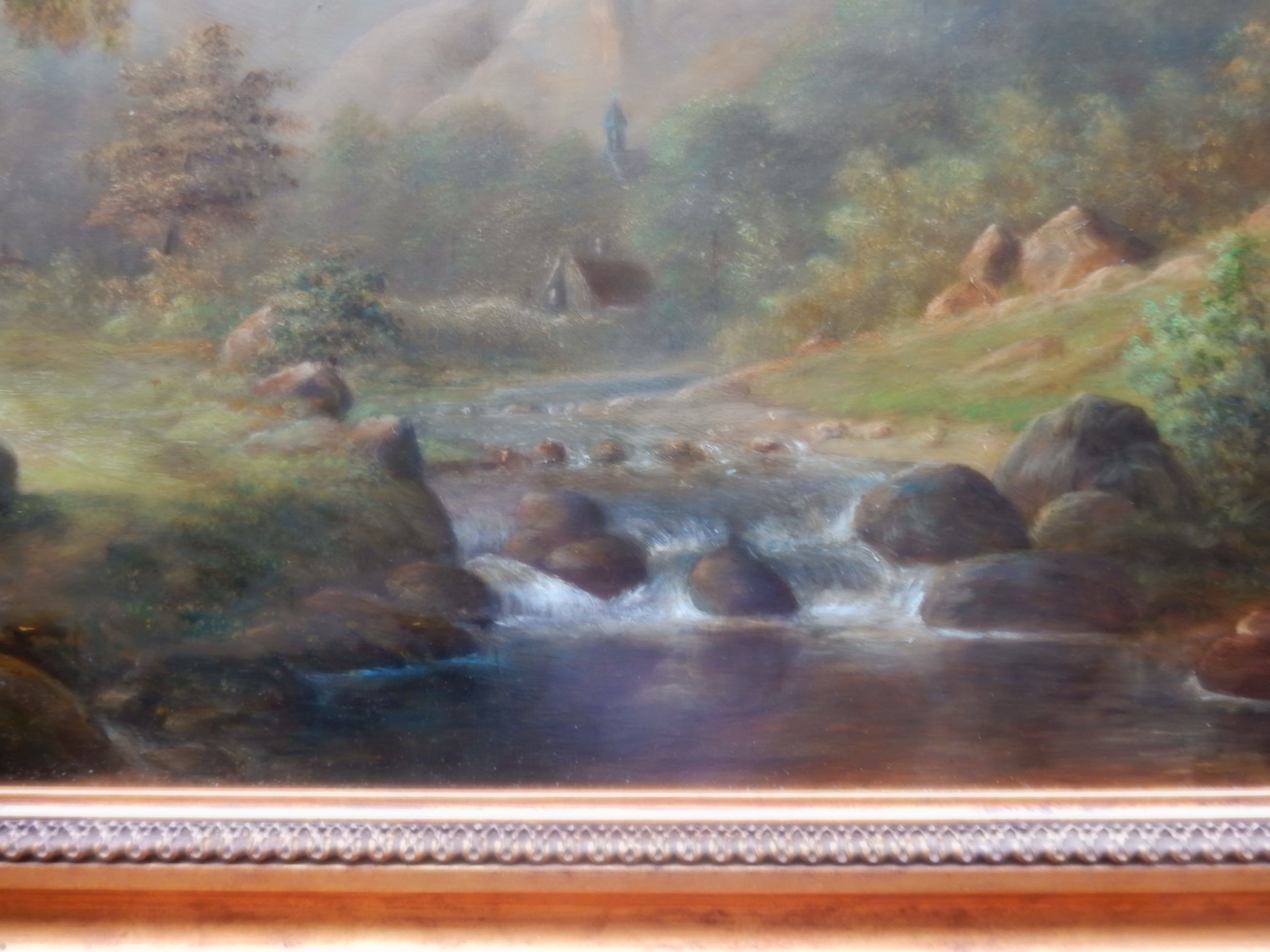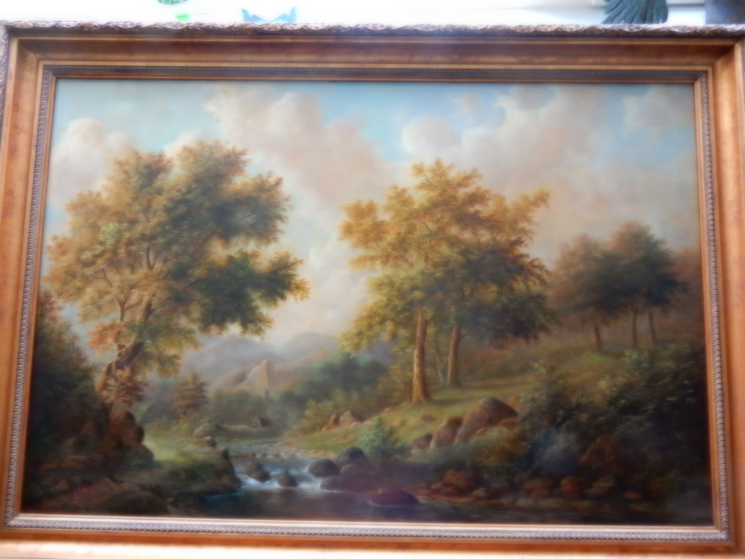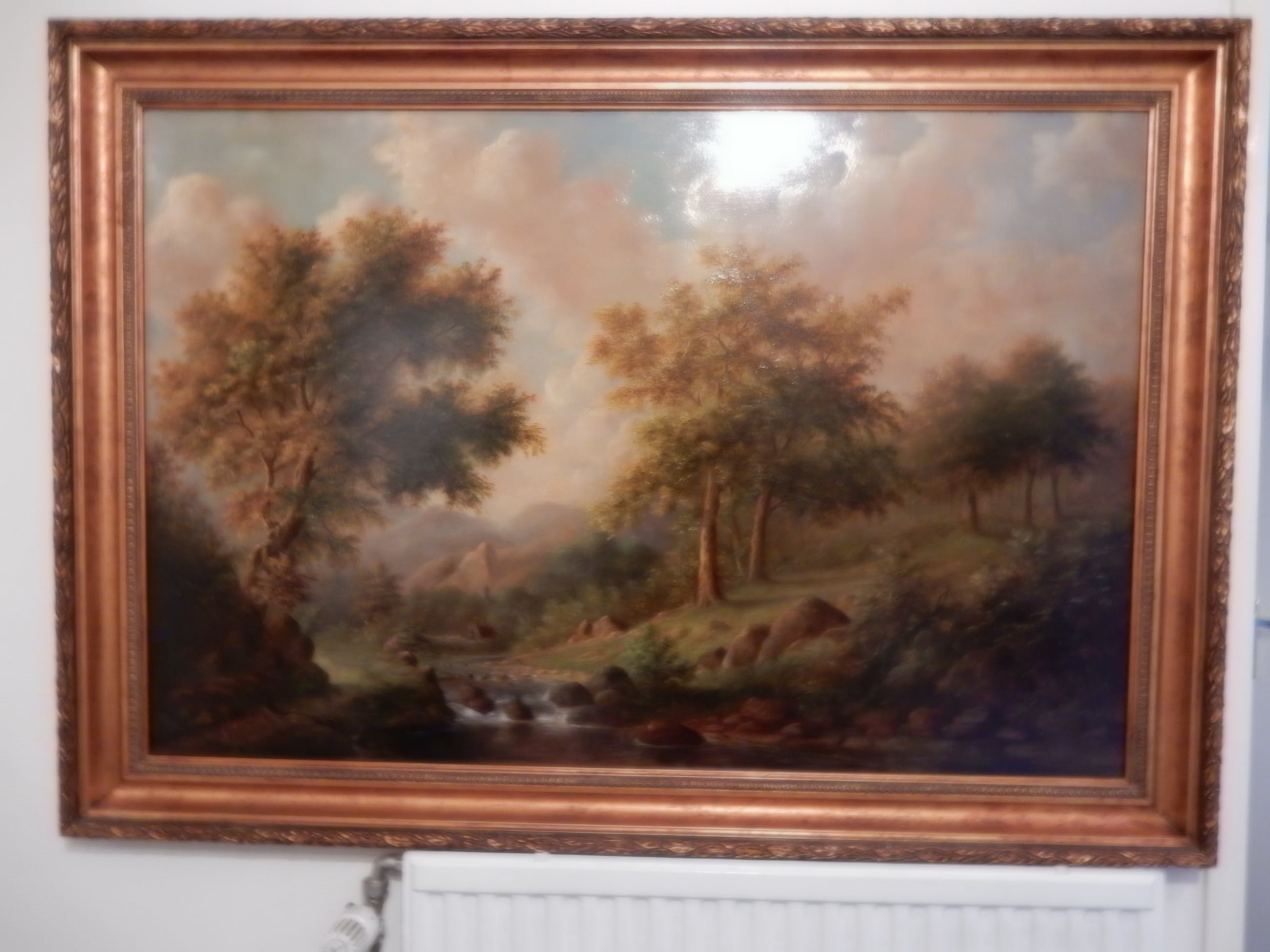 | Prachtig romantisch landschap.Zeer gedetailleerd , en tijdrovend geschilderd./ certificaat wordt bijgeleverd.hand gesigneerd, door schilder Prachtige lijst, in overeenstemming met het schilderij. / 138 cm. x 100 cm.De lijst is vermoedelijk los niet meer te koop, onder de 300,-Schilderij is uitgevoerd in : 120 cm. x 80 cm.Zeer geschikt voor grote ruimte, kantoor, ontvangst ruimte,monumentaal pand, gehuisvest door notaris, advocaat, ondernemer. | |