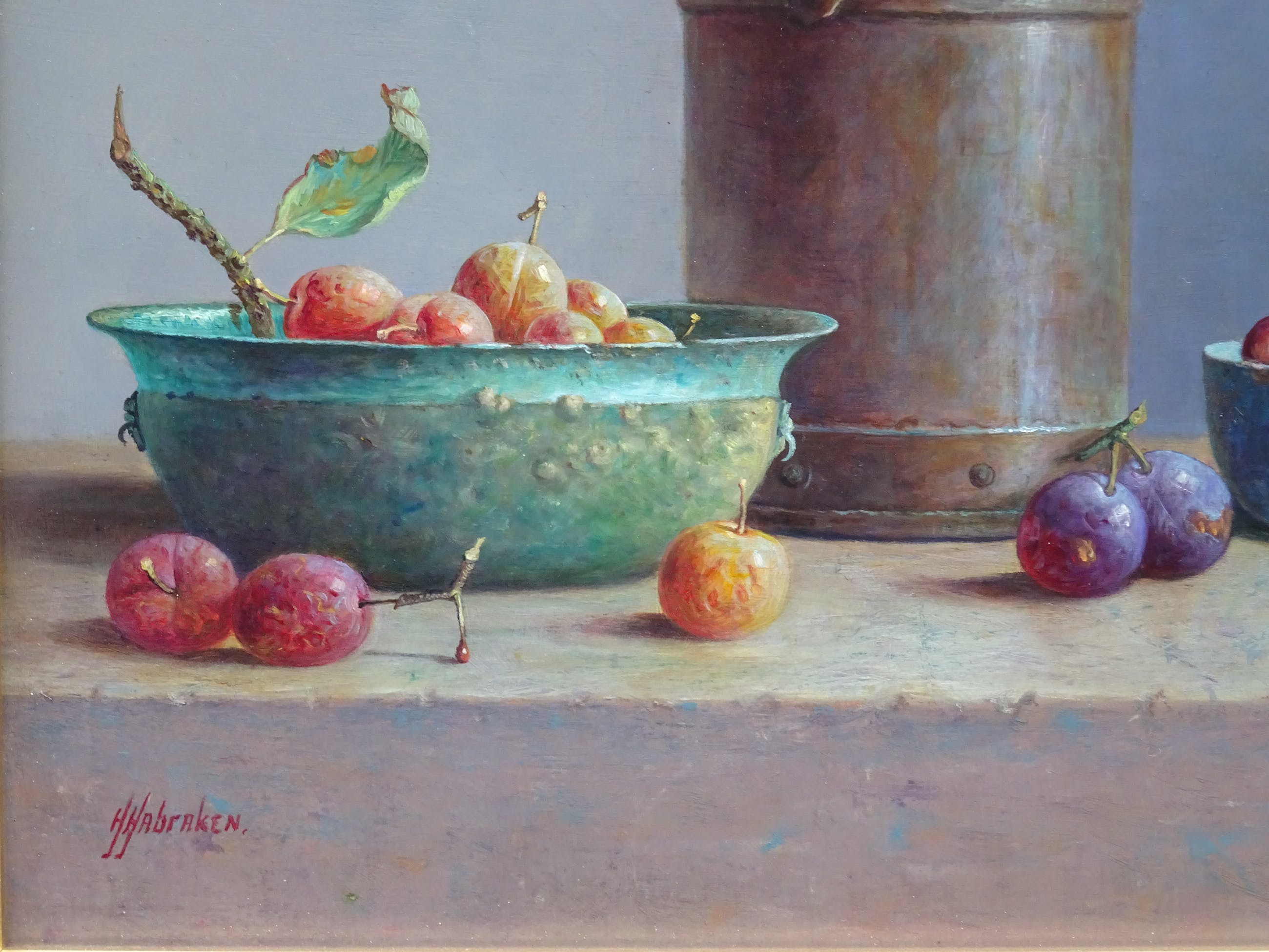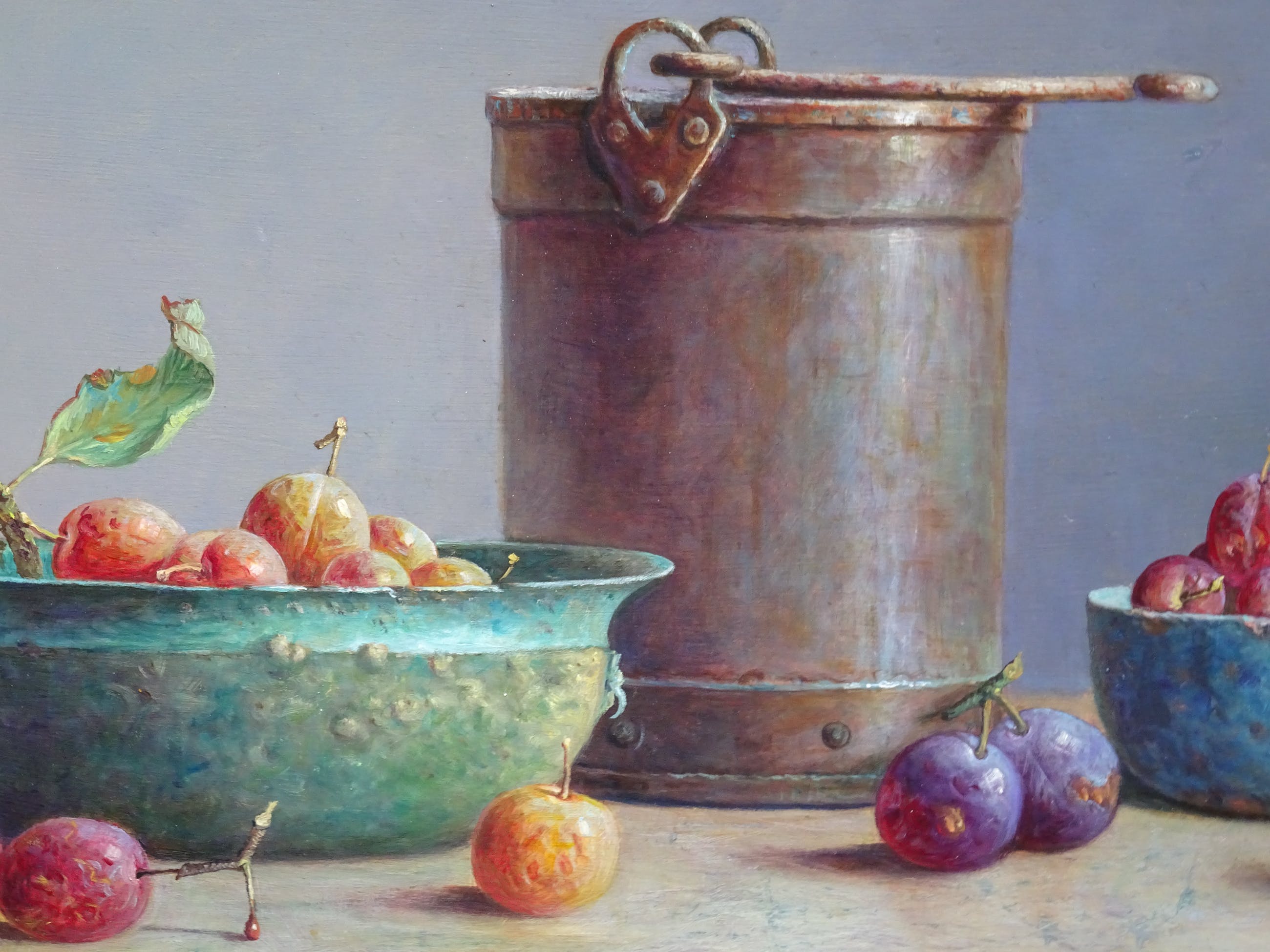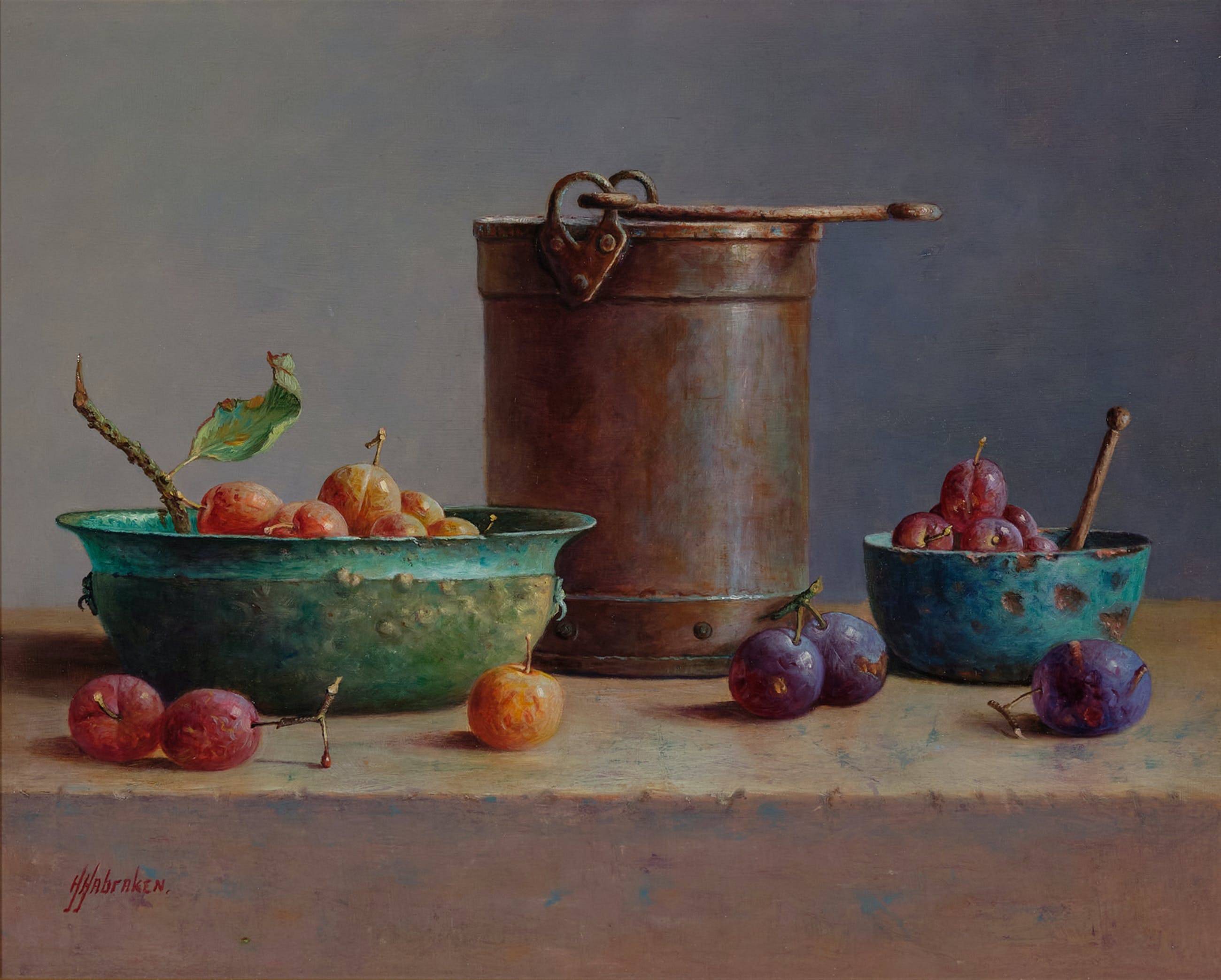Hans Habraken - Oud keteltje en 2 schalen met pruimen. kopen? Bied vanaf 750!