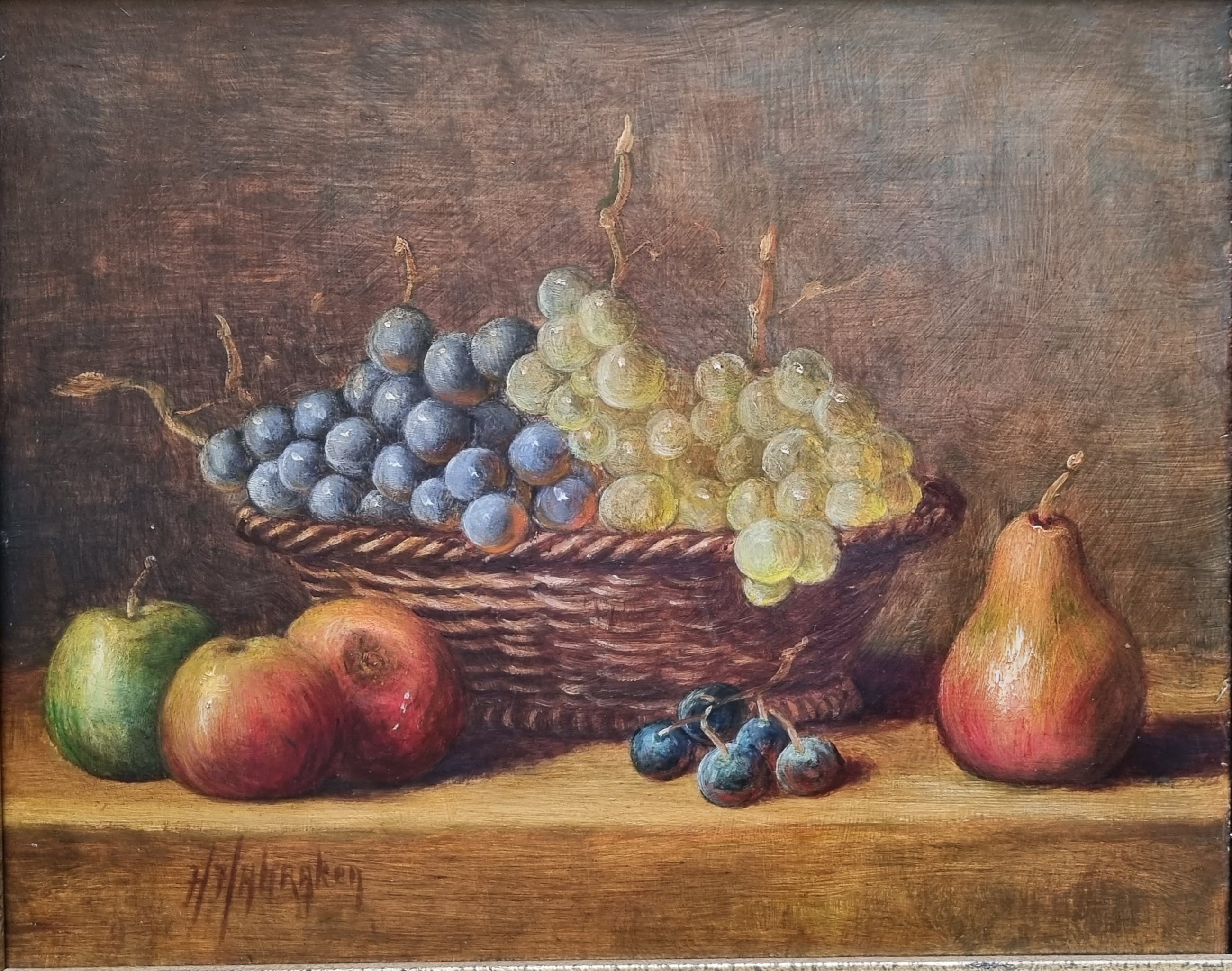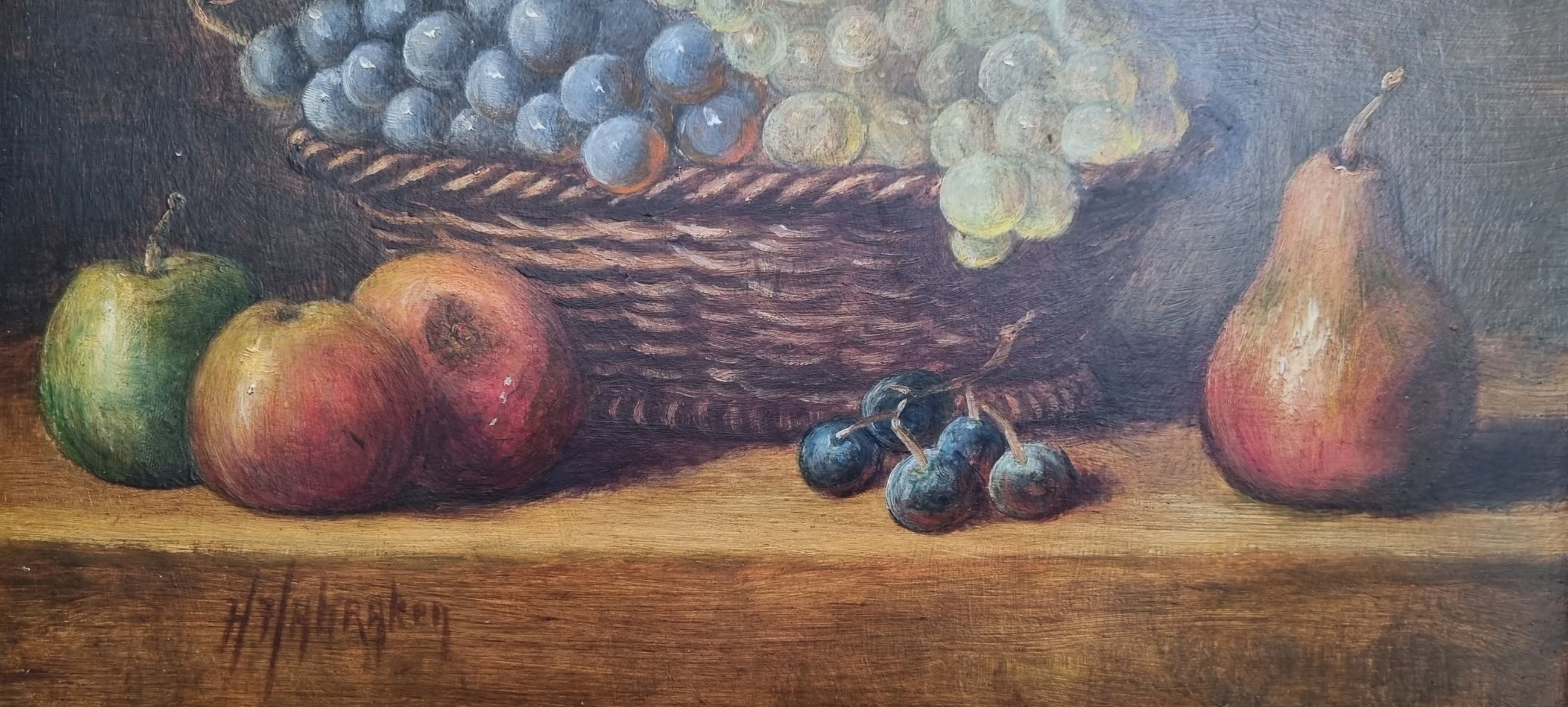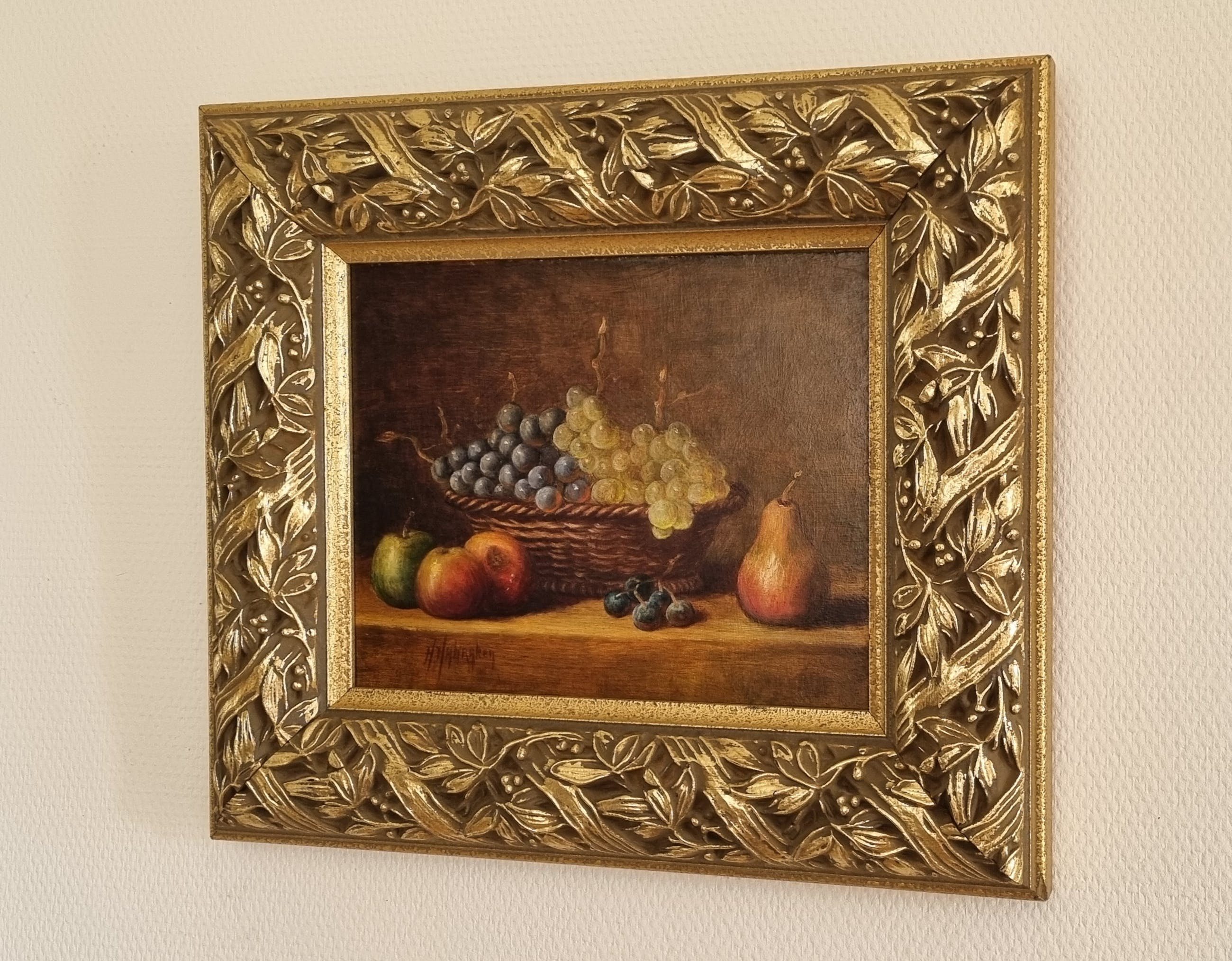 Voor de verandering een stilleven van Hans Habraken in donkere tinten. Prachtig geschilderd, alsof er een vleugje impressionisme uit zijn penseel vloeide, waardoor het iets minder realistisch lijkt vergeleken andere stillevens.