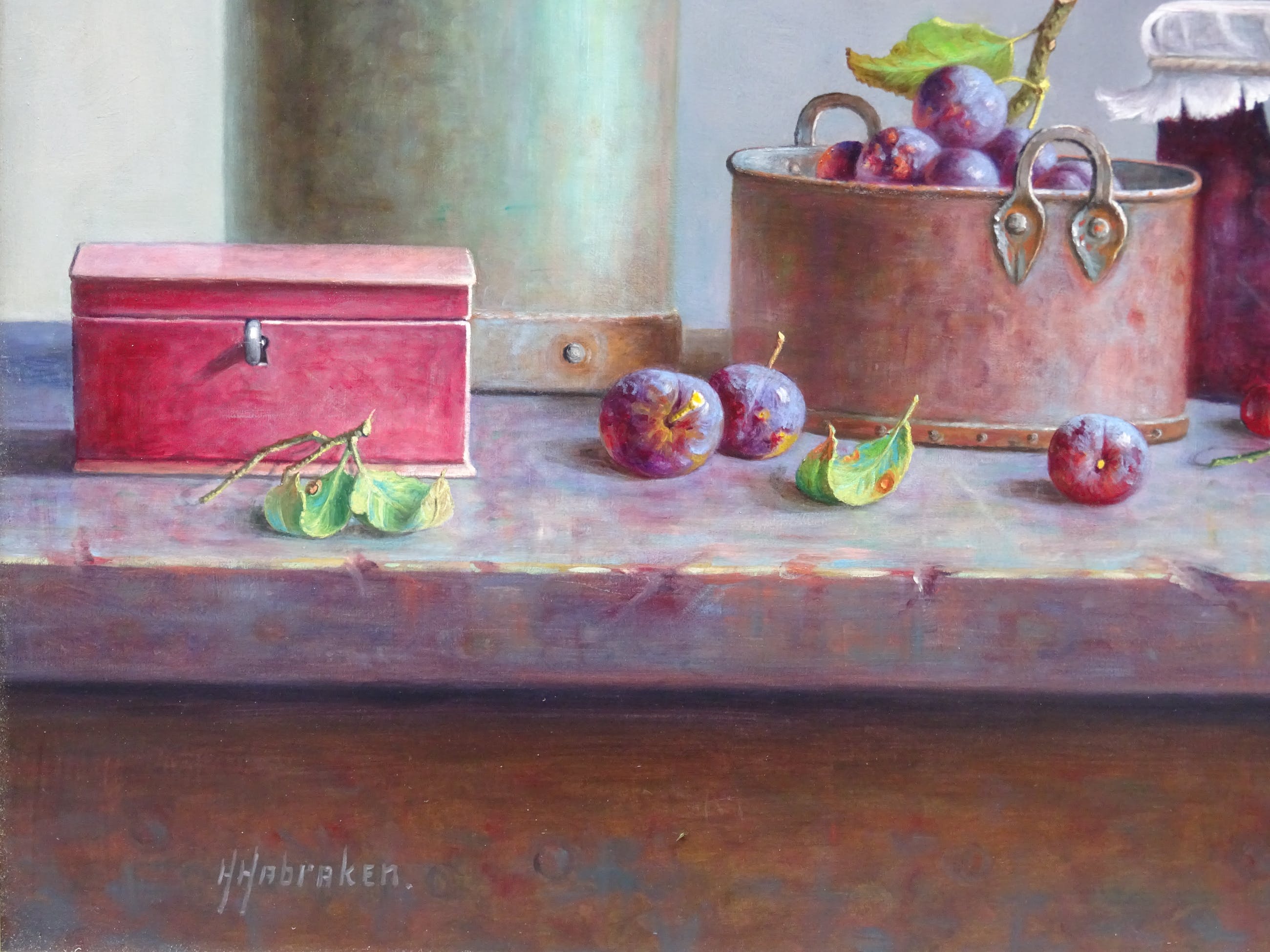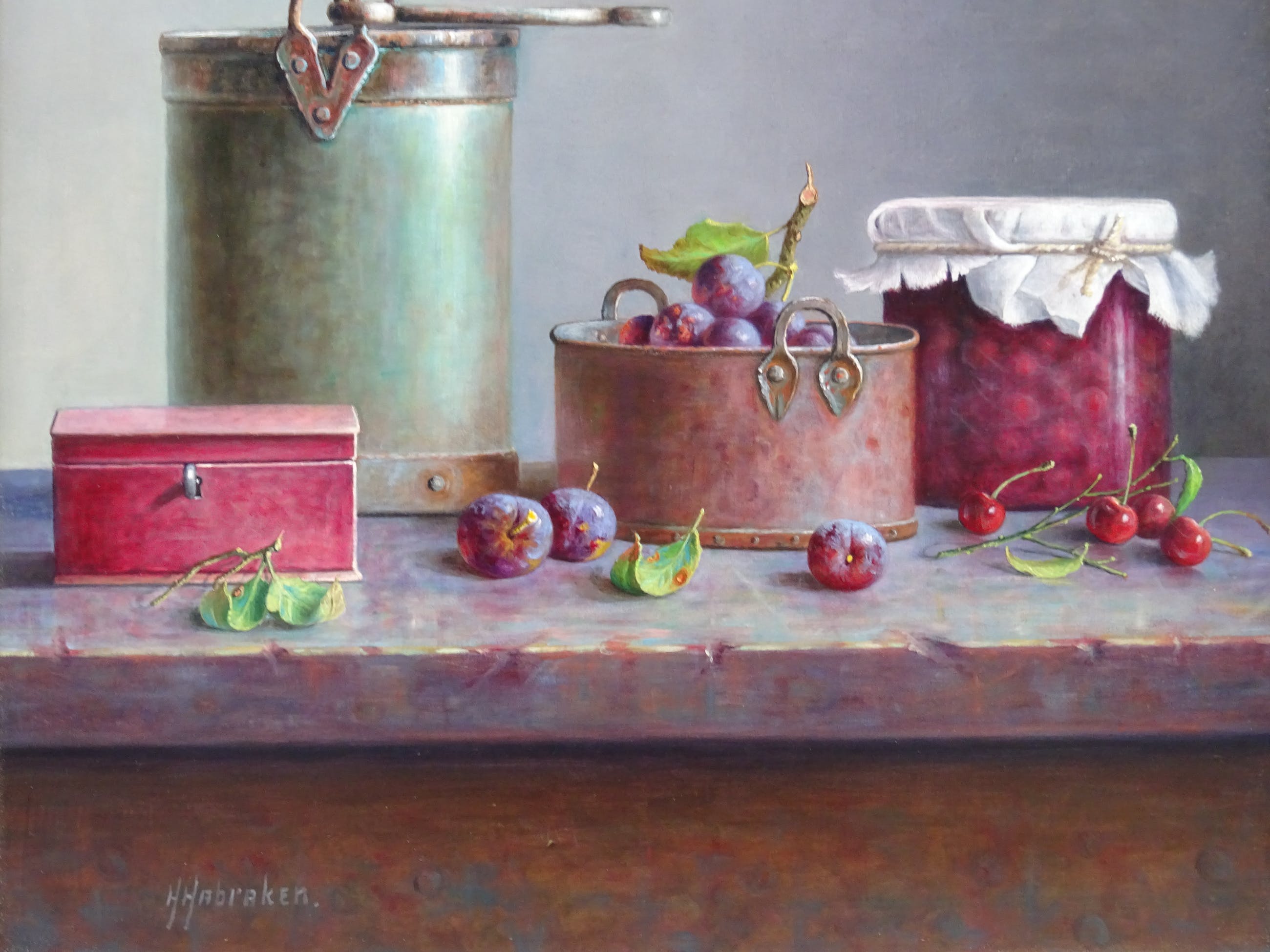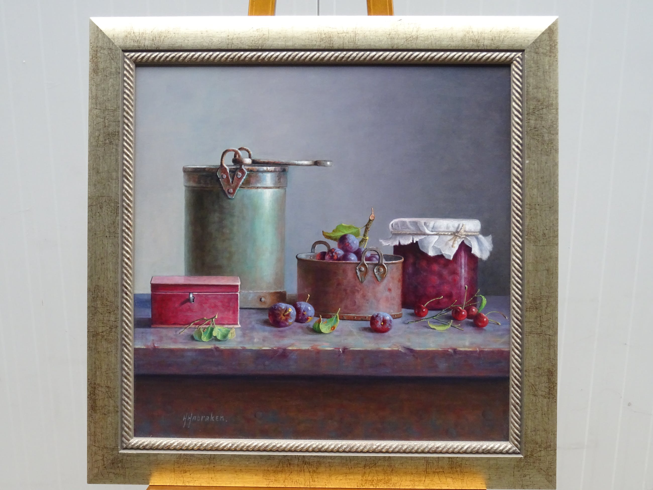 Zeer mooi groot stilleven Hans Habraken op paneel.