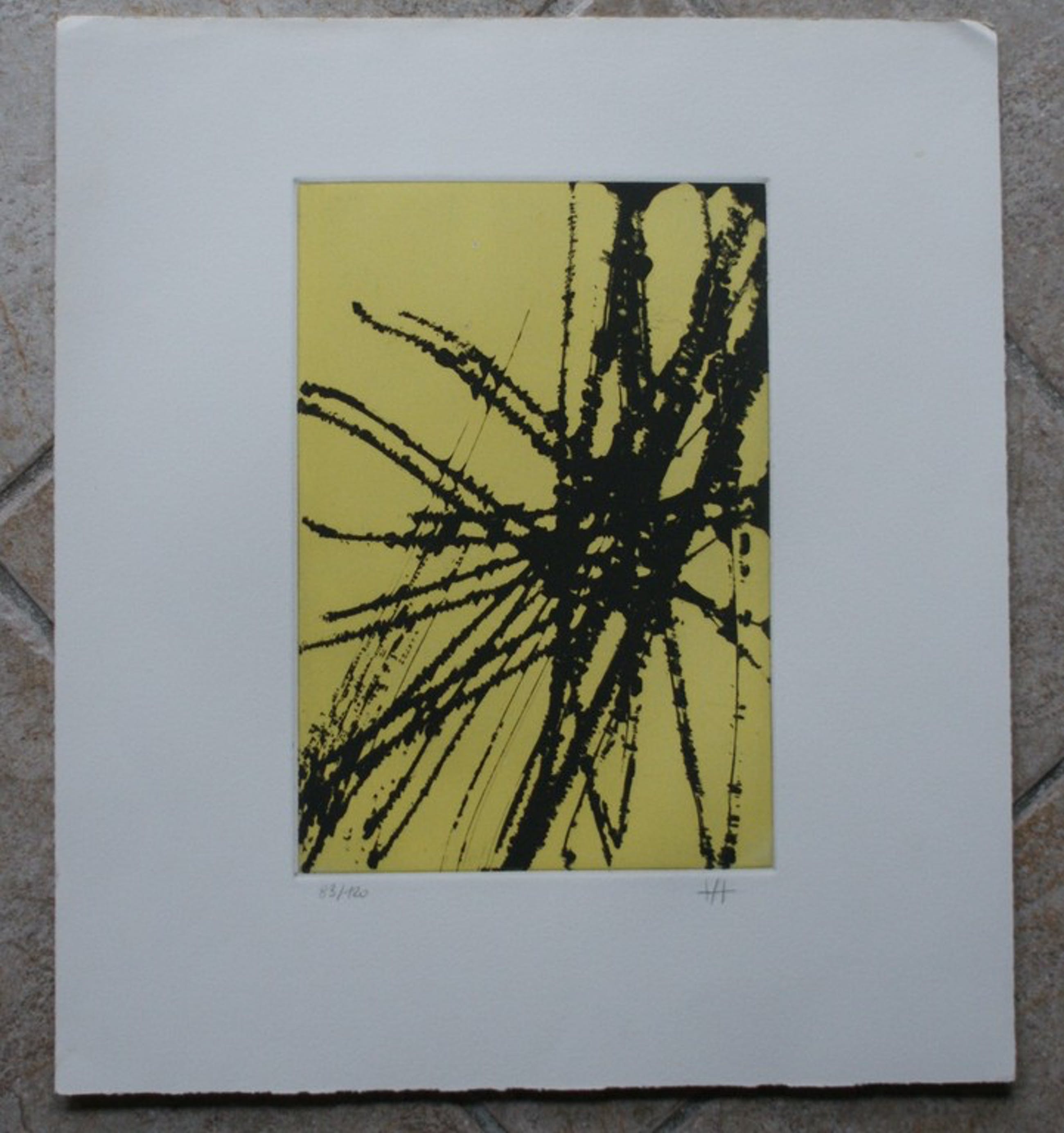 Note: this is (together with almost the same etching in blue and white) the very last etching made and signed by Hans Hartung, just weeks before his death.